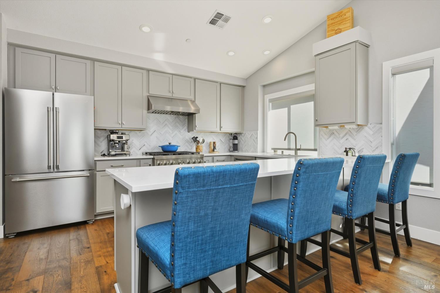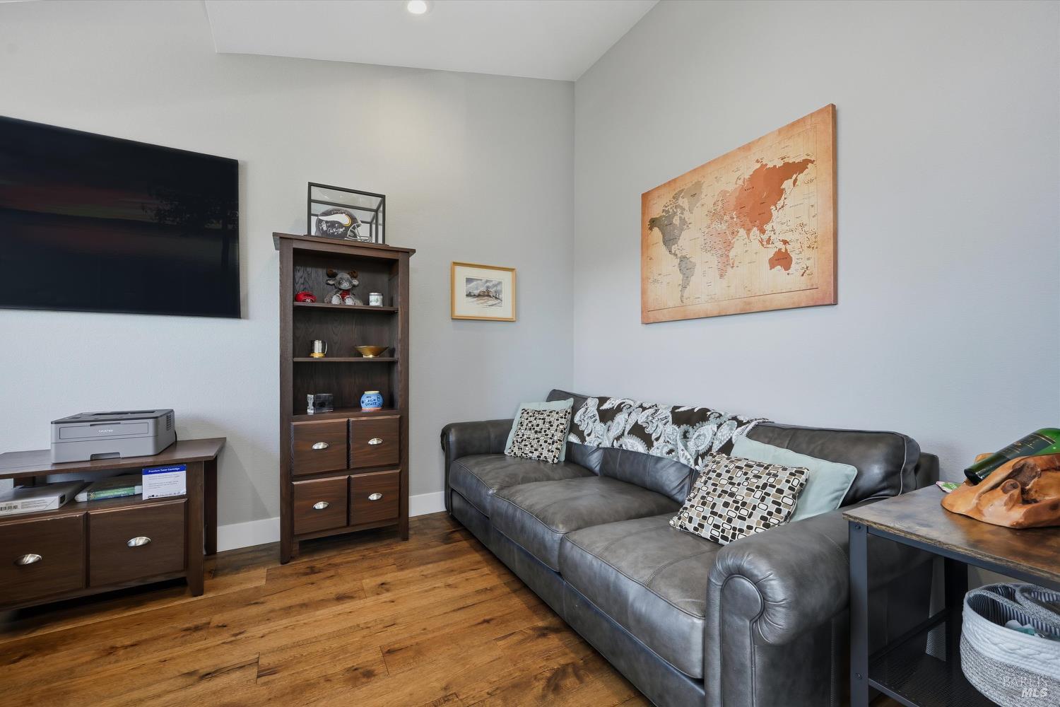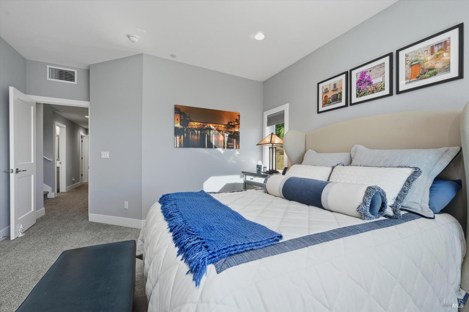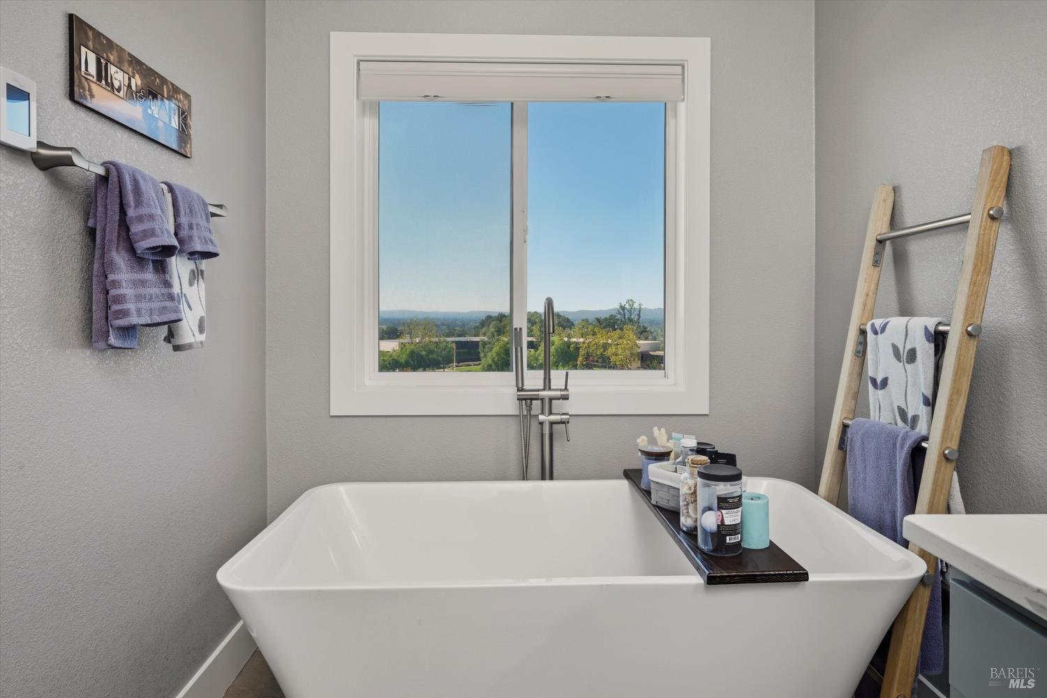 Modern End-Unit Condo with Panoramic Views, Welcome to 2065 Stonefield Lane an exceptional end-unit condo offering a perfect blend of modern elegance, comfort, and breathtaking views. Built in 2020, this light-filled home captures sweeping vistas of the valley, hills, and vibrant sunsets. Step inside to a stunning open-concept great room with vaulted ceilings, wide-plank hardwood floors, and abundant natural light. The living area features a cozy gas fireplace, while the adjacent private deck is the perfect spot to unwind or entertain as you take in the expansive scenery. The designer kitchen is a chef's dream complete with stainless steel appliances, a professional gas range, quartz countertops, and a large island with seating for four. Every detail reflects quality and style, from the custom cabinetry to the chic herringbone backsplash. The primary suite feels like a private retreat, featuring its own fireplace, private balcony access, and a spa-inspired bath with a soaking tub perfectly positioned to frame the view. Additional features include a secondary living area ideal for a media room/Gym, attached garage parking, and an ideal end-unit location that enhances privacy and quiet. Easy access to wine country amenities and the Bay Area. Fully owned Rooftop Solar as well.