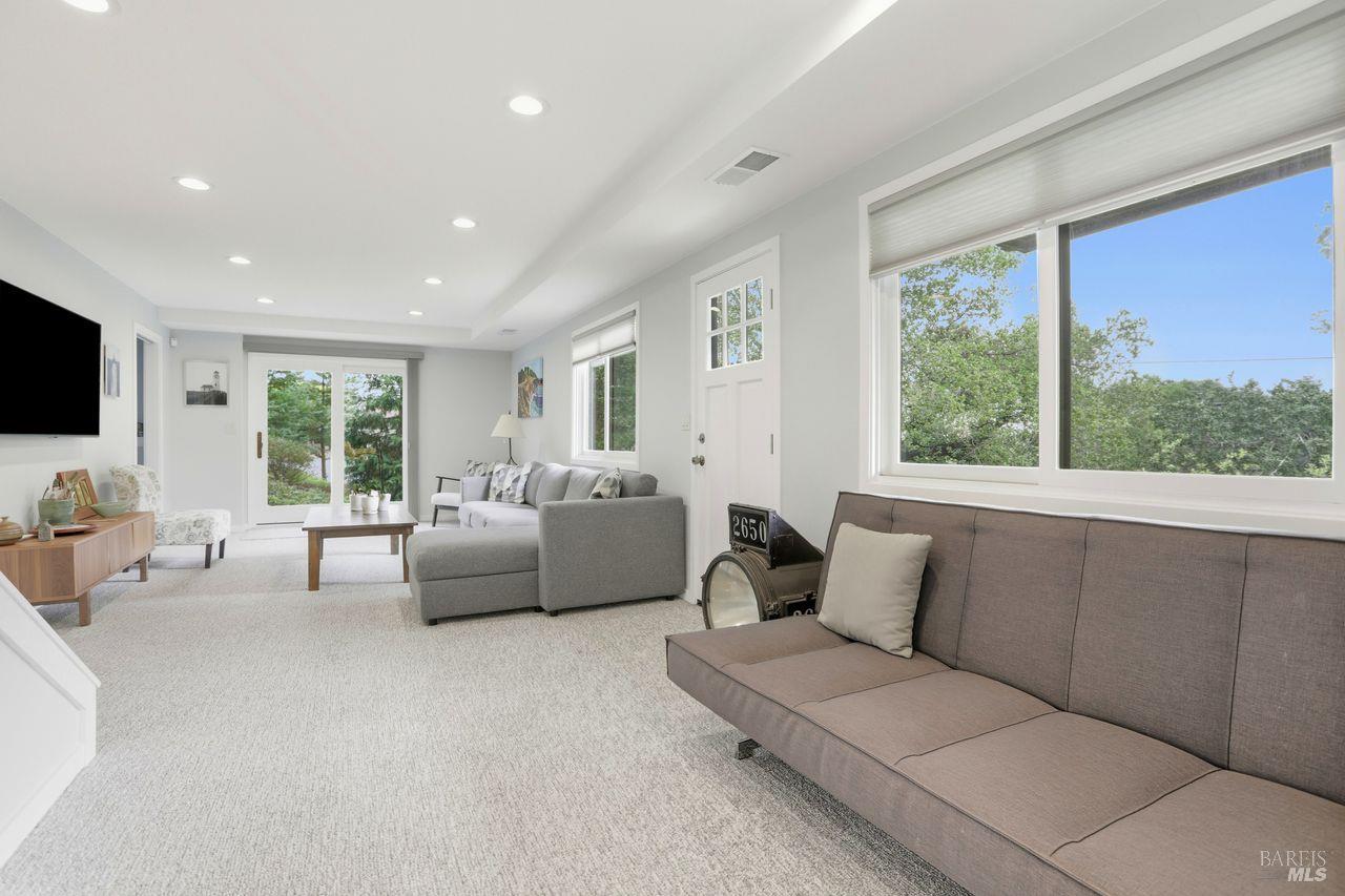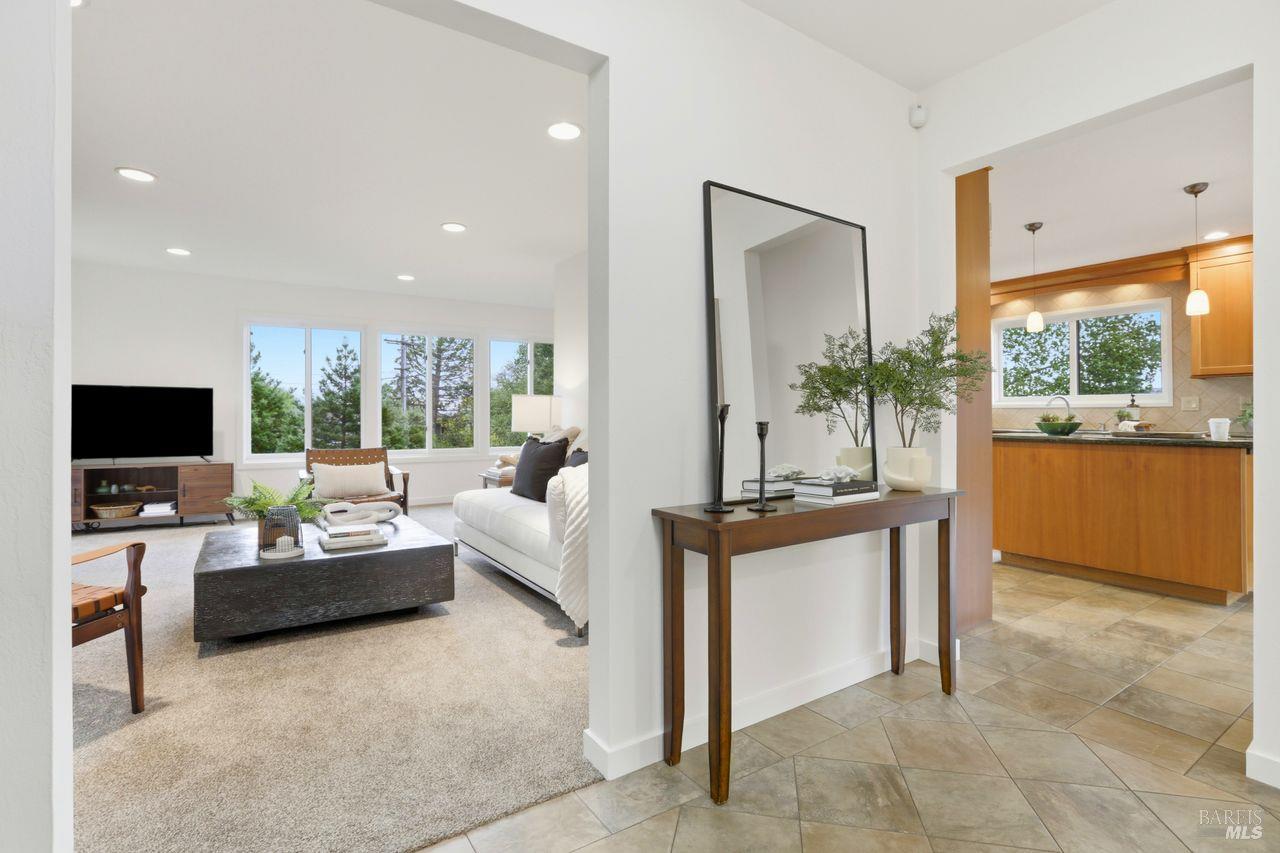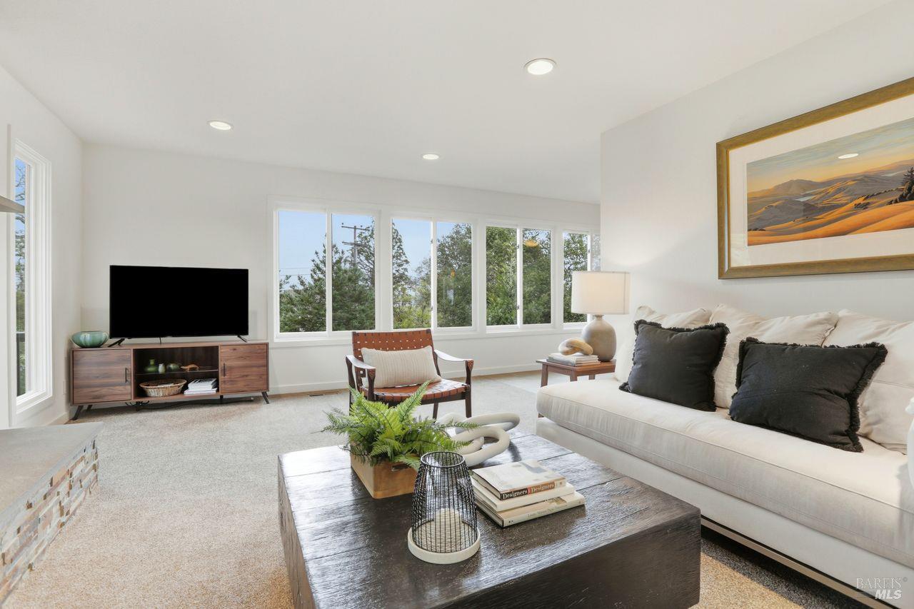 Beautiful Novato Presidents area home! This spacious four-bedroom, three-bath view home is move-in ready and beautifully updated throughout. The light-filled main level features a remodeled kitchen and baths, stylish wood flooring, a cozy fireplace in the living room, central air conditioning, and double-pane windows for year-round comfort. The primary suite offers private outdoor deck accessperfect for morning coffee or evening relaxation. The expansive lower level includes a large family room, bedroom, full bath, and sauna, with direct access to the outdoor area, ideal for guest living. Enjoy the sunny deck, tranquil views, and convenient location close to shopping, schools, with easy Highway 101 access.