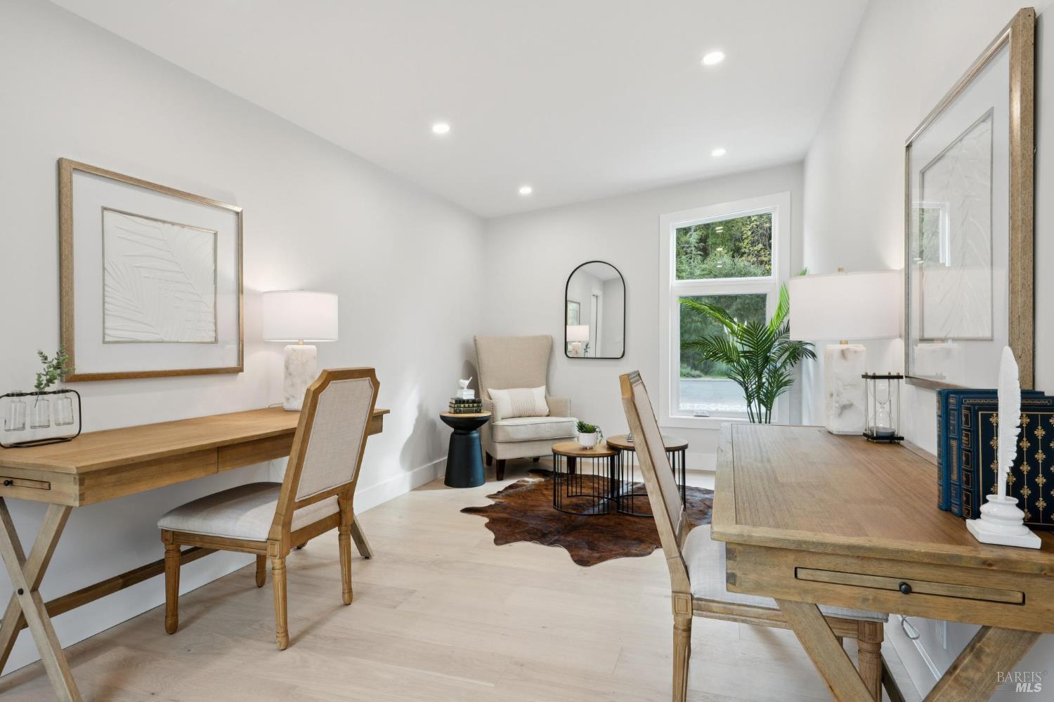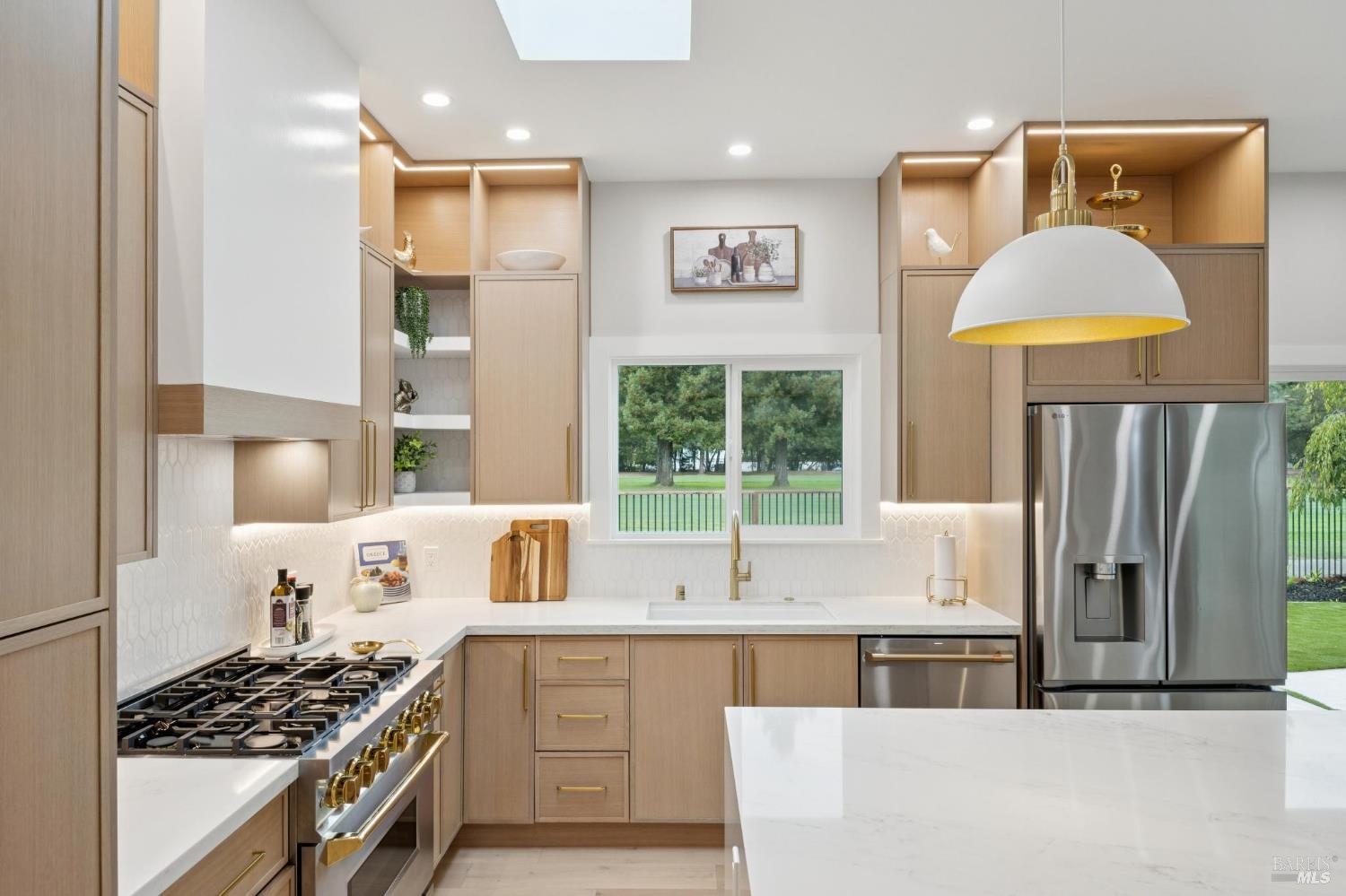 Set on the scenic fairways of Marin Country Club, this beautifully updated single-level home blends modern comfort with a relaxed golf-course lifestyle. Offering 3 bedrooms plus an office, 2 remodeled bathrooms, and approximately 2,230 sqft of living space, it's designed for both everyday living and effortless entertaining. The remodeled chef's kitchen opens to a spacious living room with a cozy fireplace, creating a welcoming hub for gathering. A large family room adds versatility, while engineered wood flooring, electrical upgrades, and a new floor plan extension with garage enhance both function and style. The serene primary suite features a walk-in closet and a beautifully updated bath, while a new furnace and central AC ensure year-round comfort. Outside, enjoy fresh landscaping, a turf lawn, and outdoor kitchen an entertainer's dream with sweeping golf course views. Located minutes from shopping, top-rated schools, and commuter routes, this home also offers close proximity to Marin Country Club with golf, tennis, swimming, and social amenities.