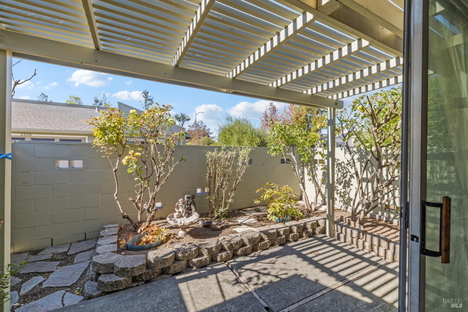 Enjoy the ease and comfort of Townhouse living in this desirable end-unit in the popular Bennet View Townhomes. In need of a few updates and repairs, once you've made it your own you'll enjoy all the features this home has to offer including the open kitchen/dining area with plenty of counter space and abundant cabinetry. Enjoy relaxing views toward Bennett Mountain from your living room while you appreciate the vaulted ceilings and wood burning fireplace insert. The comfortably proportioned primary suite boasts two closets and dual sinks plus access to the side patio/deck that catches the morning sun. A second private patio replete with tree roses and a butterfly bush graces another of the bedrooms. For your convenience, the oversized attached 2-car garage has direct access into the unit with no steps or barriers. There's even attic storage with pull down steps, plus Central Heat & A/C for your comfort. Enjoy the community vegetable garden and access to the community in-ground pool. Common area maintenance, exterior paint and roof are all covered by the low HOA dues, leaving you time to enjoy all the other amenities Bennett Valley has to offer, including great schools, shopping, and regional parks.