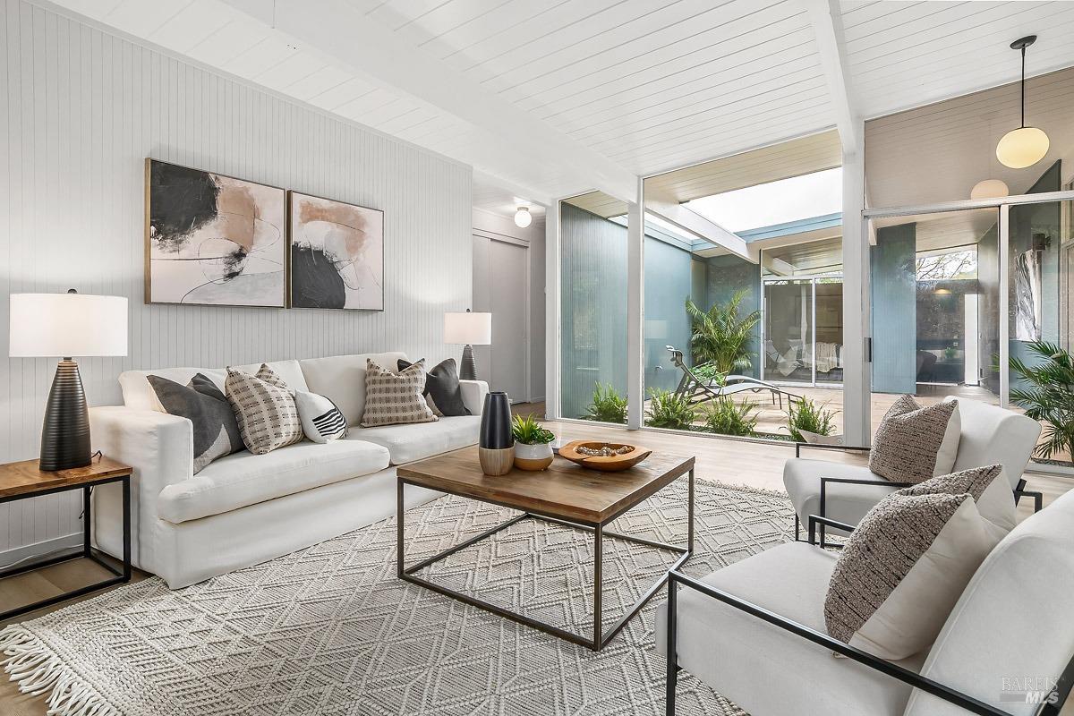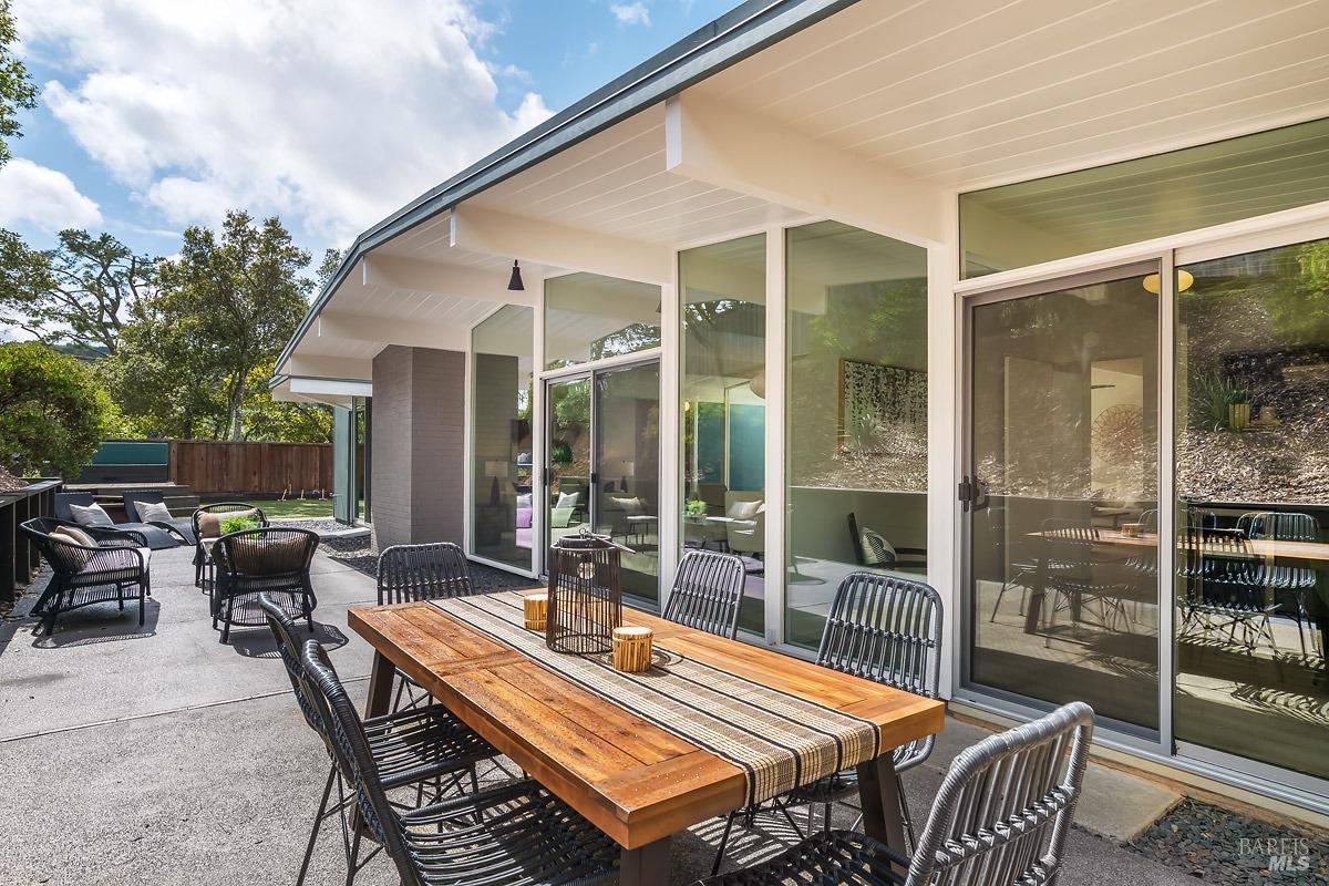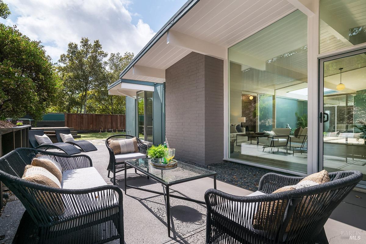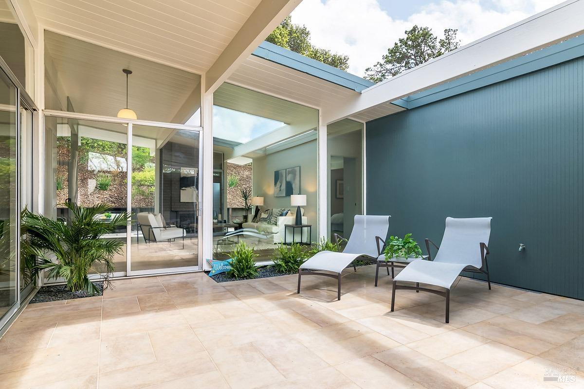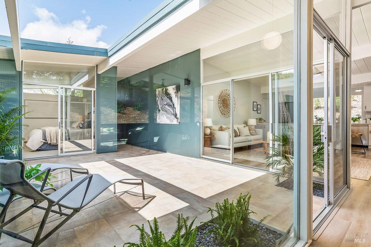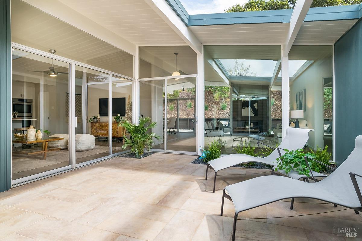 Welcome to 315 Mt Shasta in lovely Upper Lucas Valley featuring an updated Atrium model Eichler on one of the best streets in neighborhood. Mid-Century Modern architecture w an airy, open floor plan filled w natural light to enjoy indoor|outdoor CA lifestyle. Completely private, one-story home situated on an oversized lot (room for a pool?) that includes deck, patios, gardens, & large grassy level yard-ideal for family gatherings, gracious entertaining, sports games or taking in the lovely verdant views w your morning coffee. The center of this home is the atrium enclosed by floor to ceiling walls of glass-a peaceful & quiet setting to relax. This modern aesthetic allows all rooms to flow nicely to either the atrium, backyard, or side yard. The great room w DR/LR combo has a vaulted open beam ceiling w F/P, & walls of glass opening to the backyard. The upgraded kitchen includes newer stainless-steel appliances w gas cooktop, double ovens, walk-in pantry, bay window, & open island ideal for meal prep or socializing. Spacious open family room off kit. Bonus room w new wet bar ideal for office. Ensuite primary BR w walk-in closet w easy access to back patio. One BR was almost doubled in size! Much sought after community w pool, tennis courts, playground, clubhouse, horse stables.