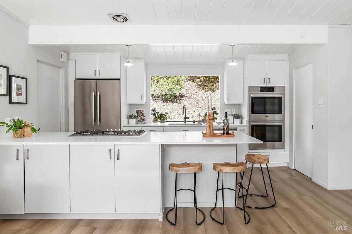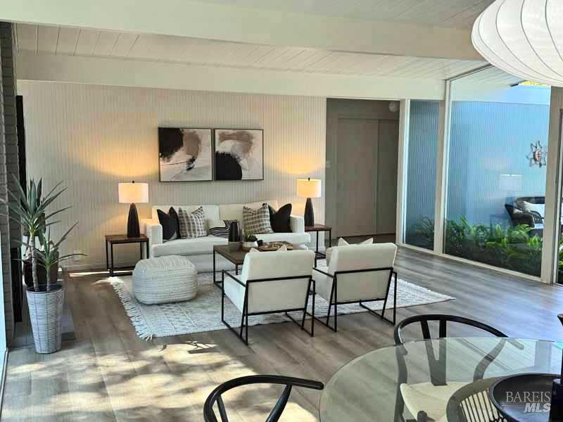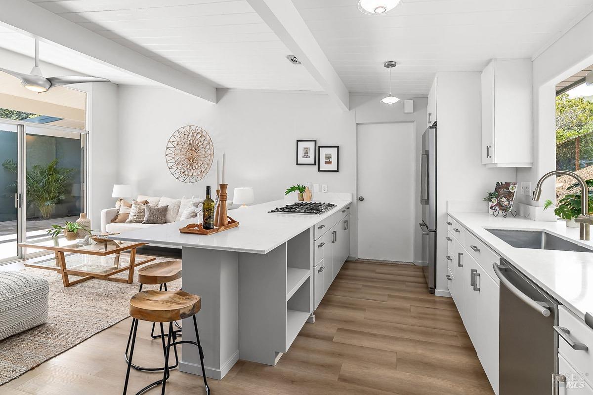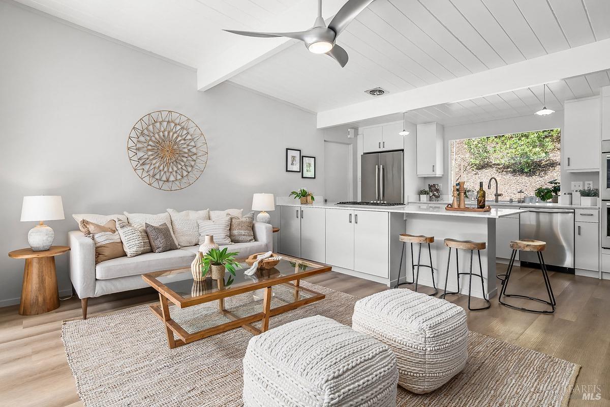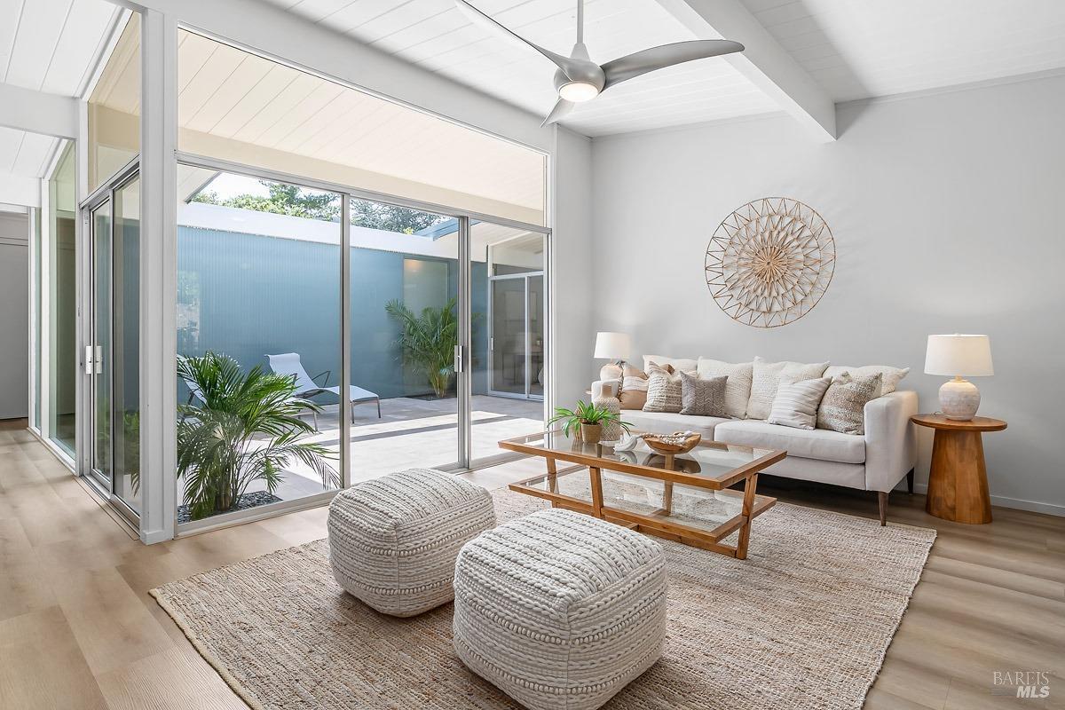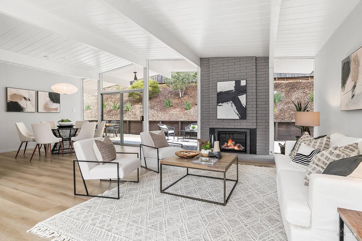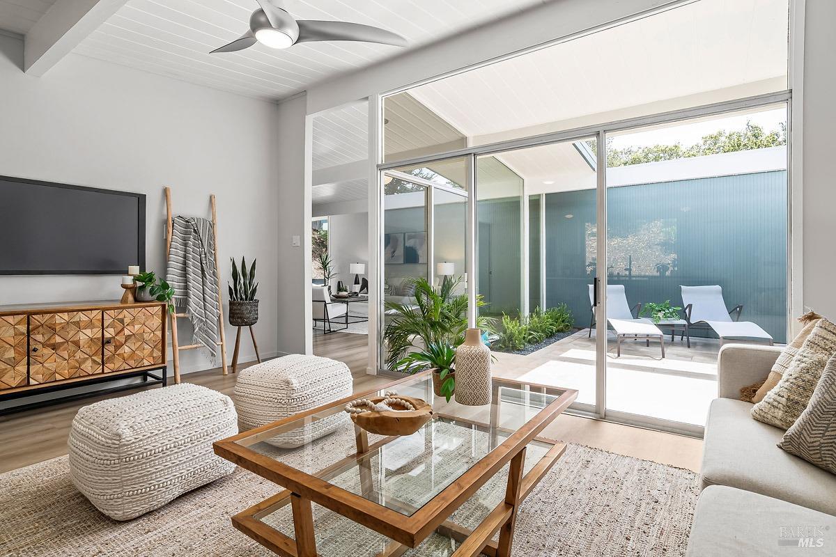 Welcome to 315 Mt Shasta in lovely Upper Lucas Valley featuring an updated Atrium model Eichler on one of the best streets in neighborhood. Mid-Century Modern architecture w an airy, open floor plan filled w natural light to enjoy indoor|outdoor CA lifestyle. Completely private, one-story home situated on an oversized lot (room for a pool?) that includes deck, patios, gardens, & large grassy level yard-ideal for family gatherings, gracious entertaining, sports games or taking in the lovely verdant views w your morning coffee. The center of this home is the atrium enclosed by floor to ceiling walls of glass-a peaceful & quiet setting to relax. This modern aesthetic allows all rooms to flow nicely to either the atrium, backyard, or side yard. The great room w DR/LR combo has a vaulted open beam ceiling w F/P, & walls of glass opening to the backyard. The upgraded kitchen includes newer stainless-steel appliances w gas cooktop, double ovens, walk-in pantry, bay window, & open island ideal for meal prep or socializing. Spacious open family room off kit. Bonus room w new wet bar ideal for office. Ensuite primary BR w walk-in closet w easy access to back patio. One BR was almost doubled in size! Much sought after community w pool, tennis courts, playground, clubhouse, horse stables.