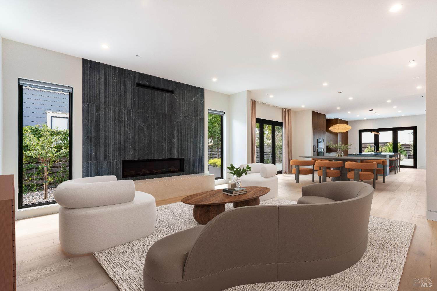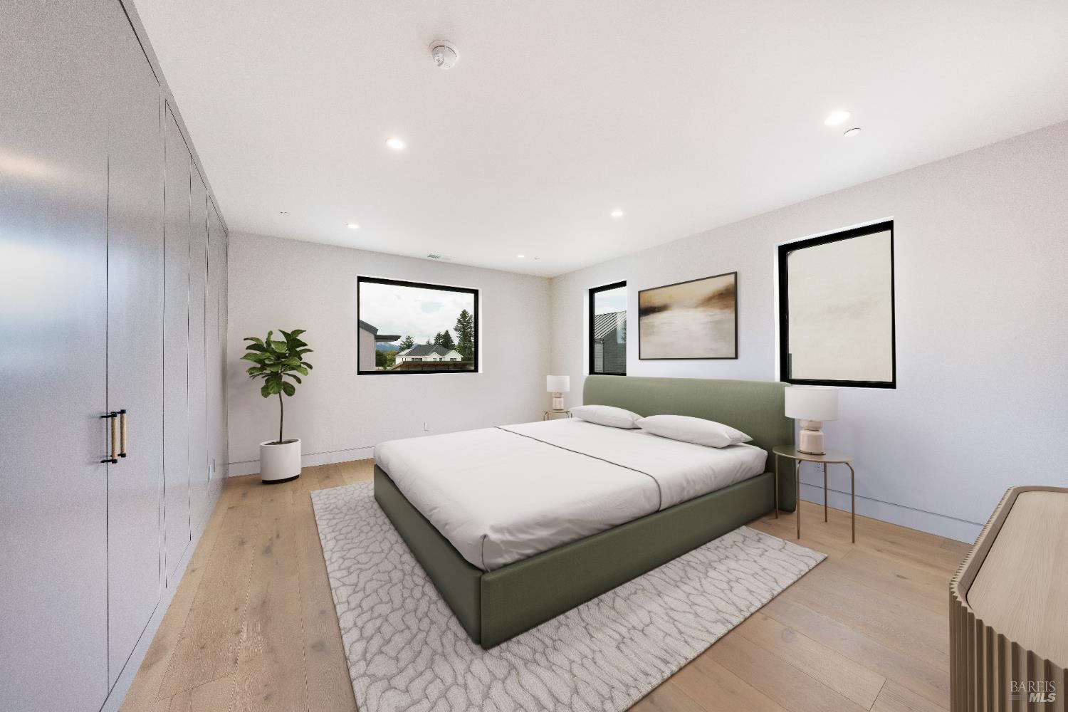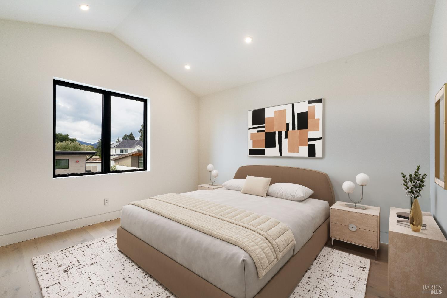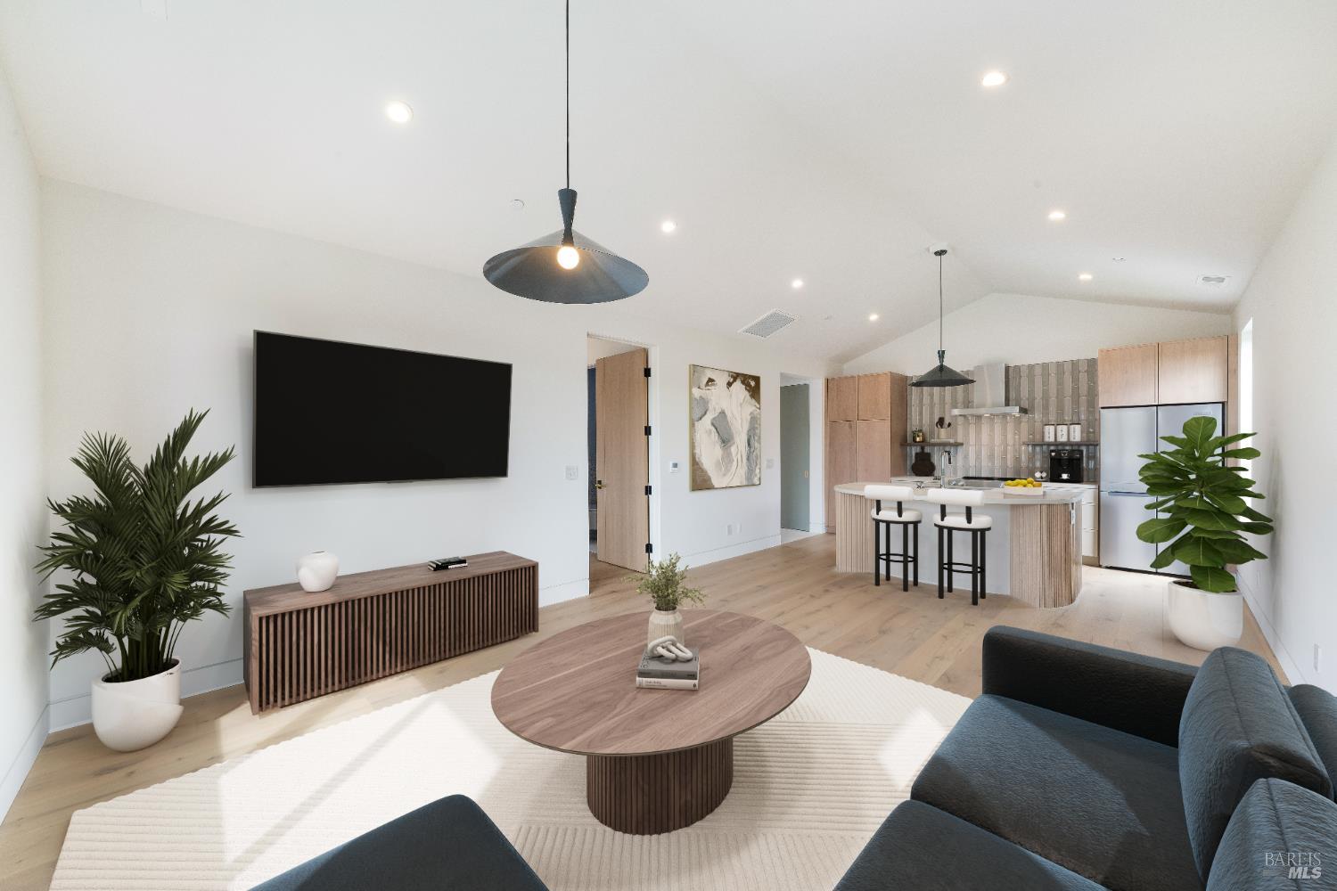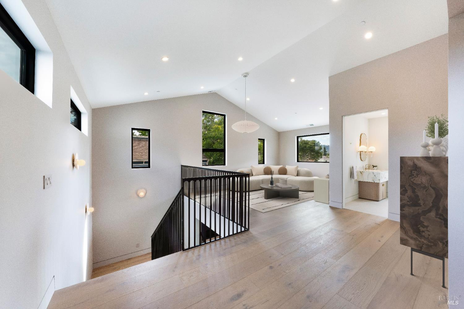 Beautifully crafted 4-bedroom home w/ separate 1-bedroom/1-bath ADU, on approx .3 acres just minutes from the vibrant Healdsburg Plaza. Completed in 2025, main residence blends comfort, functionality, & clean contemporary design. The layout is ideal for modern living, featuring a luxurious main-level primary suite that offers ease & privacy. Bright interiors are enhanced by high ceilings, statement fireplace, & expansive windows that frame the outdoor landscape. The main home includes gracious bedrooms, 4 full & 2 half baths, home office (or 4th bedroom suite) & intimate library. The well-appointed kitchen features Miele appliances, coffee system/bar area, beverage/wine coolers & elegant cabinetry. The adjacent butler's pantry w/sink, extra refrigerator & ample storage, paired with the inviting dining & living area makes this home perfect for gatherings. Folding doors open to the patios & inviting lawn/garden (or potential pool). The ADU above the 2-car garage provides a versatile space for guests or family, offering a private entrance w/ its own kitchen, living & dining area, laundry, powder room, plus 1-bedroom suite. Combining smart design w/ prime in-town location, this home is perfect for those seeking a flexible floor plan, refined finishes & the ease of Healdsburg living.