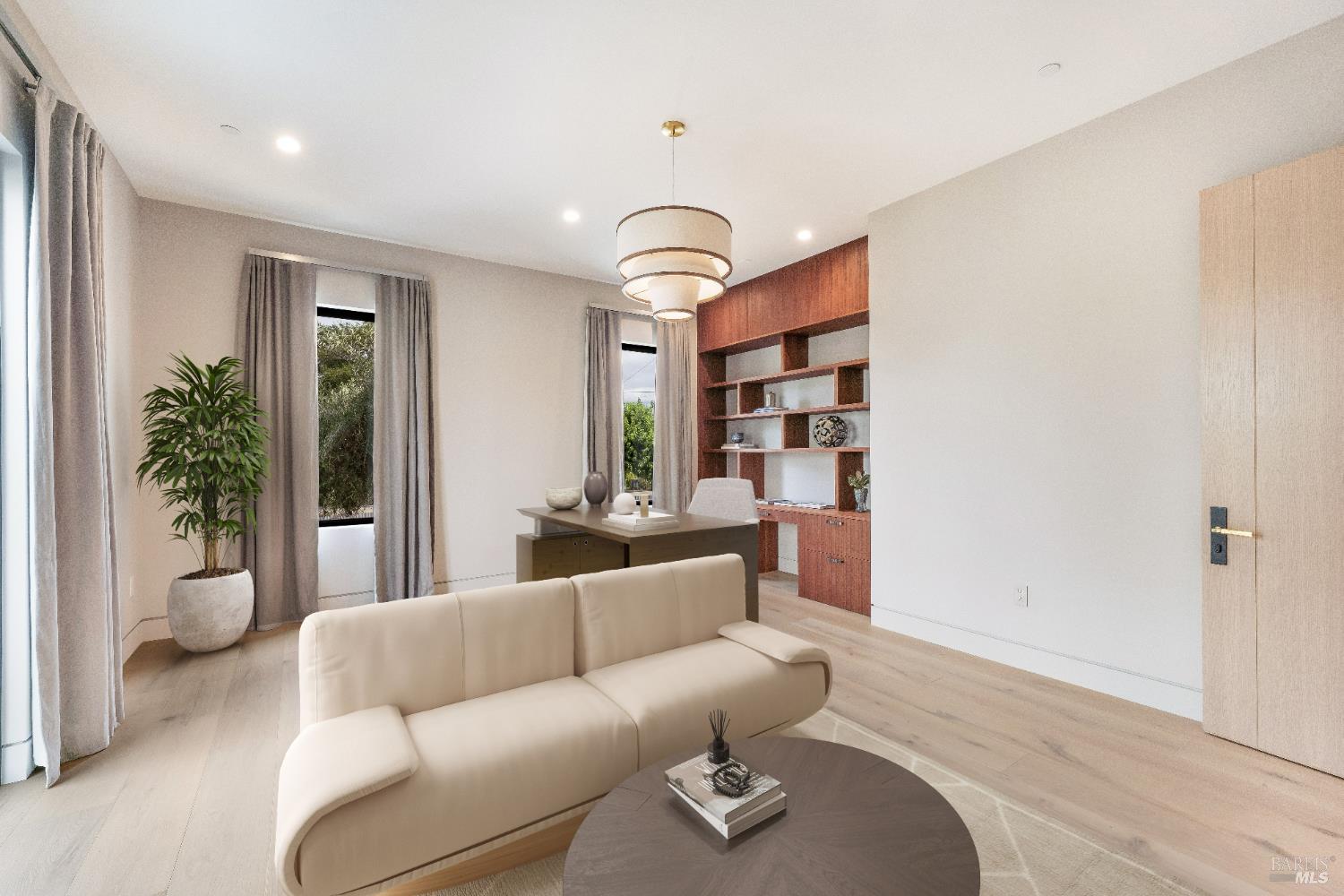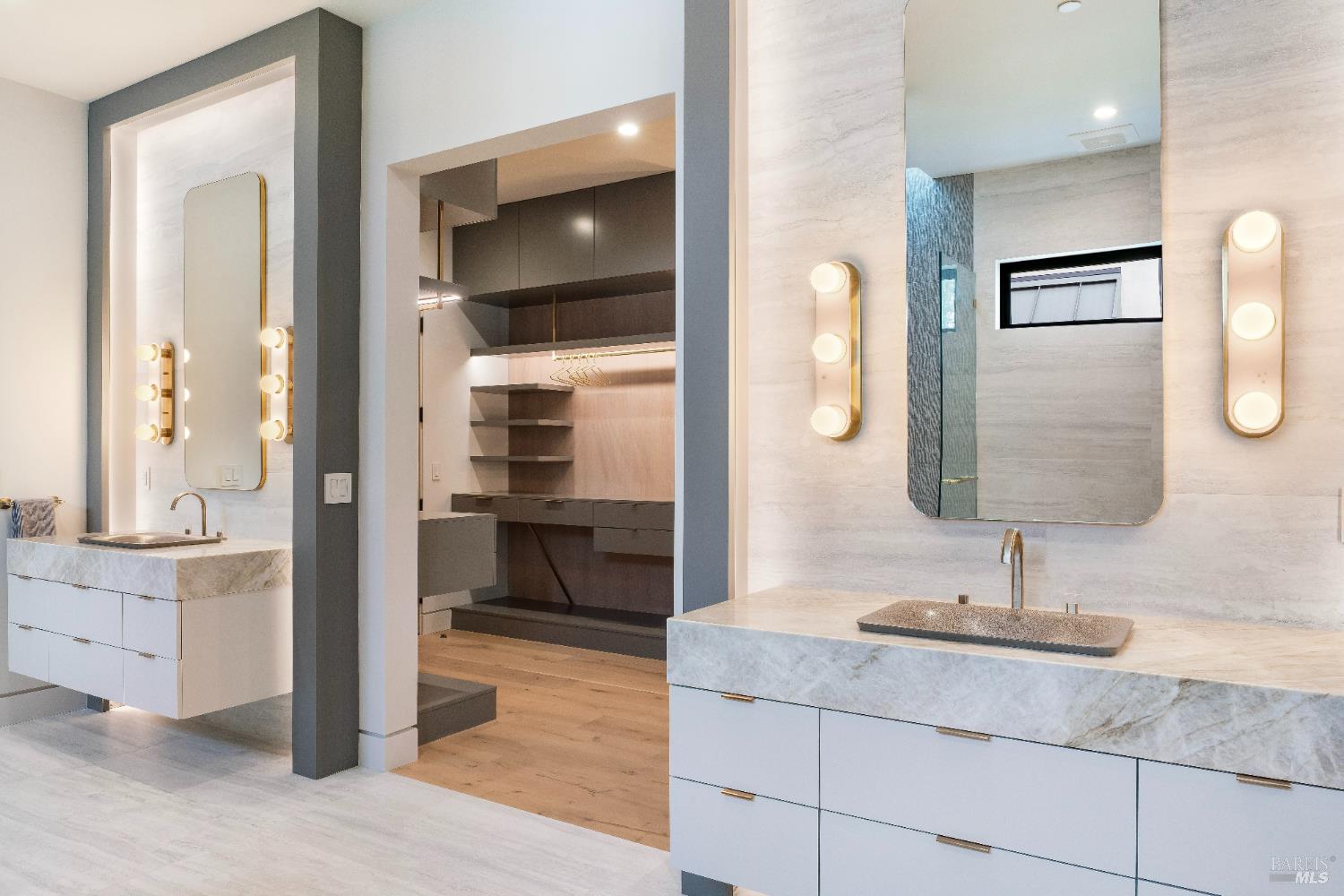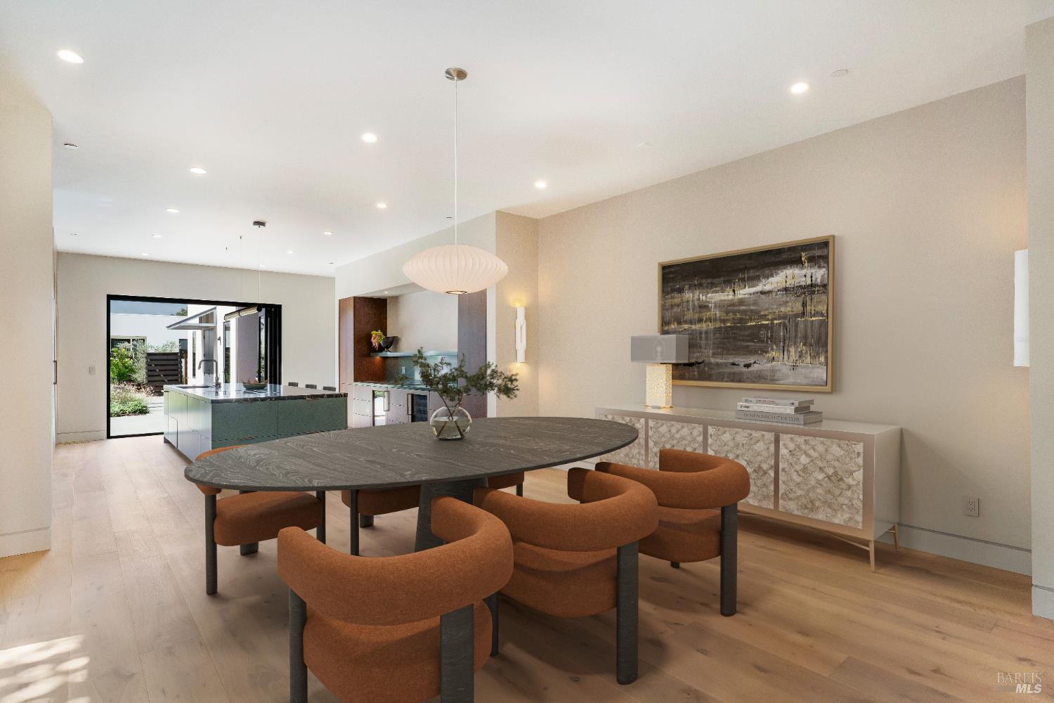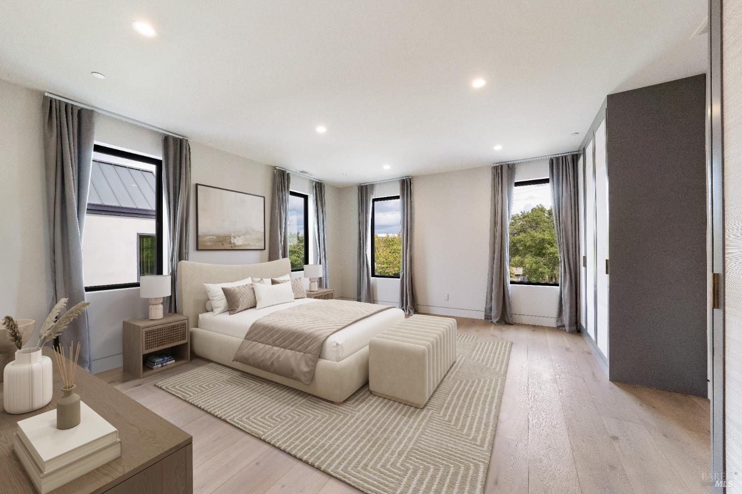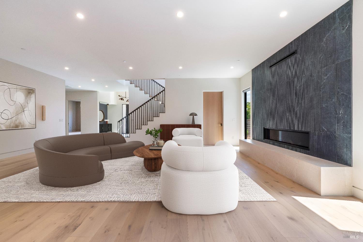 Beautifully crafted 4-bedroom home w/ separate 1-bedroom/1-bath ADU, on approx .3 acres just minutes from the vibrant Healdsburg Plaza. Completed in 2025, main residence blends comfort, functionality, & clean contemporary design. The layout is ideal for modern living, featuring a luxurious main-level primary suite that offers ease & privacy. Bright interiors are enhanced by high ceilings, statement fireplace, & expansive windows that frame the outdoor landscape. The main home includes gracious bedrooms, 4 full & 2 half baths, home office (or 4th bedroom suite) & intimate library. The well-appointed kitchen features Miele appliances, coffee system/bar area, beverage/wine coolers & elegant cabinetry. The adjacent butler's pantry w/sink, extra refrigerator & ample storage, paired with the inviting dining & living area makes this home perfect for gatherings. Folding doors open to the patios & inviting lawn/garden (or potential pool). The ADU above the 2-car garage provides a versatile space for guests or family, offering a private entrance w/ its own kitchen, living & dining area, laundry, powder room, plus 1-bedroom suite. Combining smart design w/ prime in-town location, this home is perfect for those seeking a flexible floor plan, refined finishes & the ease of Healdsburg living.