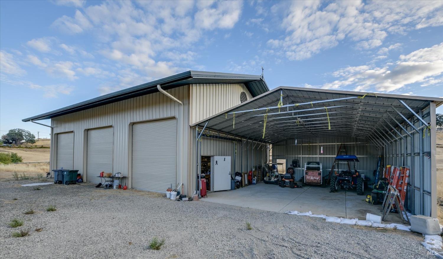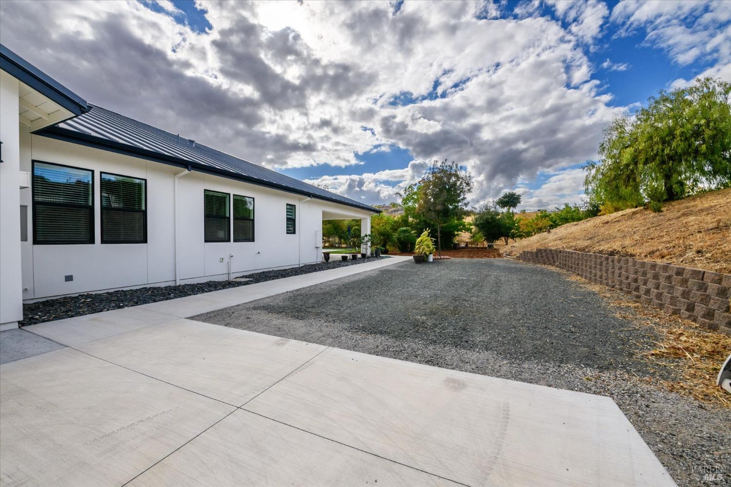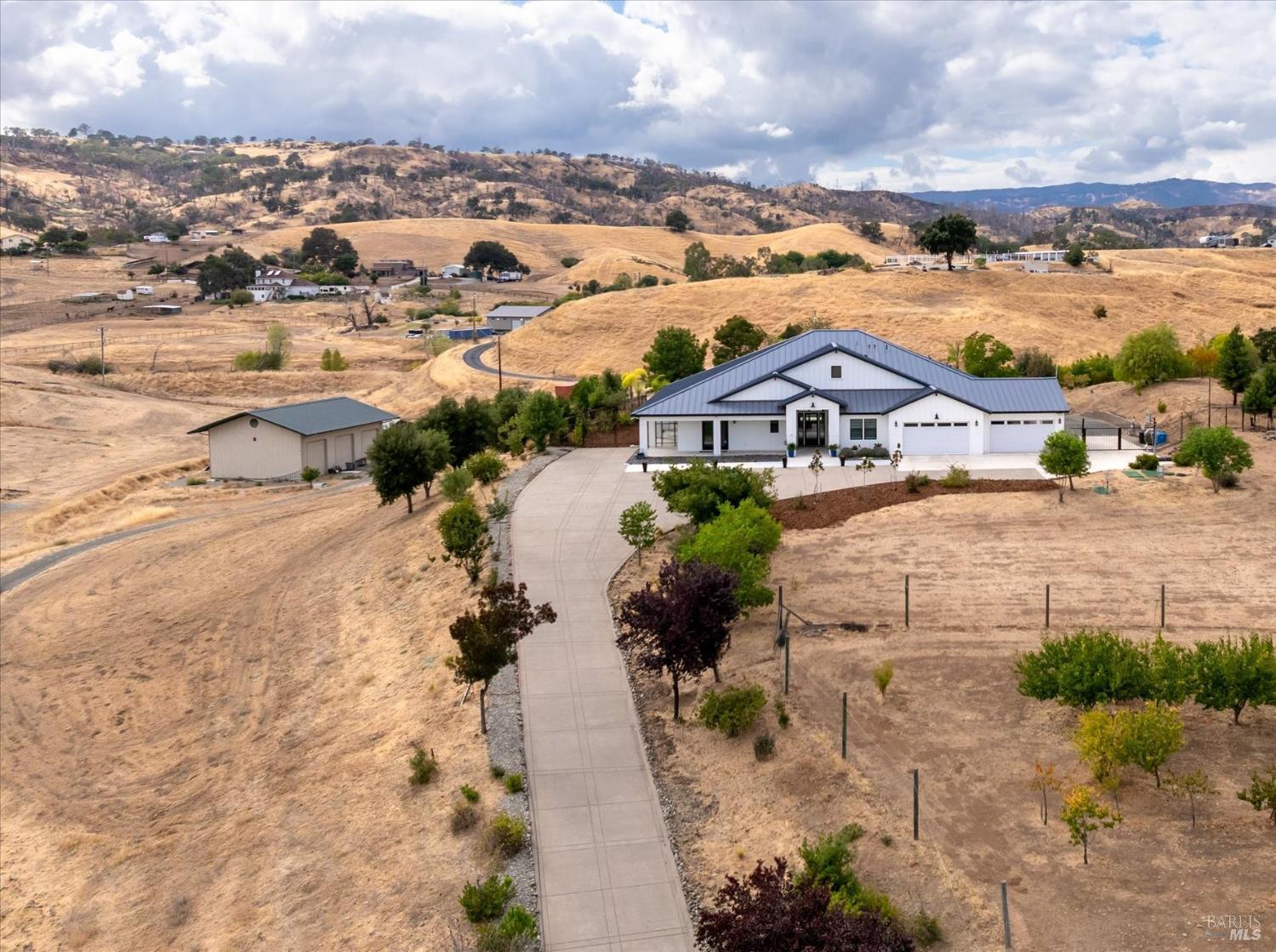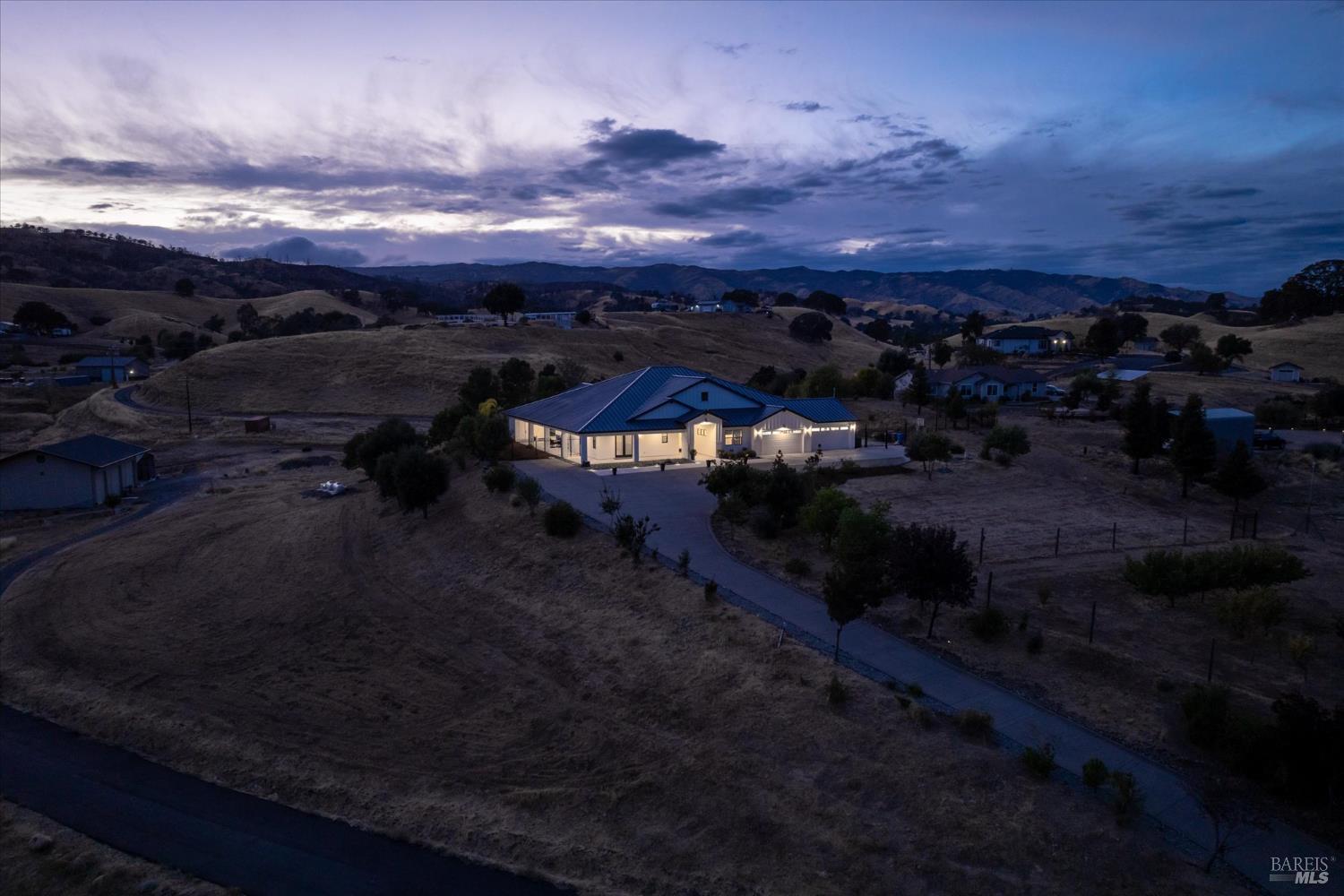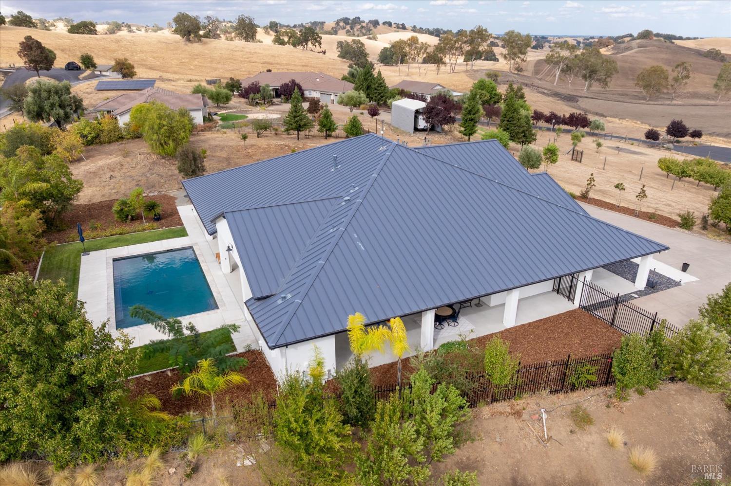 Welcome to your dream retreat, a stunning 4,098 sq ft modern masterpiece completed in 2023, perfectly positioned on a private 5-acre parcel designed for both comfort and resilience. This 5-bedroom, 5 1/2-bathroom home was built to impress, combining elegant design with high-end finishes and WUI-compliant fire-resistant construction, offering peace of mind in today's climate. Step inside to soaring 10- and 12-foot ceilings, expansive open living areas, and a seamless indoor-outdoor flow that defines luxury living. The heart of the home is the gourmet kitchen and spacious great room, opening out to an incredible 2,669 sq ft of covered patios ideal for year-round entertaining or quiet evenings under the stars. Outside, enjoy a custom sports pool built for fun and fitness, surrounded by sweeping views and open skies. The estate also features a versatile shop with three 14-ft roll-up doors, perfect for RVs, boats, or hobbyists needing serious workspace. Every detail has been thoughtfully crafted for modern living with the spacious layout that effortlessly blends luxury and functionality. Owned 15KW AC 60 Solar panel Nem-2 system and a 24,000KW Generac generator. Annual net ZERO cost for electricity. Located in the RNVWD public water district just a few miles outside of Vacaville.