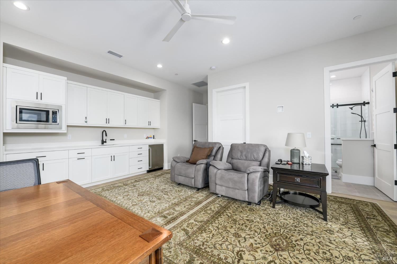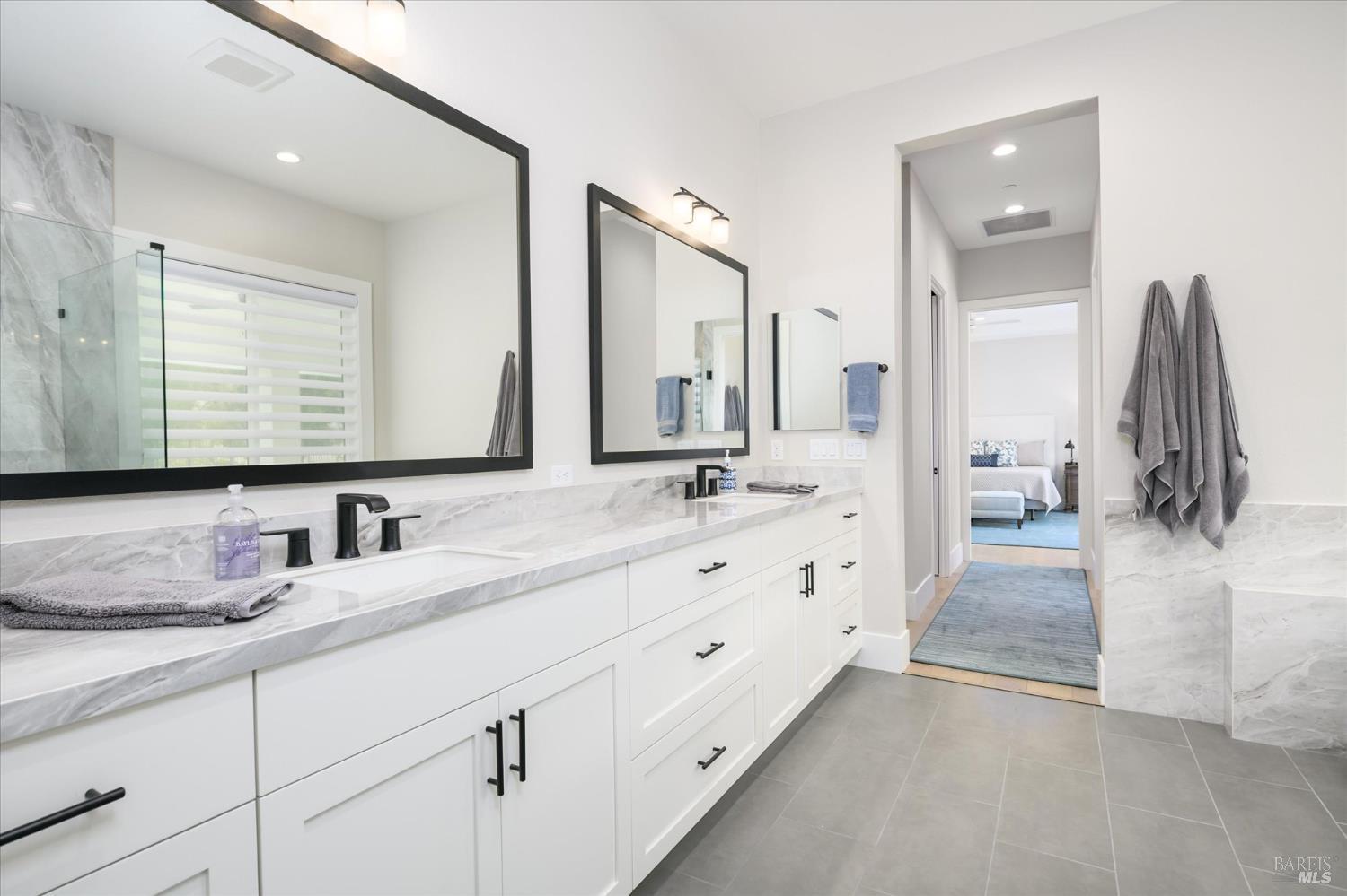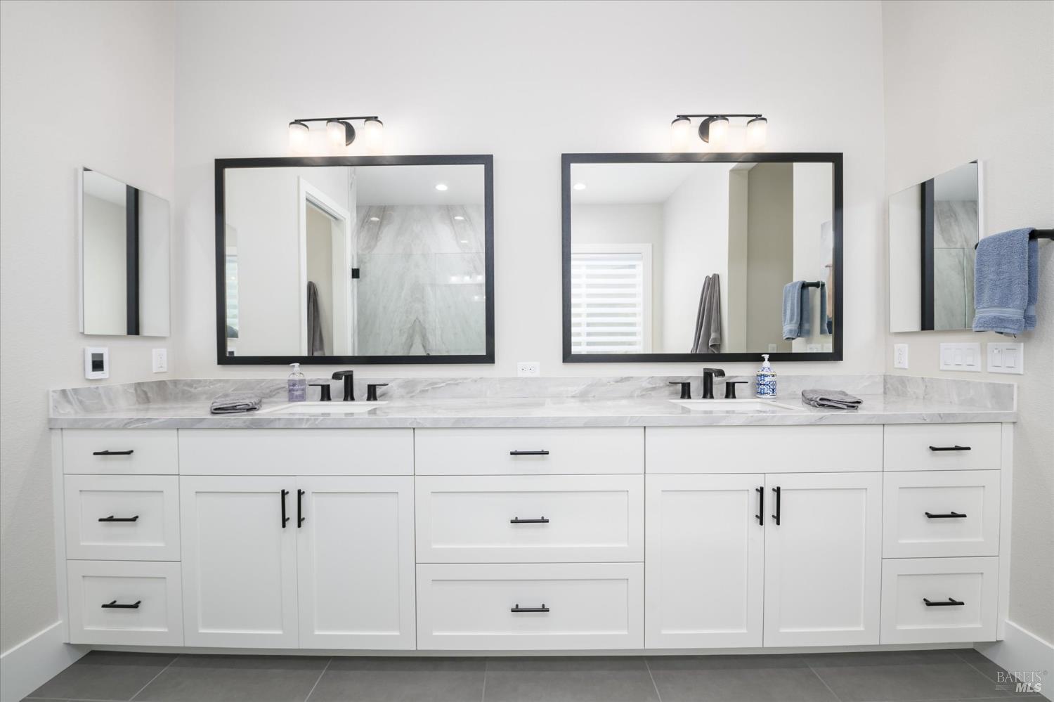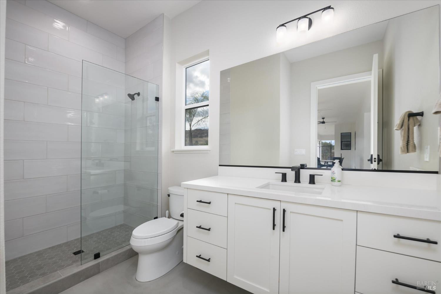 Welcome to your dream retreat, a stunning 4,098 sq ft modern masterpiece completed in 2023, perfectly positioned on a private 5-acre parcel designed for both comfort and resilience. This 5-bedroom, 5 1/2-bathroom home was built to impress, combining elegant design with high-end finishes and WUI-compliant fire-resistant construction, offering peace of mind in today's climate. Step inside to soaring 10- and 12-foot ceilings, expansive open living areas, and a seamless indoor-outdoor flow that defines luxury living. The heart of the home is the gourmet kitchen and spacious great room, opening out to an incredible 2,669 sq ft of covered patios ideal for year-round entertaining or quiet evenings under the stars. Outside, enjoy a custom sports pool built for fun and fitness, surrounded by sweeping views and open skies. The estate also features a versatile shop with three 14-ft roll-up doors, perfect for RVs, boats, or hobbyists needing serious workspace. Every detail has been thoughtfully crafted for modern living with the spacious layout that effortlessly blends luxury and functionality. Owned 15KW AC 60 Solar panel Nem-2 system and a 24,000KW Generac generator. Annual net ZERO cost for electricity. Located in the RNVWD public water district just a few miles outside of Vacaville.