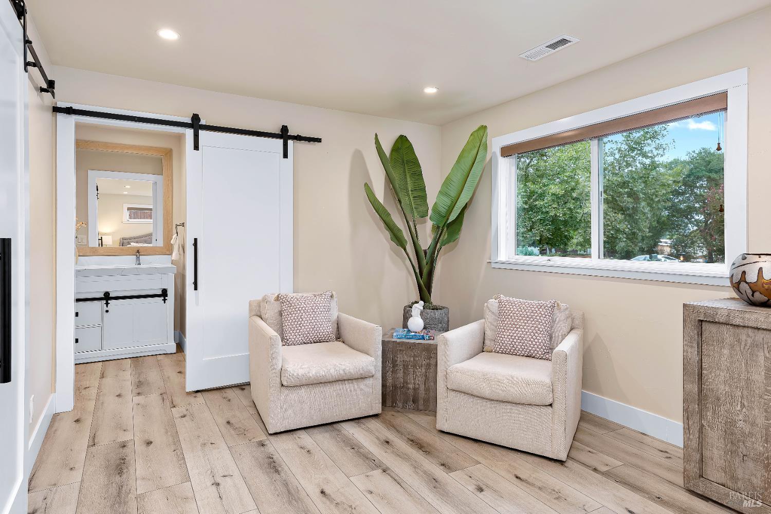 Beautifully remodeled, single-level home set in the ultra-desirable "Avenues". Experience Napa Valley luxury in this modern farmhouse home; reimagined during its 2019 renovation to reflect the wine country lifestyle. Set on a tranquil, expansive lot just minutes from downtown Napa, the impressive circular driveway and front gardens beckon you inside. The living space is warm and inviting, filled with light from its many windows with views of the backyard and the vineyard-covered hills beyond. The expansive, open concept kitchen seamlessly connects with the vaulted great room and formal dining areas. A serene guest cottage offers an inviting living area, spacious bedroom, full bath, coffee bar, and deck ideal for guests, family, nanny or a versatile office retreat. The backyard's spacious patio and manicured lawn surrounded by lush landscaping are ideal for entertaining. The carriage house-style outbuilding offers the possibility for a future detached office, studio or abundant storage. The grounds invite endless options for grapevines, bocce, or recreation. A distinctive winery-themed faade opens to an underground structure offering the ideal canvas for a wine cellar.