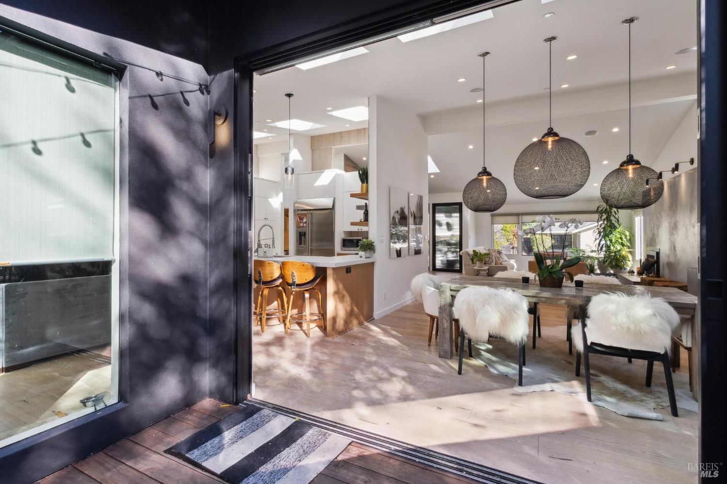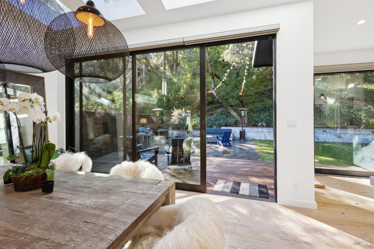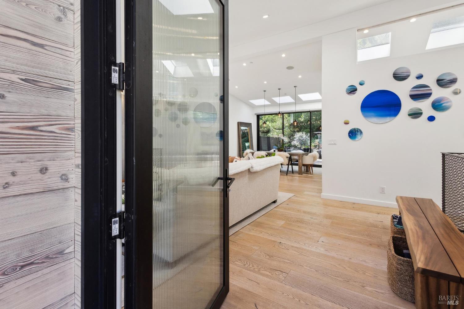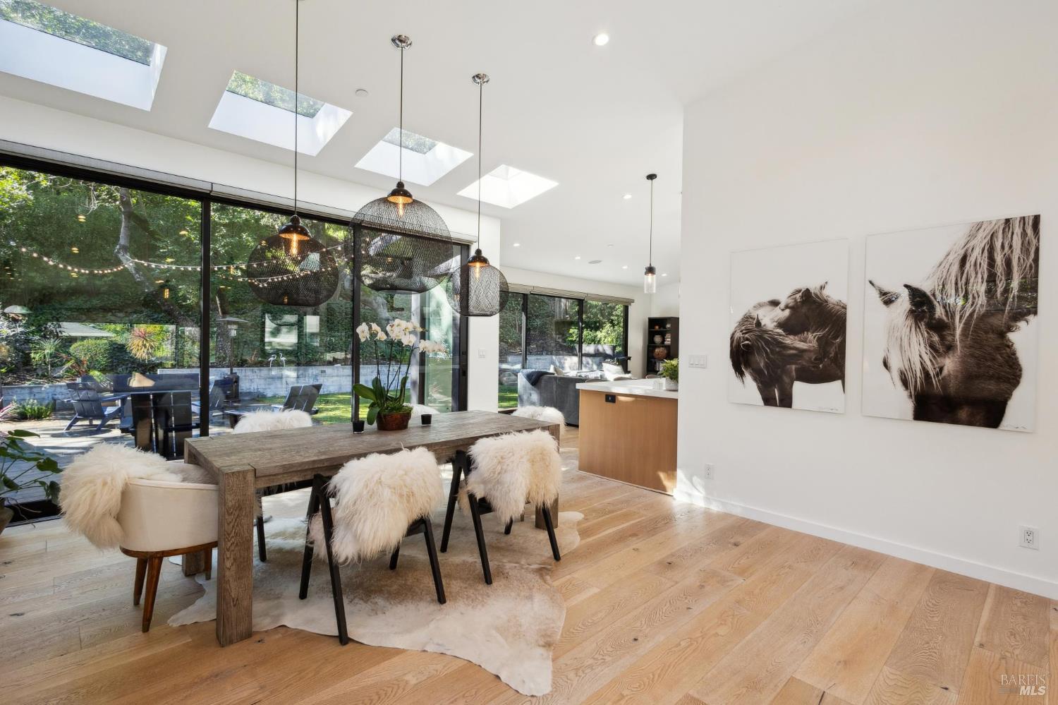 Prepare to be amazed by this exceptional 4-bedroom, 3.5-bath custom-built home, fully reimagined with top-tier craftsmanship and designer details. From the moment you arrive, you'll be captivated by the seamless indoor-outdoor flow, soaring vaulted ceilings, and dramatic lighting that set the stage for luxurious living. Exquisite custom wood finishes adorn both the interior and exterior, creating warmth and character throughout. Expansive skylights and oversized sliding glass doors flood the space with natural light, while a striking gas fireplace adds elegance and comfort. The gourmet kitchen is a chef's dream, featuring a premium Wolf range. Modern upgrades include solar panels, air conditioning, an entire home water filtration system, and an EV charger. The beautifully landscaped flat, level yard offers the perfect retreat for relaxation or entertaining. Every detail has been meticulously upgraded, including plumbing, sewer lateral, furnace, electrical, driveway, and a brand-new roof, ensuring peace of mind for years to come. Nestled in the highly desirable Kentfield school district with an unbeatable commute location, this home is the ultimate blend of luxury, convenience, and modern living.