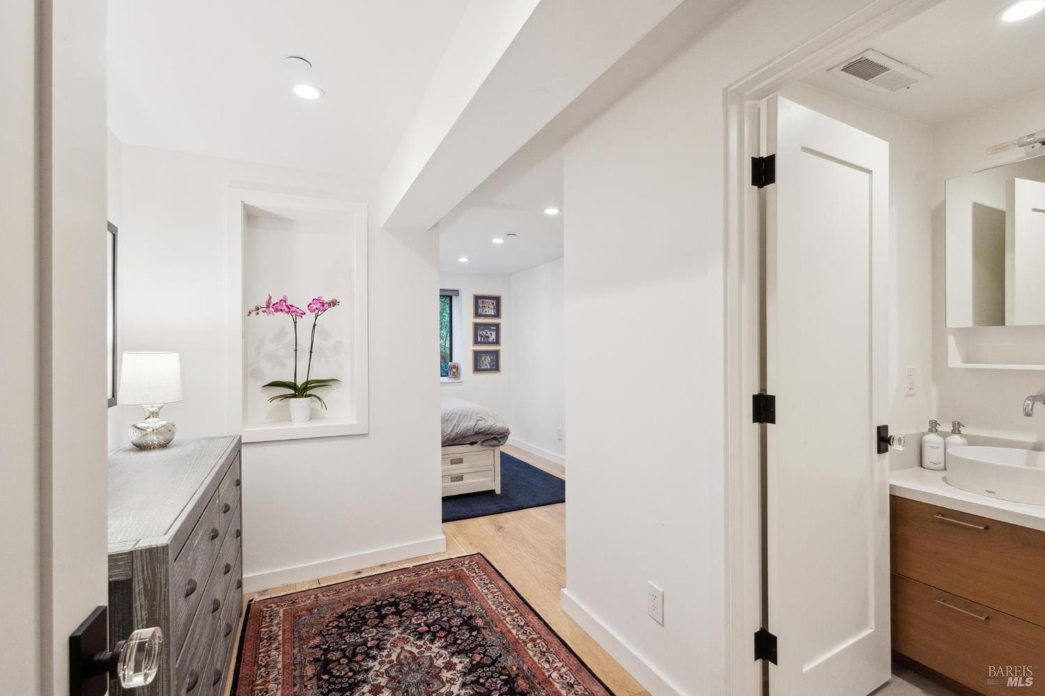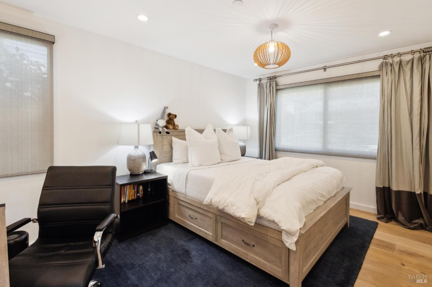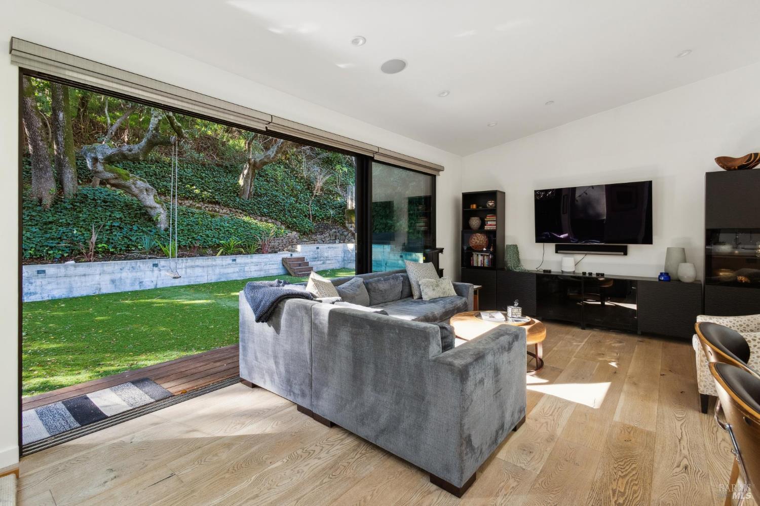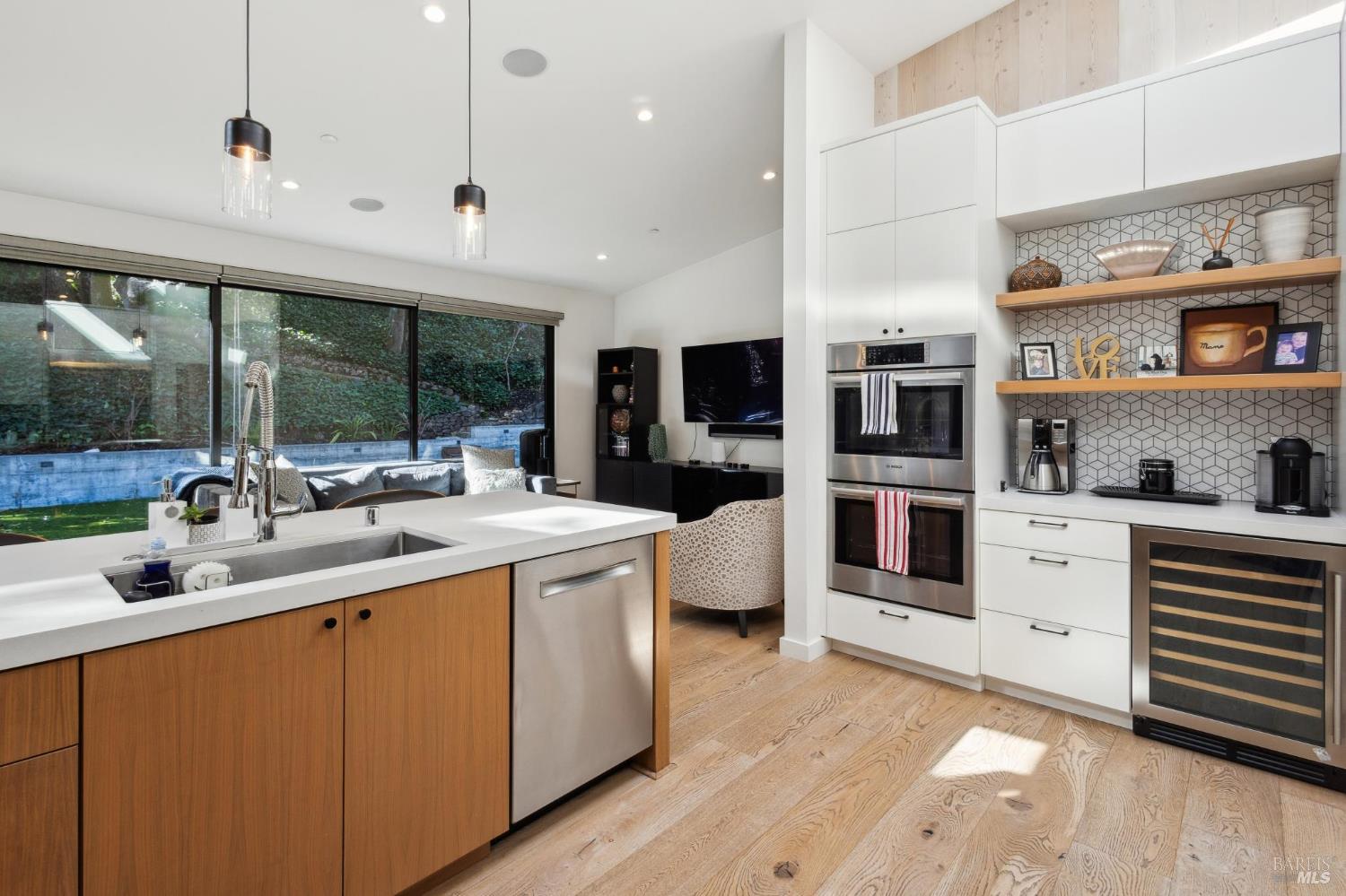 Prepare to be amazed by this exceptional 4-bedroom, 3.5-bath custom-built home, fully reimagined with top-tier craftsmanship and designer details. From the moment you arrive, you'll be captivated by the seamless indoor-outdoor flow, soaring vaulted ceilings, and dramatic lighting that set the stage for luxurious living. Exquisite custom wood finishes adorn both the interior and exterior, creating warmth and character throughout. Expansive skylights and oversized sliding glass doors flood the space with natural light, while a striking gas fireplace adds elegance and comfort. The gourmet kitchen is a chef's dream, featuring a premium Wolf range. Modern upgrades include solar panels, air conditioning, an entire home water filtration system, and an EV charger. The beautifully landscaped flat, level yard offers the perfect retreat for relaxation or entertaining. Every detail has been meticulously upgraded, including plumbing, sewer lateral, furnace, electrical, driveway, and a brand-new roof, ensuring peace of mind for years to come. Nestled in the highly desirable Kentfield school district with an unbeatable commute location, this home is the ultimate blend of luxury, convenience, and modern living.