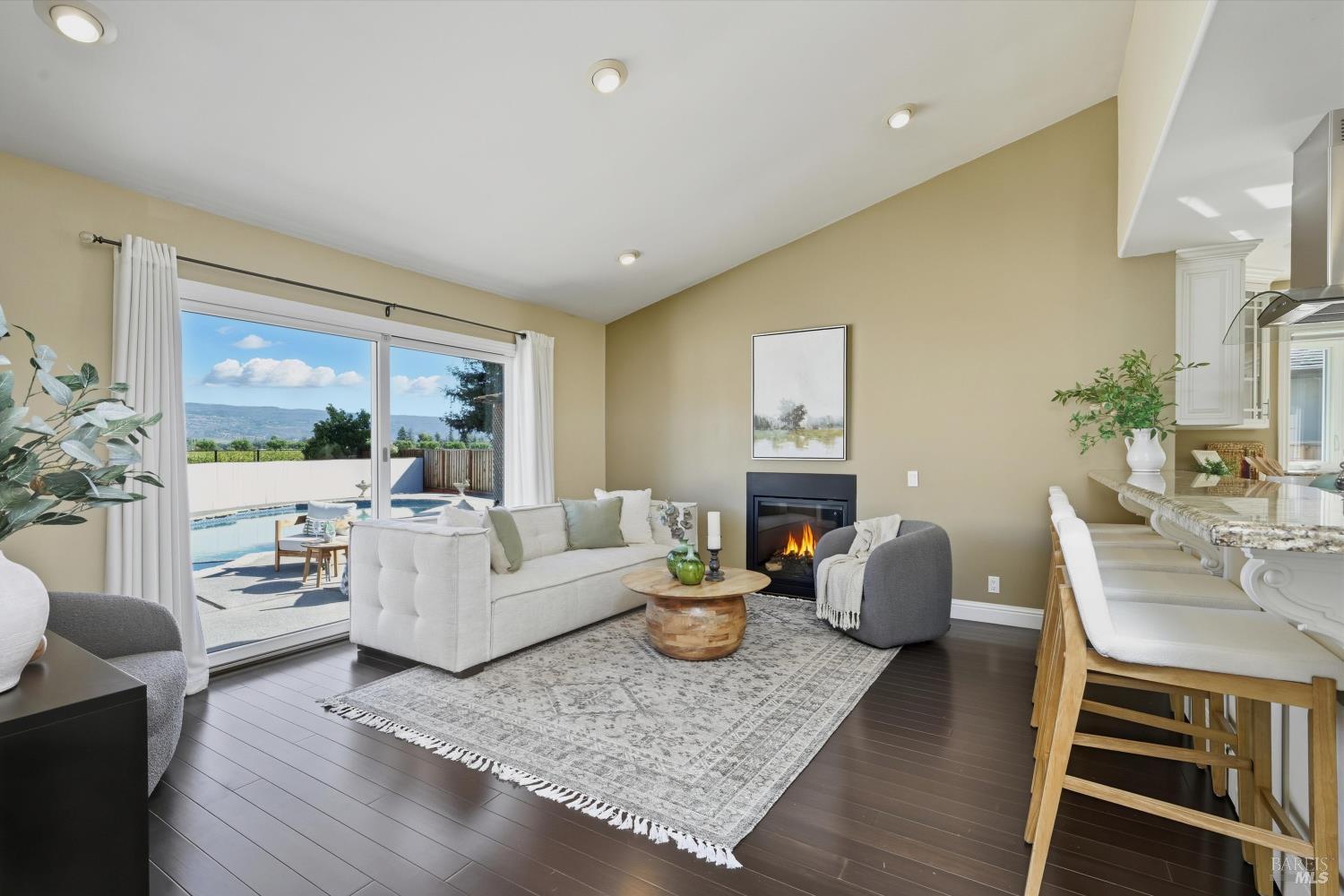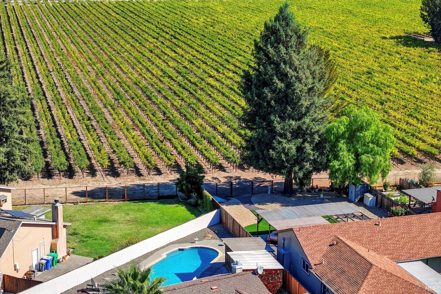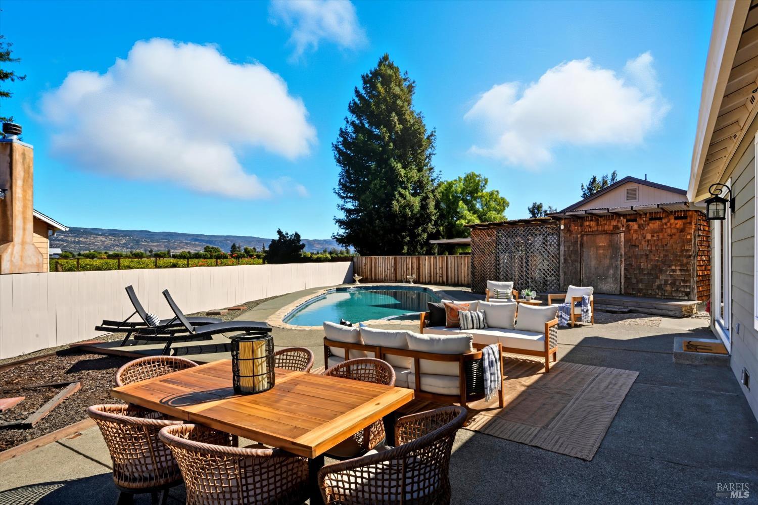 Welcome to this beautifully updated North Napa home, positioned to take in stunning vineyard & mountain views. Whether you're searching for a full-time residence or a peaceful retreat, this property delivers the best of Wine Country living. Inside, an open-concept floor plan creates effortless flow between living spaces. The centerpiece is a huge remodeled kitchen with expansive granite counters, stainless steel appliances, and a spacious dining bar that comfortably seats six - ideal for casual meals or entertaining guests. In addition to the vineyard and mountain views, this private backyard oasis features an in-ground pool and hot tub with a large patio and low maintenance landscaping, perfect for Napa's warm days and starlit evenings. Truly turn-key, this single level home boasts eco friendly strand bamboo flooring throughout, dual-pane windows, gas fireplace, and central heat and air for year-round comfort. Located in desirable North Napa and steps away from a beautiful neighborhood park, you're also just minutes from the Napa bike path, favorites like Bistro Don Giovanni, Osprey Seafood & Ranch Markets, and world renowned wineries. Opportunities like this don't come around often; don't miss your chance. Pictures may be enhanced; buyer to verify all info.