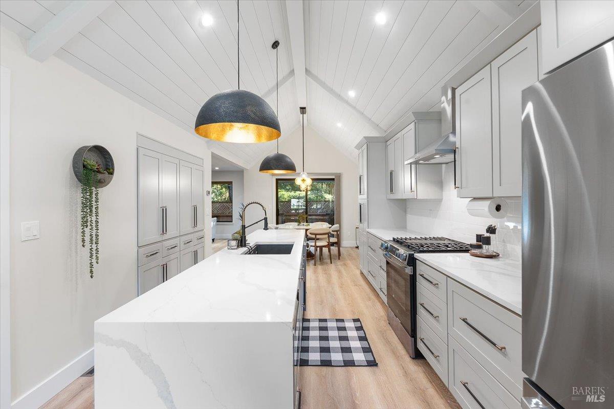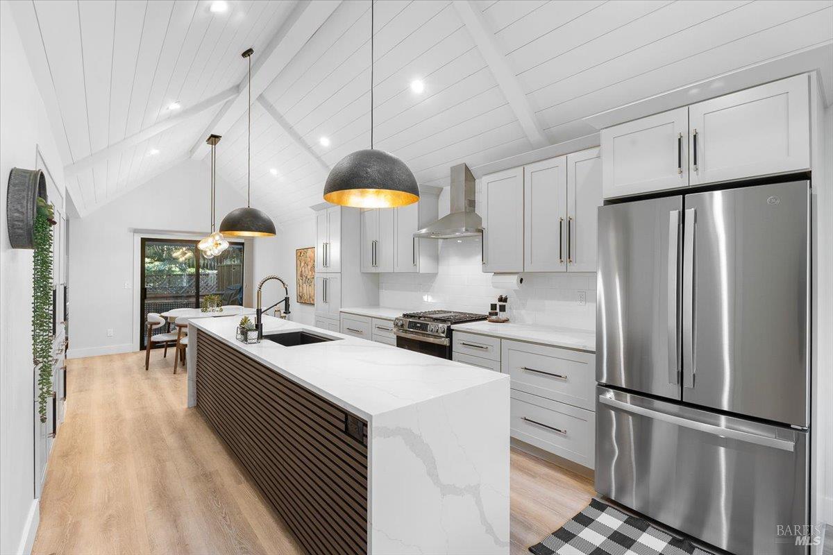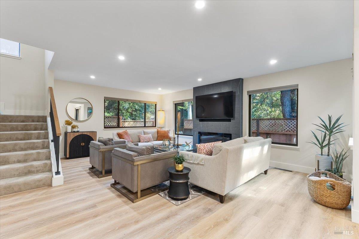 Available Now - Fully Furnished Lease Experience refined Wine Country living in the heart of Healdsburg. This beautifully reimagined 3-bedroom, 2.5-bath home in the coveted Fitch Mountain Villas offers ~1,724 sq ft of thoughtfully designed space just minutes from downtown's world-class wineries, dining, and shops. Set on a quiet cul-de-sac backing to open space, the home blends privacy with community charm. The open-concept main level features vaulted tongue-and-groove ceilings, exposed beams, wide-plank white oak-style floors, and a modern electric fireplace framed in designer tile. The chef's kitchen showcases quartz waterfall counters, custom cabinetry, gas range, and a slatted wood island with built-in microwave, plus a wet bar with wine fridge for easy entertaining. Upstairs, the vaulted primary suite offers a spa-style bath with large-format tile, walk-in shower, backlit dual vanity, and a custom barn door leading to a spacious walk-in closet. Enjoy the private backyard with mature trees, redwood reading nooks, and a pergola-covered deck, plus resort-style amenitiesheated pool, spa, tennis, bocce, pickleball, and scenic trails. Available now - offered fully furnished and utilities included.
