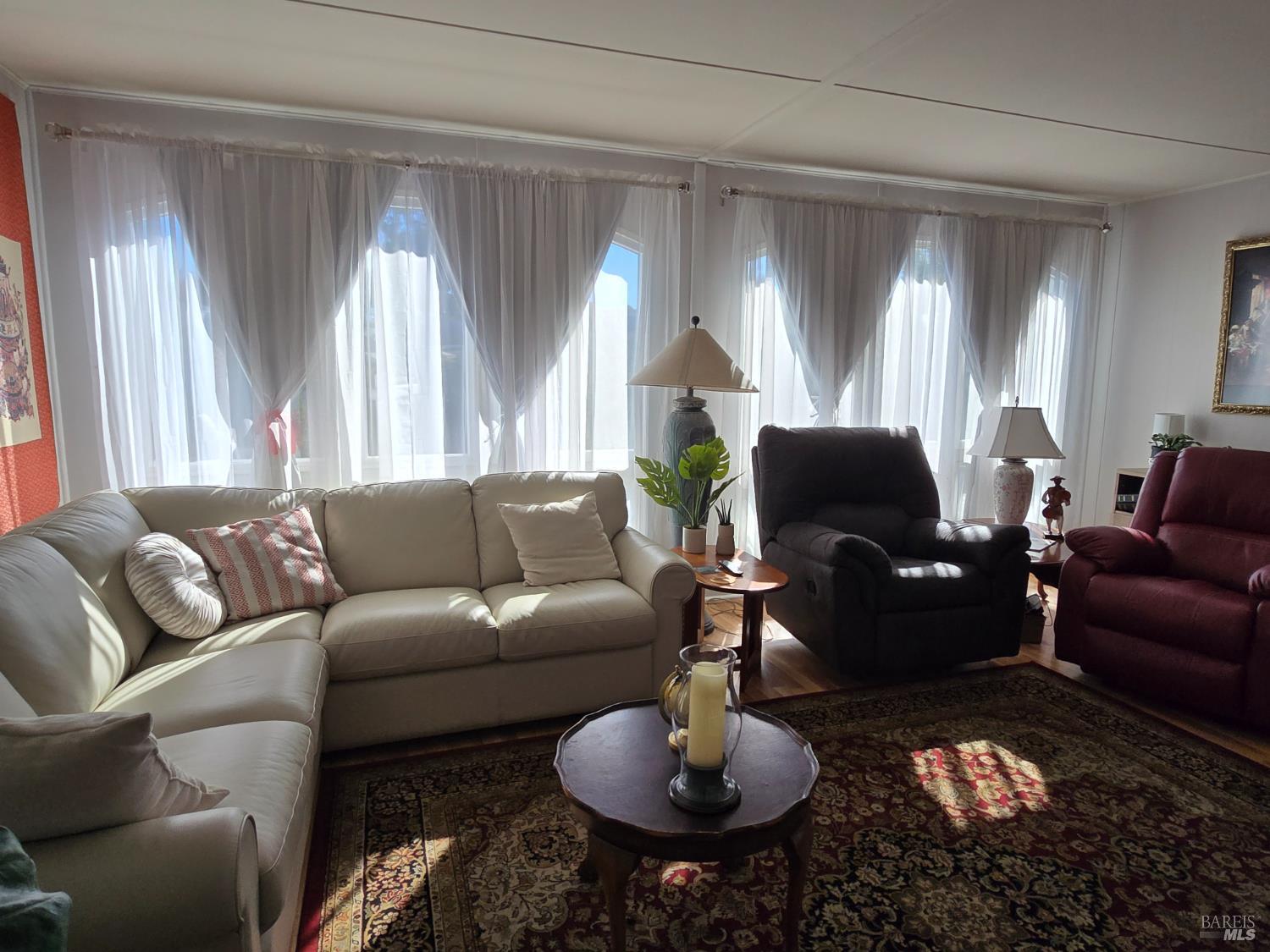 Great Senior community with space rent to buyer at $805.00. Enjoy amenities at the club house and the pool!. Near shopping, parks, restaurants, library and more. This home shows pride of ownership with its upgrades such as freshly coated roof, new heater and water heater, newer refrigerator, stove, oven, sink and faucet. Kitchen has quartz counter tops and the skylight provides a bright space to work. Living room is full of light, and newer wood flooring through out the home adds a feel of luxury.