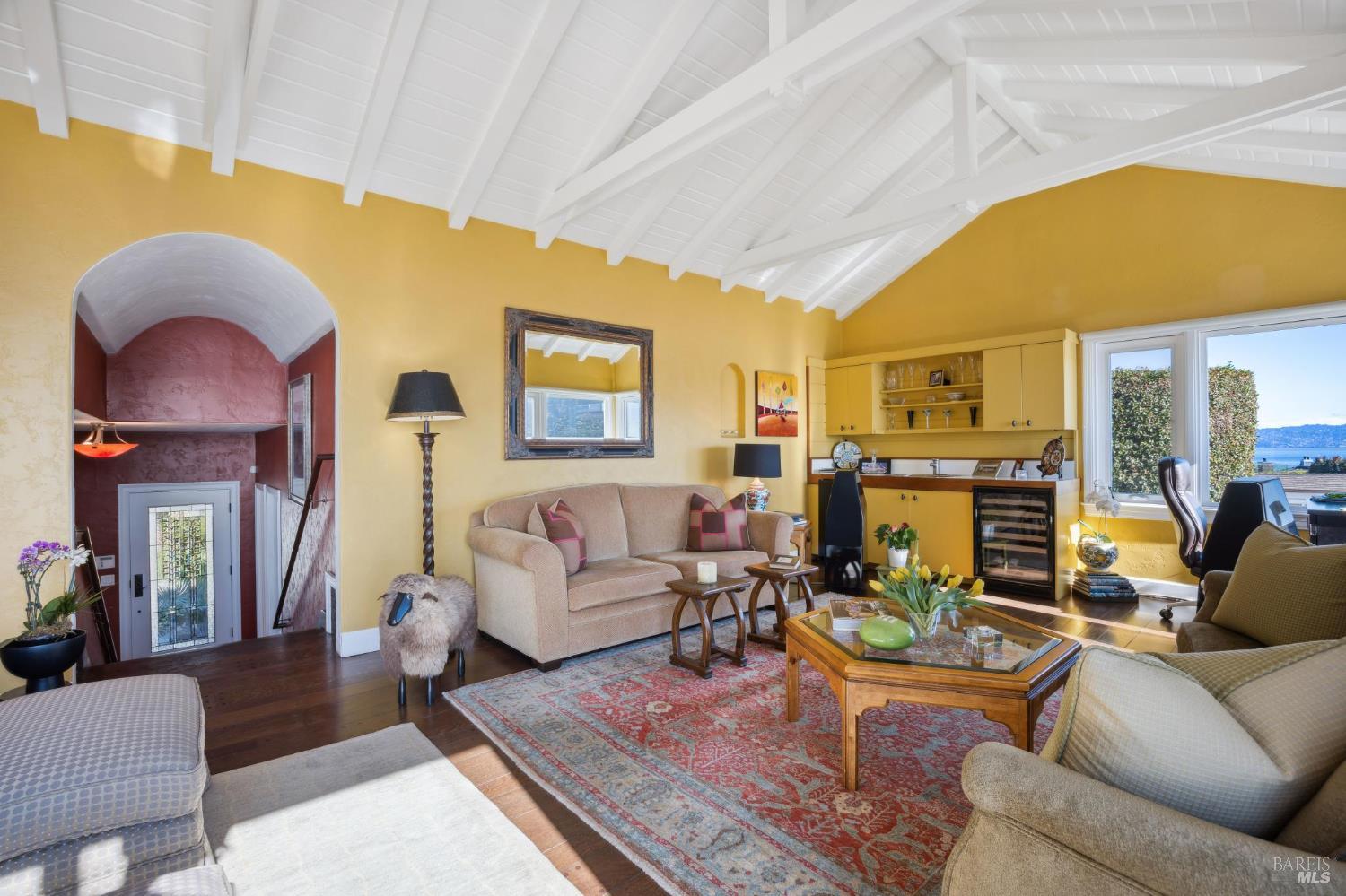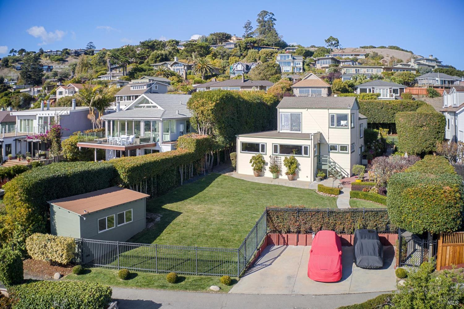 Imagine yourself waking up to stunning San Francisco Bay views - this enchanting 1939 home sits perfectly on Paradise Drive, on one of the three largest flat lots in Lyford Cove, offering a breathtaking panorama. Boasting shimmering vistas from the East Bay through Racoon Strait to the iconic Golden Gate Bridge, this delightful home is a dream for those seeking something extraordinary and magical. Step inside to discover character-filled spaces that echo the unique charm of Tiburon. The two-bedroom, two-bathroom home spans a rare street-to-street lot, offering privacy, charisma, and cozy outdoor areas perfect for intimate gatherings. The patio, lawn and stunning gardens become your private retreat for morning coffee or sunset wine. Beyond the main house you will find ample storage: a one-car garage, a detached shed and a convenient paved parking pad for three more cars, making entertaining easy. Just a stone's throw from downtown Tiburon's charming storefronts, dining spots, two prominent yacht clubs and the Golden gate Ferry, you'll never be far from the town's vibrant energy. For those who value charm, privacy, and an unforgettable view, this is more than a home; it's a daily adventure, perfectly situated on the edge of bay magic.