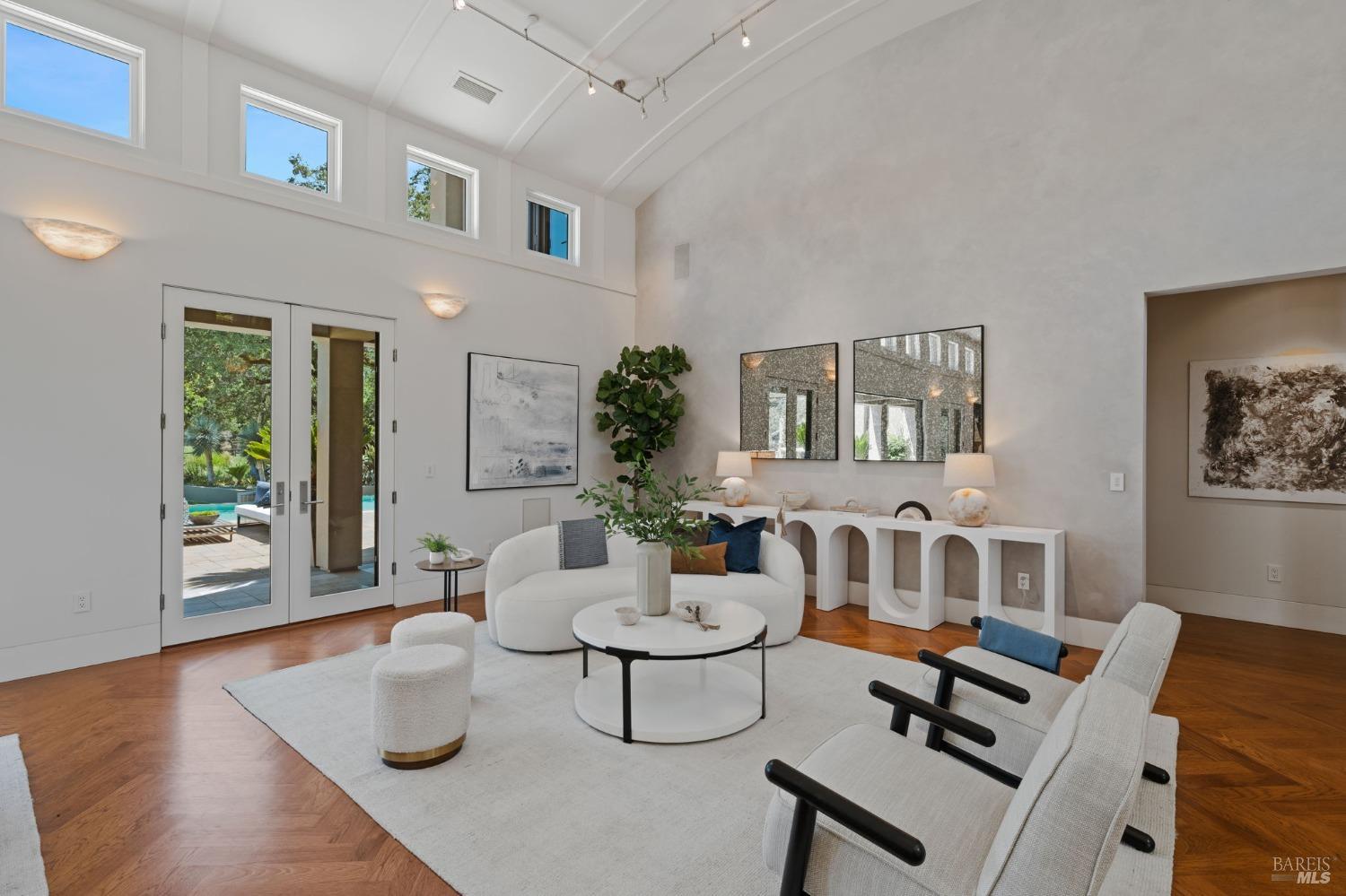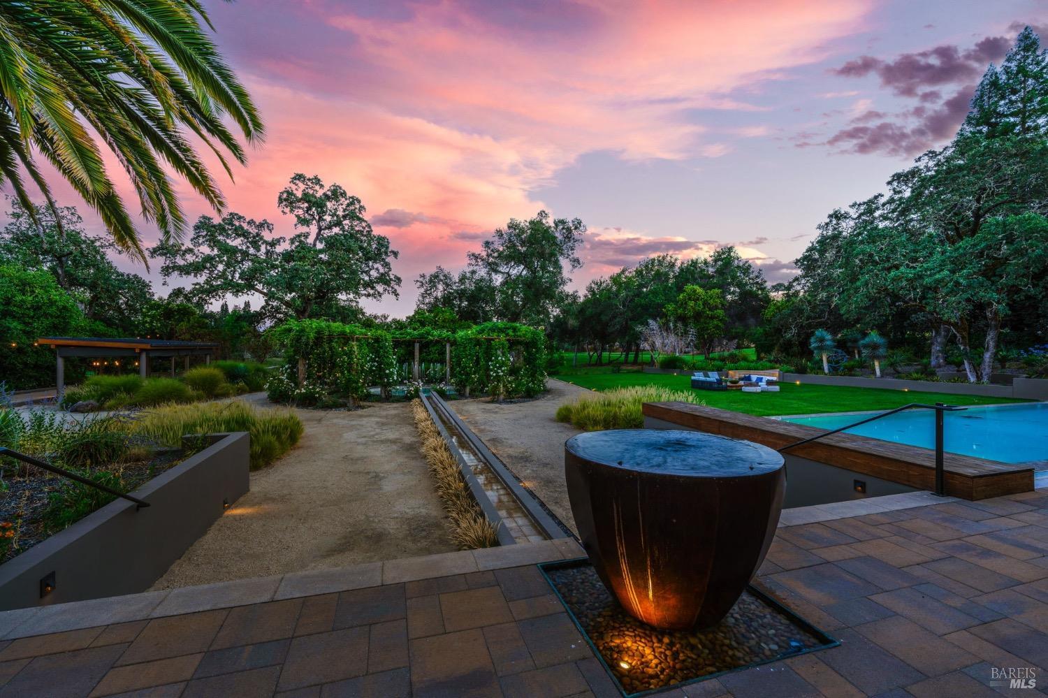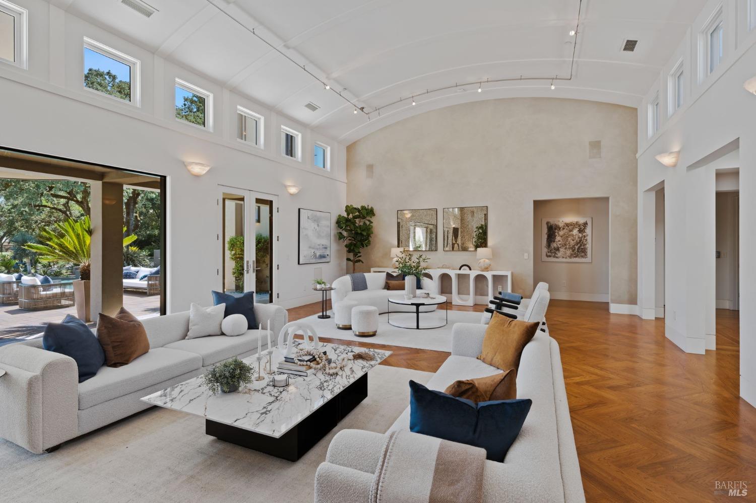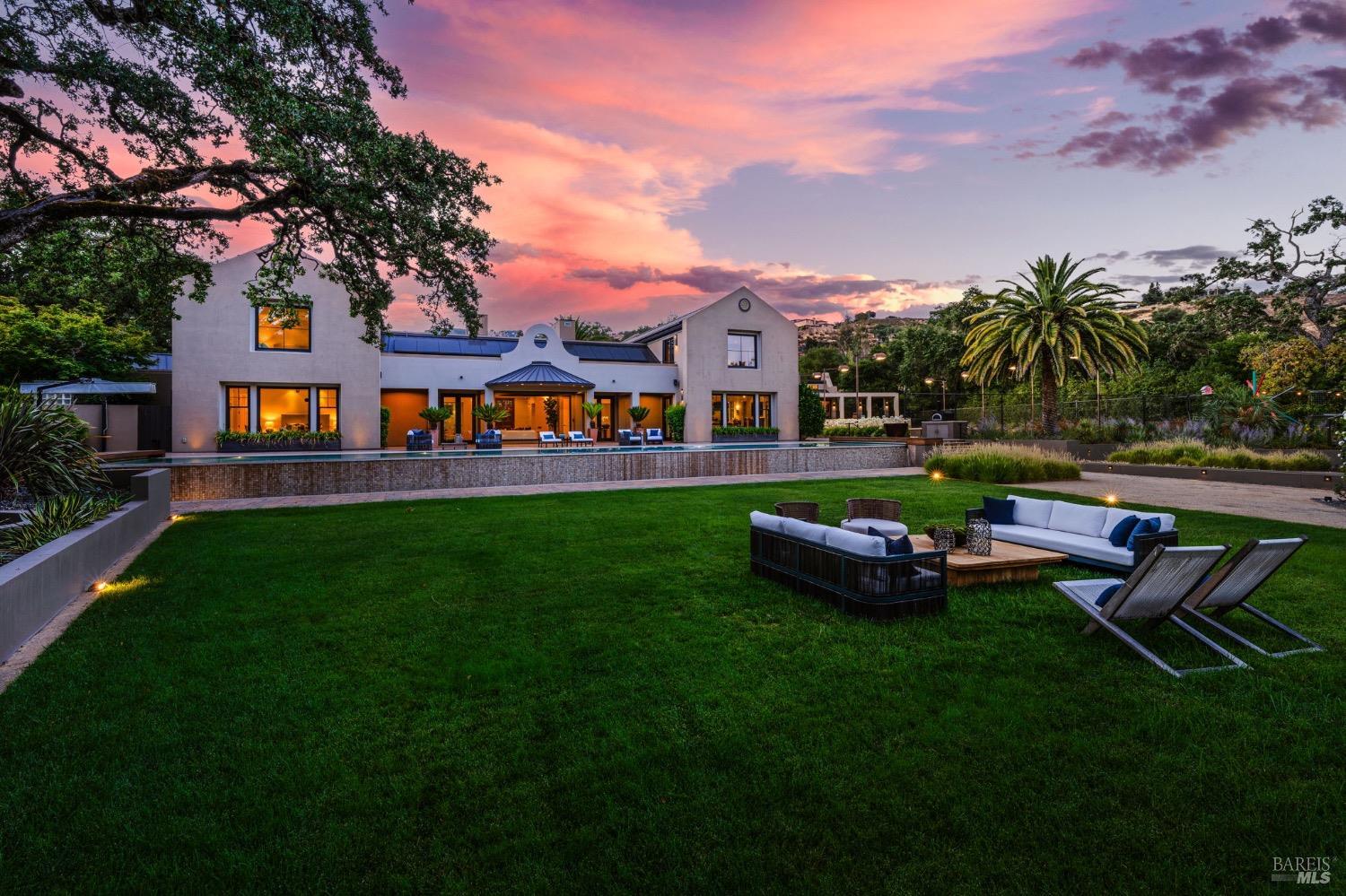 This is your opportunity to own the single largest property ever offered at the famed Silverado Country Club! Set on the 5th hole of the award-winning North Course, host to an annual PGA Tour event, with beautiful course views and private course access. With 8,200 square feet of living space including a gourmet chef's kitchen, billiard and game room, custom wine cellar and bar, and stunning landscaping, and more, this property has absolutely everything you need to enjoy the best of wine country living. Main house includes master suite with jacuzzi tub, steam shower, his/her toilets & sinks, large walk-in closet plus extra room for workout space or office. Master suite has gas fireplace, blackout curtains plus privacy screens, and rear projection TV with surround sound. The 1,128 square foot two-bedroom guest house has a full kitchen, living and dining area, gas fireplace, and walk-in closet with washer/dryer and one detached bedroom/bathroom. Entertain with the fully lit outdoor entertainment area that includes a bocce bar with fans, heaters, TV, music, and misters, two BBQ's with seating and fire pit and wood burning pizza oven. Play tennis on the US Open-style tennis court under the lights then relax in the heated infinity edge lap pool or hot tub with outside shower.
