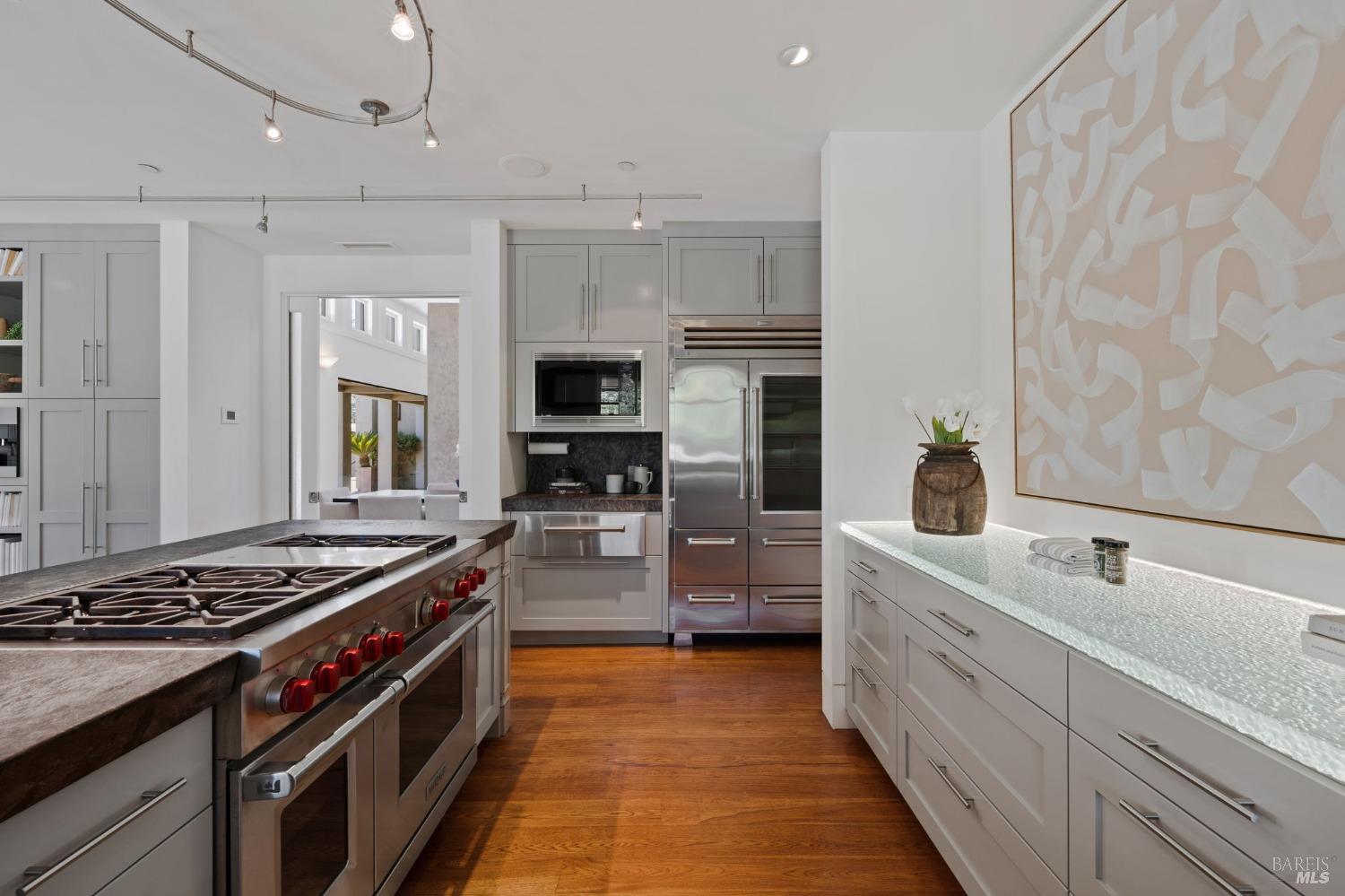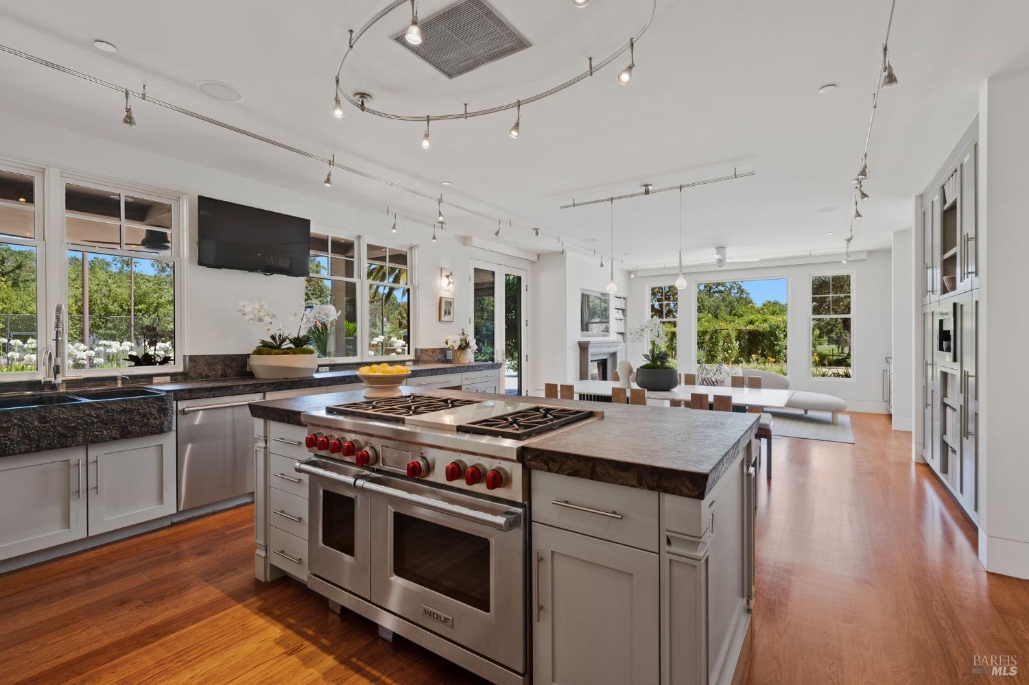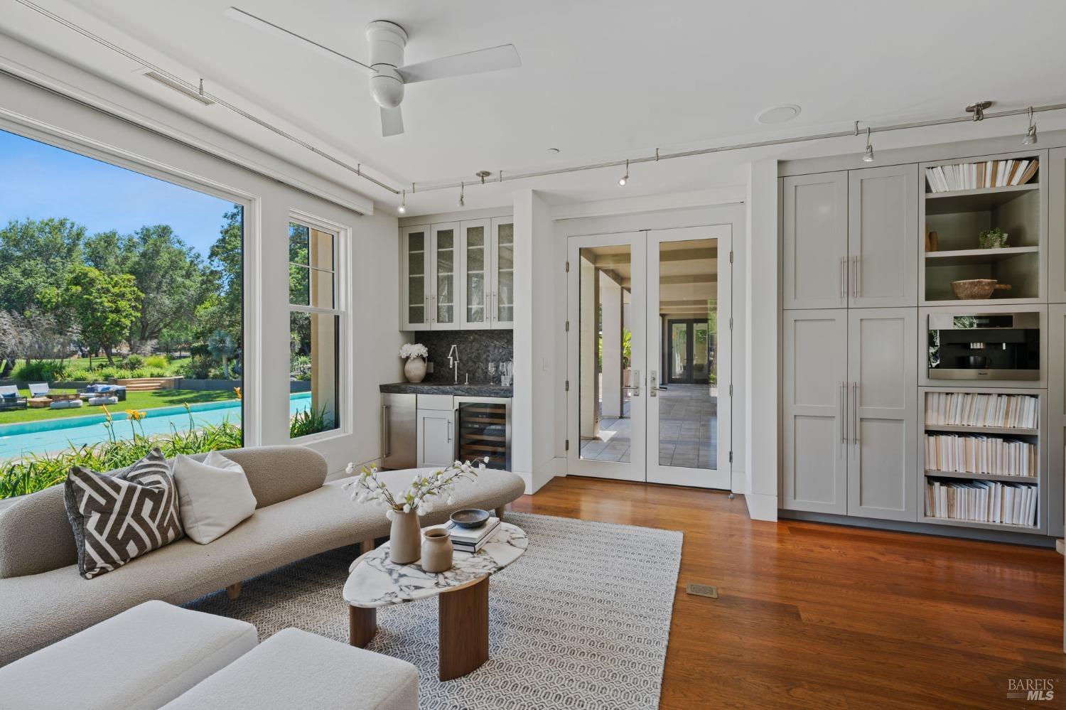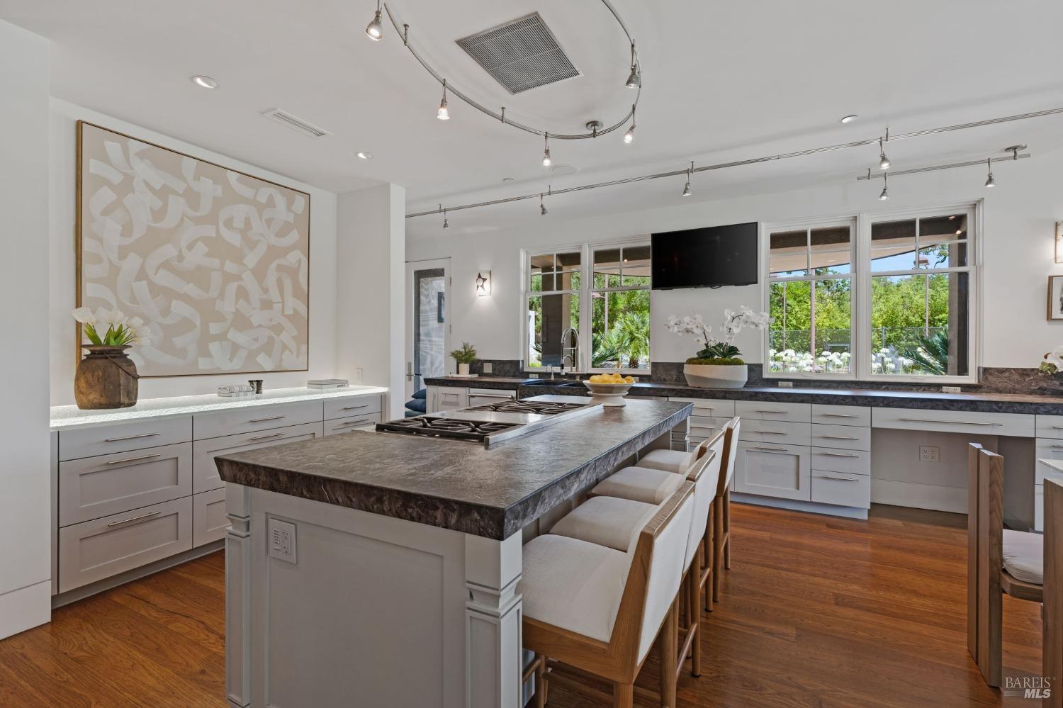 This is your opportunity to own the single largest property ever offered at the famed Silverado Country Club! Set on the 5th hole of the award-winning North Course, host to an annual PGA Tour event, with beautiful course views and private course access. With 8,200 square feet of living space including a gourmet chef's kitchen, billiard and game room, custom wine cellar and bar, and stunning landscaping, and more, this property has absolutely everything you need to enjoy the best of wine country living. Main house includes master suite with jacuzzi tub, steam shower, his/her toilets & sinks, large walk-in closet plus extra room for workout space or office. Master suite has gas fireplace, blackout curtains plus privacy screens, and rear projection TV with surround sound. The 1,128 square foot two-bedroom guest house has a full kitchen, living and dining area, gas fireplace, and walk-in closet with washer/dryer and one detached bedroom/bathroom. Entertain with the fully lit outdoor entertainment area that includes a bocce bar with fans, heaters, TV, music, and misters, two BBQ's with seating and fire pit and wood burning pizza oven. Play tennis on the US Open-style tennis court under the lights then relax in the heated infinity edge lap pool or hot tub with outside shower.