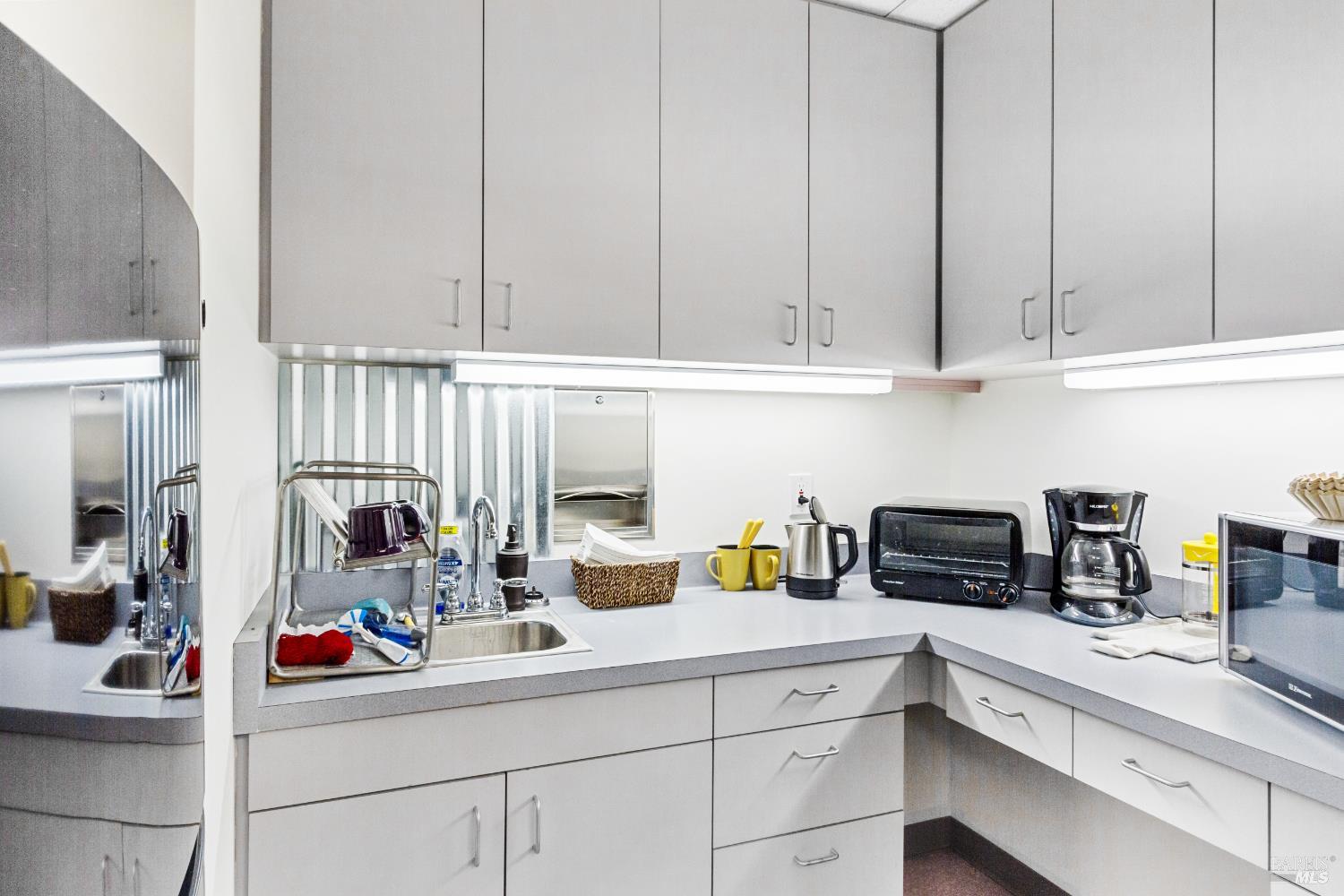 The Plaza on Lakewood provides the high-end atmosphere your business deserves. This diverse multi-tenant medical and professional office park features a grand front entrance with a fountain, vaulted ceilings, and an open staircase leading to the second flooralong with elevator access for convenience. The complex offers four common area restrooms and two locker rooms on the upper level, as well as a private parking lot with ample spaces, including 26 covered spots beneath the solar carport. This particular micro suite is plumbed with a sink, making it ideal for medical, wellness, or beauty professionals seeking a turnkey space within a highly maintained and prestigious complex.