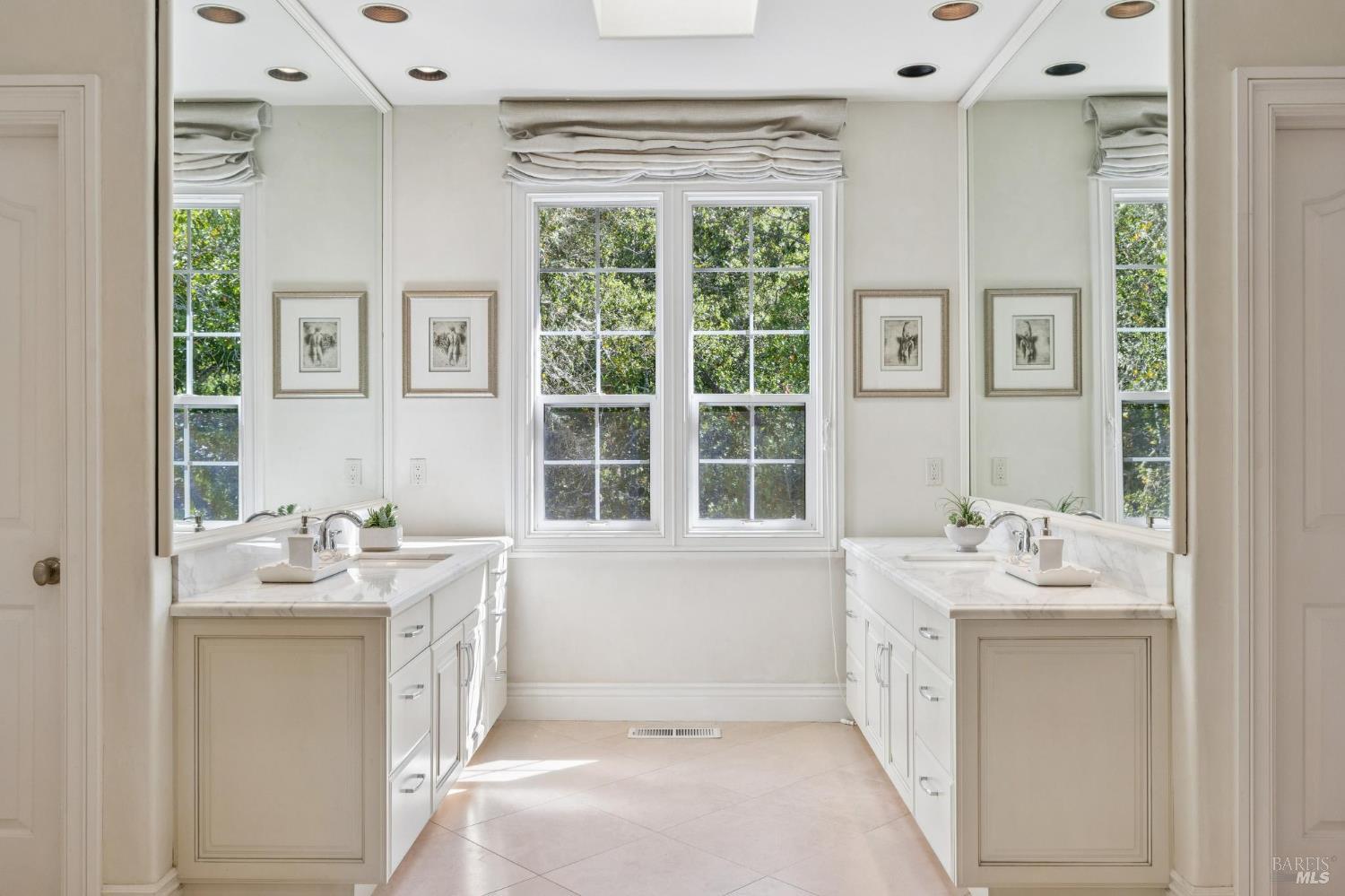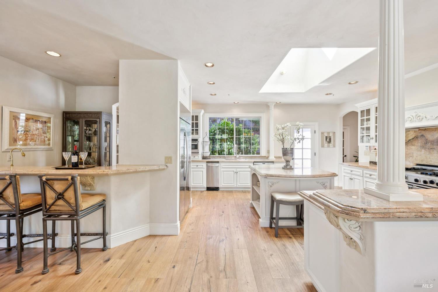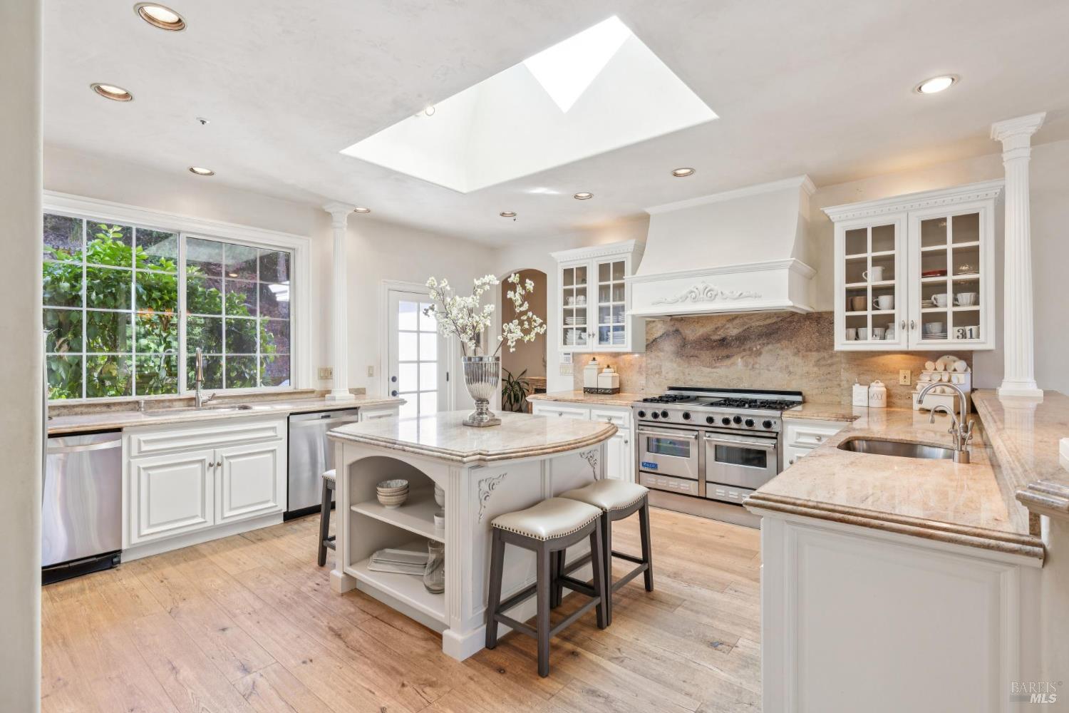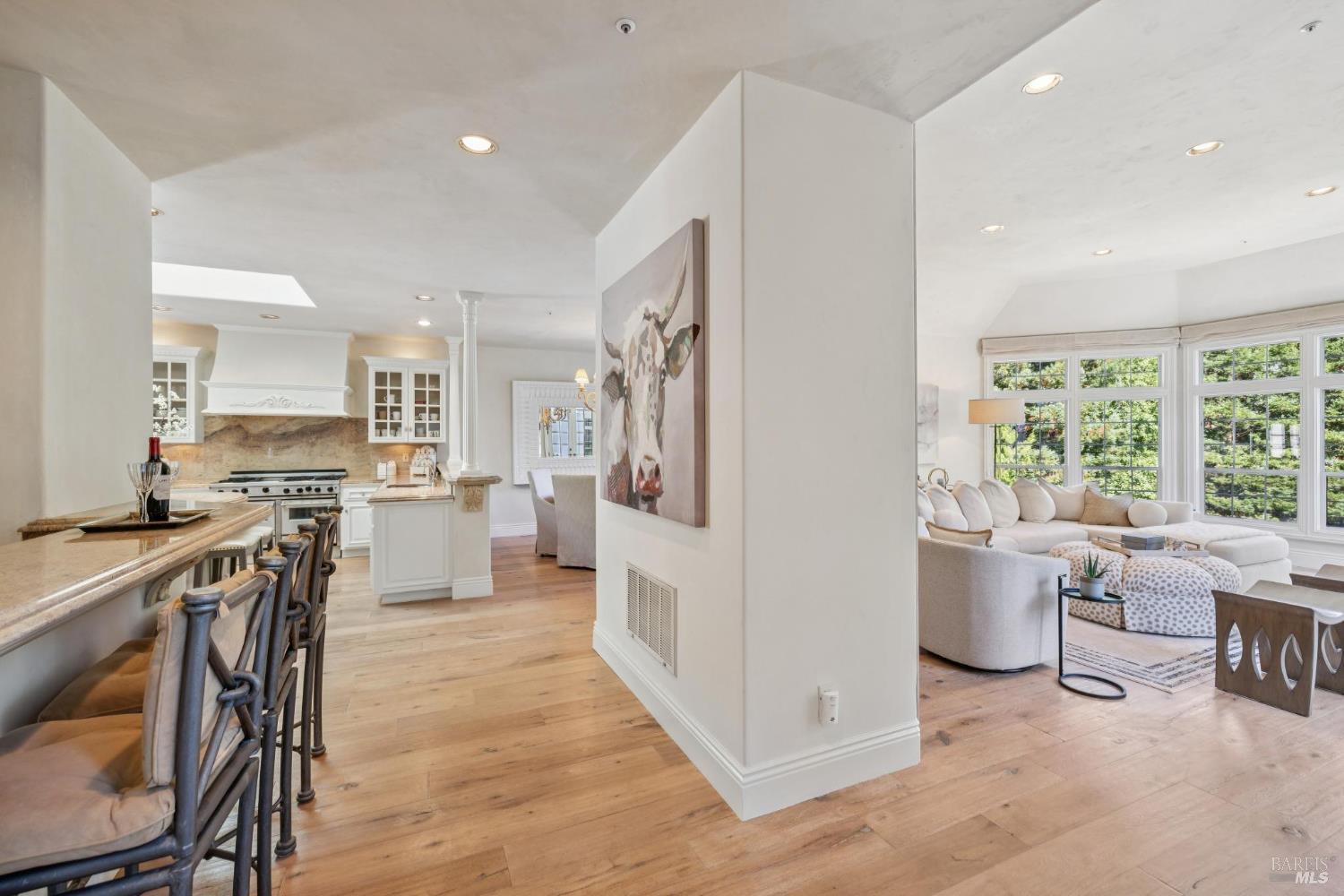 Located on coveted Vineyard Road, this gated 2.1 acre estate combines privacy, refined design, resort-style living, and equestrian amenities in one of Marin's premier settings. Designed by Martin Kobus and extensively renovated, the expansive 6,415 sq. ft. residence features DuChteau wide-plank wood floors, integral plaster walls, soaring ceilings, and abundant natural light. A dramatic double-height living room anchors the home, complemented by a state-of-the-art theater, custom chef's kitchen and wet bar open to the family room, elegant dining room, home office, four fireplaces, and multiple French doors opening to the outdoors. The main-level primary suite includes a spa-like limestone and Calacatta marble bath with Hansgrohe fixtures. Each of the guest bedrooms enjoys its own bath. Outdoors, the property unfolds like a private retreat - pool, fountains, BBQ gazebo, level lawns, travertine terrace, hot tub, basketball half court, and direct trail access for hiking and horseback riding. The lighted corral and stall/tack area will delight equestrians. Modern amenities include a newer roof, dual-zone heat/AC, generators, security system, and 3-car garage. Experience an elevated lifestyle connected to nature and community in this exquisite equestrian estate.