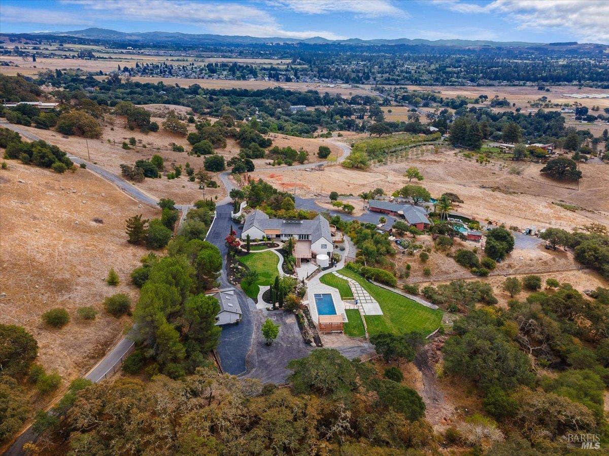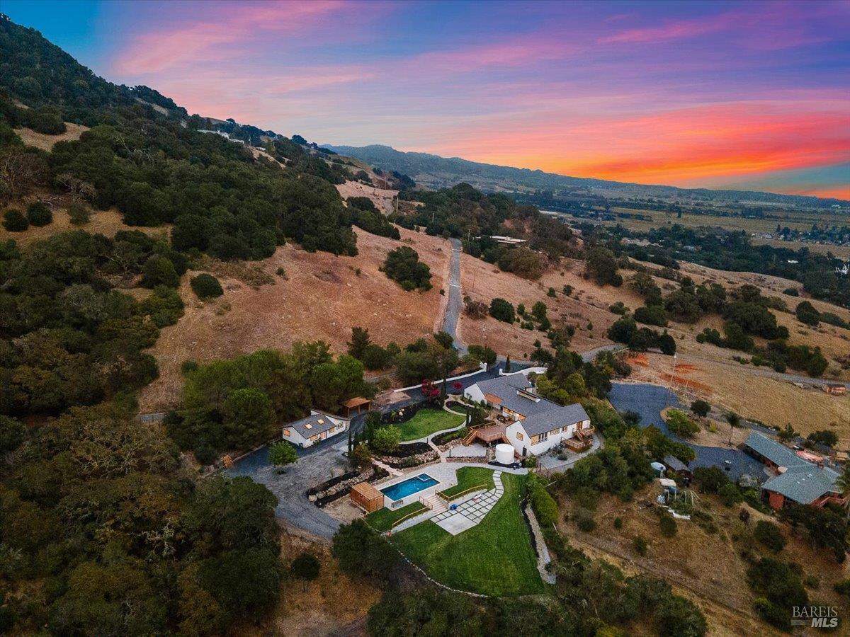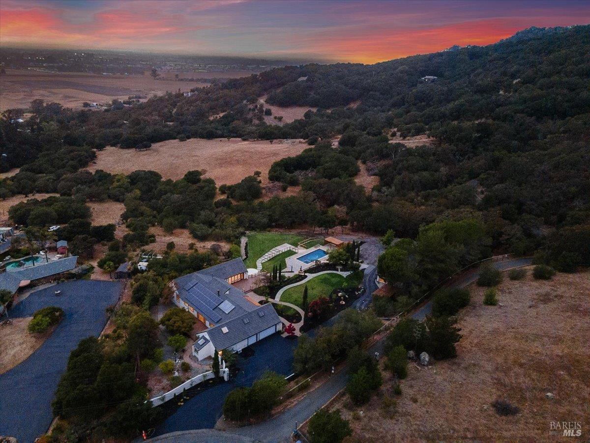 This private gated estate features approximately 4,000 sq. ft. of combined living space between a 3-bedroom main home with an office and an attached studio ADU, plus an additional ~900 sq. ft detached 2-bedroom, 1-bath unit ideal for guests, extended family, or a private workspace. Enjoy a true retreat setting with an in-ground pool and spa, two cabanas, and lush landscaping that spans nearly the entire property. A seasonal creek adds natural charm, while the elevated position captures beautiful sunsets and valley views. Conveniently located just a short drive from both Rohnert Park and Santa Rosa, and near Taylor Mountain Regional Park, this property offers a rare combination of privacy, flexibility, and resort-style comfort. Some photos of this property have been digitally staged.