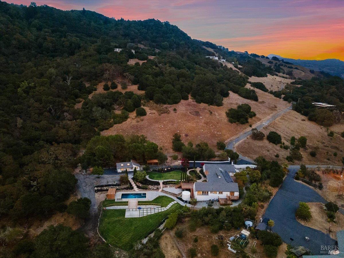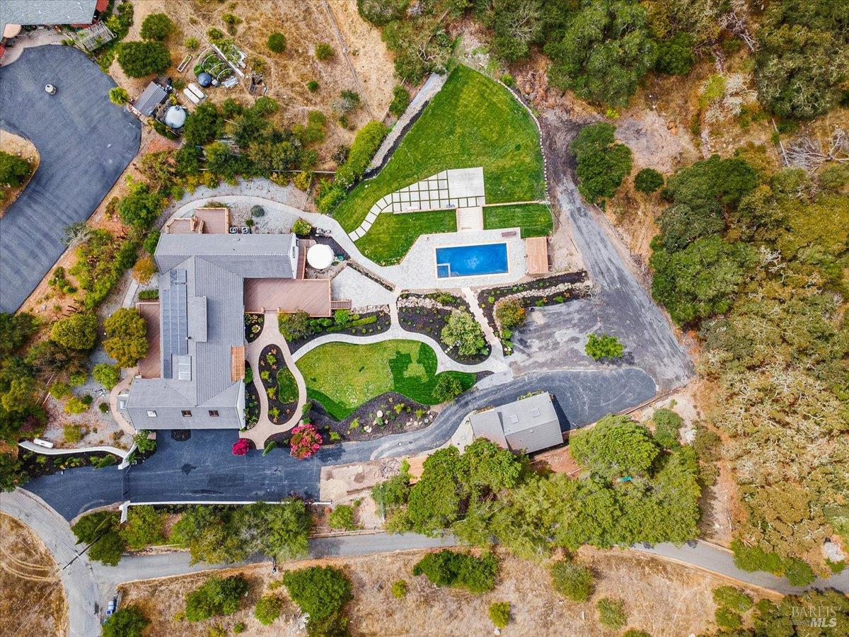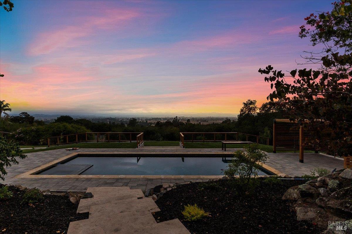 This private gated estate features approximately 4,000 sq. ft. of combined living space between a 3-bedroom main home with an office and an attached studio ADU, plus an additional ~900 sq. ft detached 2-bedroom, 1-bath unit ideal for guests, extended family, or a private workspace. Enjoy a true retreat setting with an in-ground pool and spa, two cabanas, and lush landscaping that spans nearly the entire property. A seasonal creek adds natural charm, while the elevated position captures beautiful sunsets and valley views. Conveniently located just a short drive from both Rohnert Park and Santa Rosa, and near Taylor Mountain Regional Park, this property offers a rare combination of privacy, flexibility, and resort-style comfort. Some photos of this property have been digitally staged.