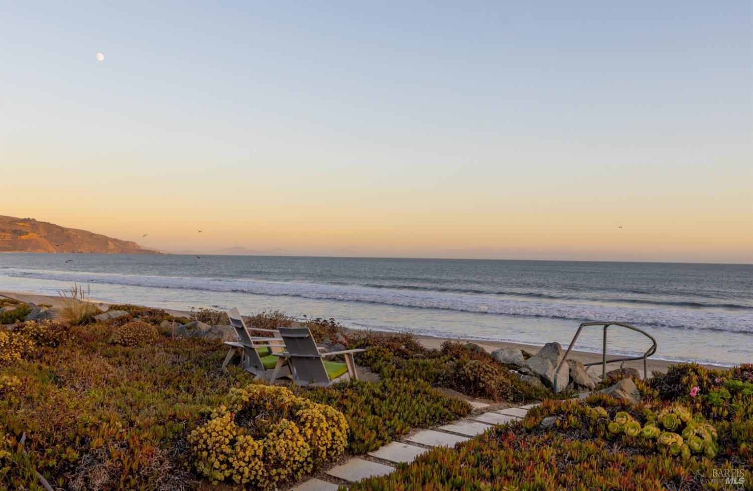 Like many who are called to live by the ocean, where time goes by watching the waves and the horizon, the morning sky and golden sunsets, the ease it brings becomes a sense of being with the soul in a timeless landscape. 310 Seadrift Road, is a rare offering in the exclusive 300s. The most sought-after addresses set along one of California's most coveted stretches of beachfront property uniquely positioned between the sparkling Pacific Ocean and the Bolinas Lagoon. Intentionally low-profile, the architecture is modern coastal, designed to frame the land and slightly elevated to capture sweeping, unobstructed ocean views and effortless indoor-outdoor living. The kitchen and living room provide an open concept area with floor-to-ceiling bi folding glass walls that open to a protected inner courtyard facing the ridgeline of Mt.Tam and directly out to the mesmerizing blue Pacific. Life here is unhurried. Cinematic. Doors stay open. Meals are prepared as a crab trap is set off shore, just out front. Romantic sunsets are enjoyed from dune chairs. Fires are lit in the wood burning fireplace as the fog begins to roll in. The floorplan is comfortable with radiant floor heat, automatic window treatments, high end kitchen appliances, security system, solar and detached two car garage.