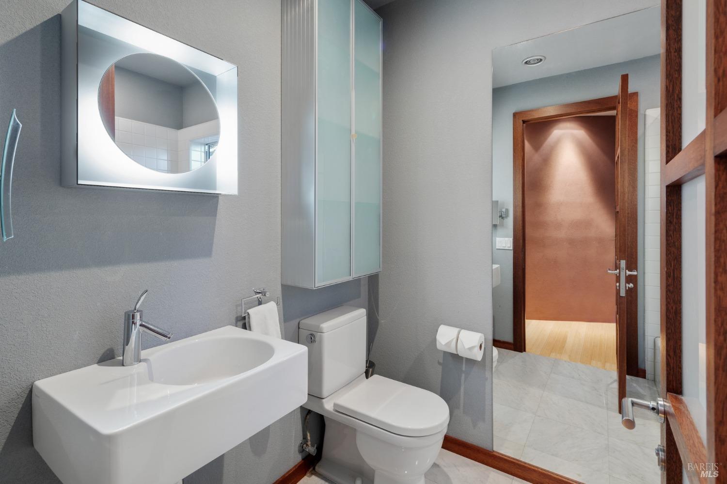 Perched above the rolling hills of Sonoma County, Villa Moderna is a striking contemporary estate that defines modern California living. Blending Mediterranean inspired architecture with sleek sophistication, this residence showcases heated Carrera marble floors, Philippe Starck fixtures, and a chef's kitchen designed for culinary artistry. Walls of glass frame sweeping vineyard and valley views, creating a seamless connection between indoor and outdoor spaces. The resort style grounds include a limestone clad pool, spa, guest cottage with kitchen, and impeccably landscaped Mediterranean gardens, perfect for entertaining or quiet retreat. Set on approximately eight private acres dotted with century old oaks, this estate offers serenity just minutes from Healdsburg's charming plaza and a nearby regional jetport. Villa Moderna is more than a home, it's a lifestyle of elegance, privacy, and timeless beauty.