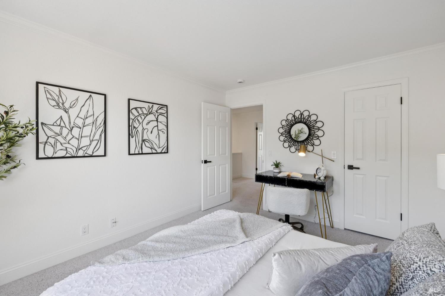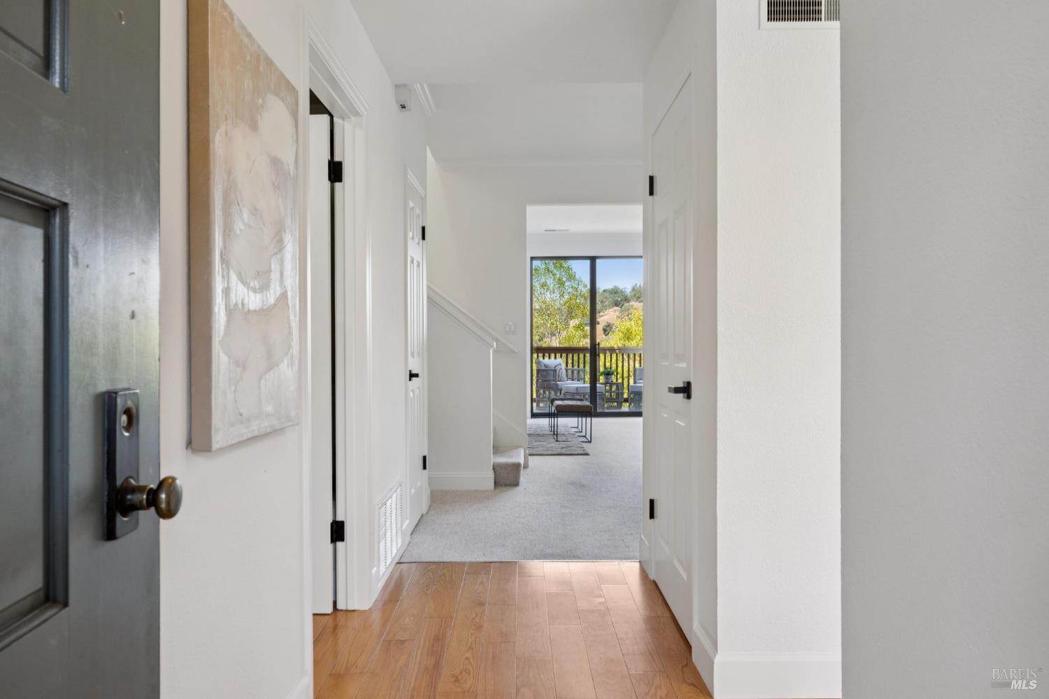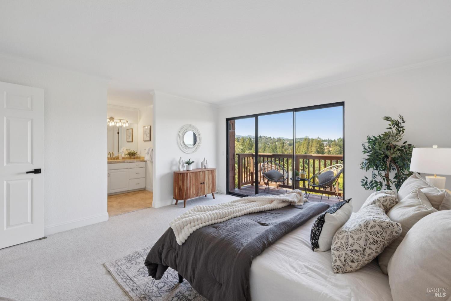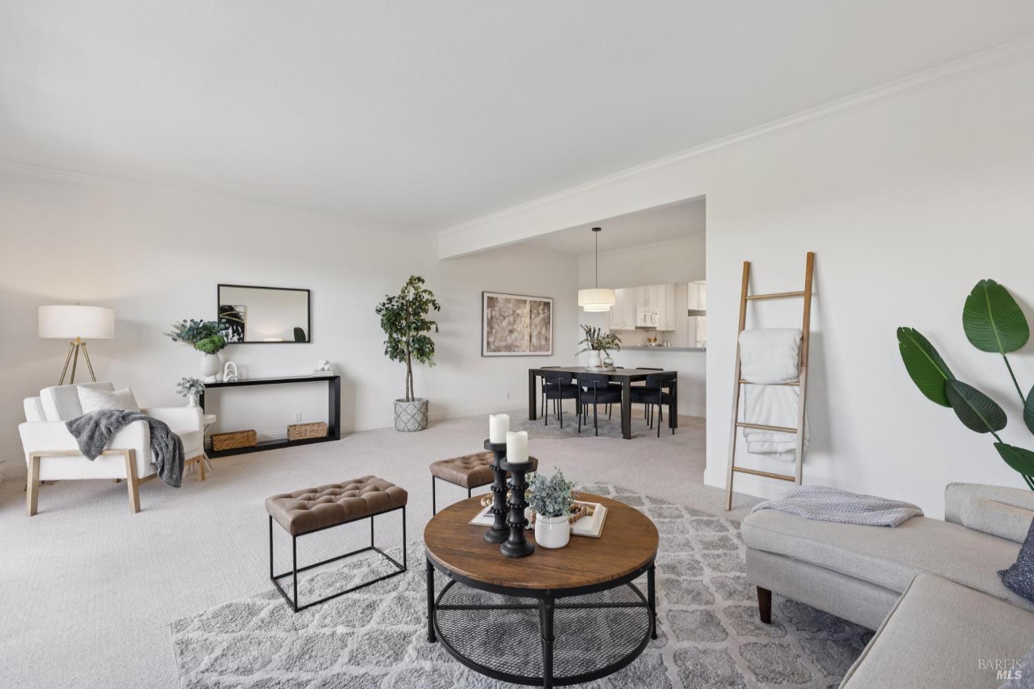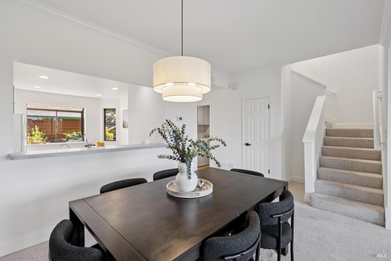 Welcome to a bright and inviting two-level townhome with sweeping hillside views, including Mount Burdell. The main level features an open floor plan with a spacious living room centered by a cozy fireplace, large windows, and access to a private deck. The dining area flows seamlessly into the kitchen, complete with ample cabinetry and a cheerful breakfast nook. A half bath and full laundry room add everyday convenience. Upstairs, the primary suite offers a walk-in closet, ensuite bath, and its own private deck to enjoy the views. Two additional bedrooms and a full bath provide flexibility for guests, family, or work-from-home. Fresh paint, updated lighting, and plush carpet enhance the move-in ready feel. Outdoor living is expanded with multiple decks, while a detached garage provides secure parking and storage. Ideally located near Novato shops, dining, and parks, this home blends comfort, function, and picturesque scenery.