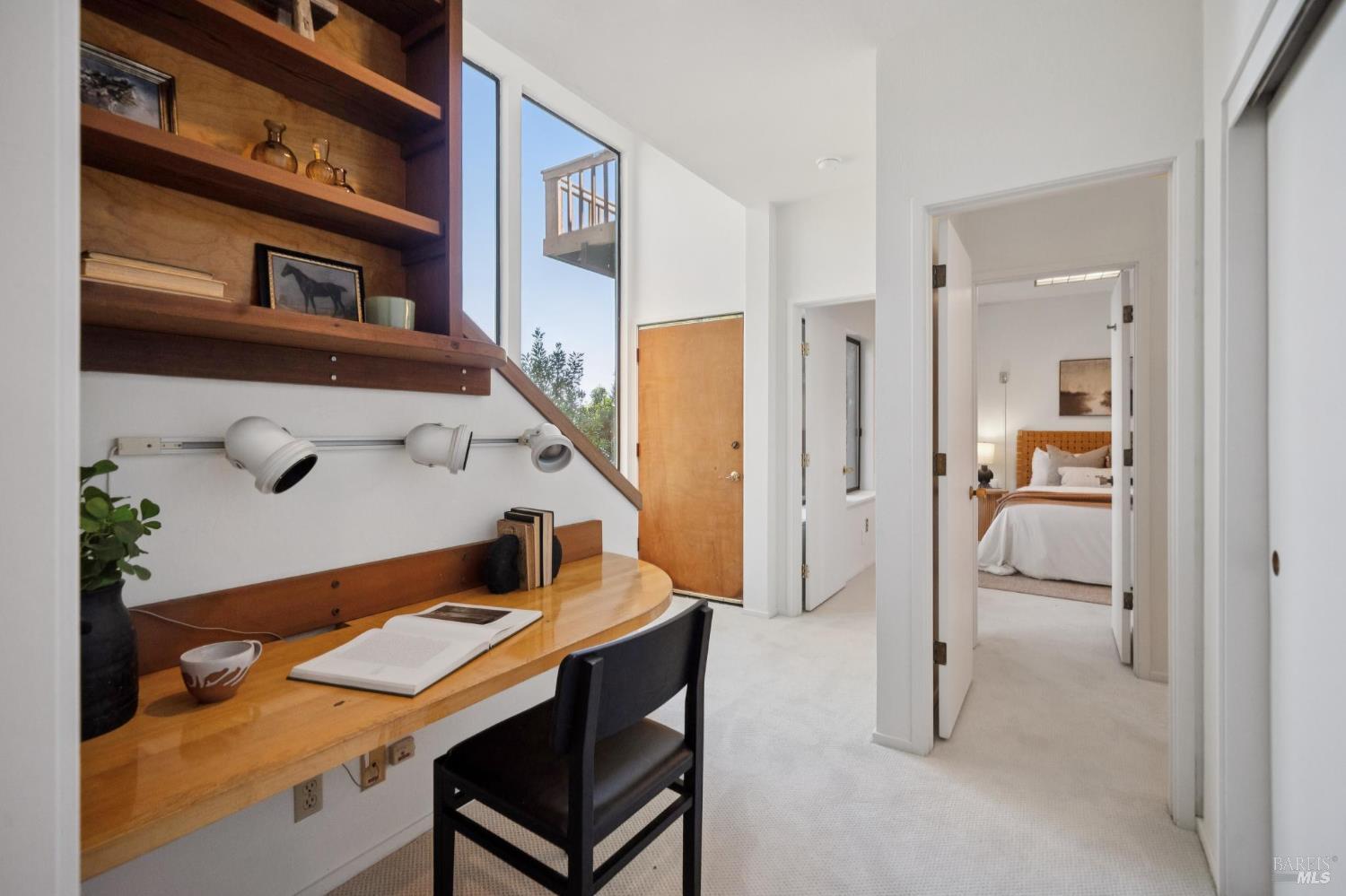 Offered for the first time ever since its original construction, an extraordinarily rare opportunity in Tiburon. From the moment you arrive, you'll appreciate the privacy and serenity of this tucked away location, no pass-through traffic, backing directly onto the expanse of Old St. Hilary's Open Space Preserve. Total Serenity yet only a 15-minute walk from the vibrant lifestyle of downtown Tiburon, with world-class dining, yacht clubs, the San Francisco and Angel Island ferries all within reach. The entry invites you inward to the heart of three thoughtfully designed levels. The open living area invites gathering, entertaining, and everyday delight, the kitchen, living and dining spaces oriented to the bay view, so that whether you're cooking, relaxing or hosting, the spectacular scenery remains your companion. The three-level configuration provides separation of spaces for privacy and flexibility, while optimizing light, view and indoor-outdoor connection. Feel the morning tide of light sweep through the kitchen as you prepare coffee. Watch sailboats drift past the large living-room windows, the water shimmering in the afternoon light. Retreat upstairs to your bedroom and meet the sunset through wide vistas over the Bay and Raccoon Straits.