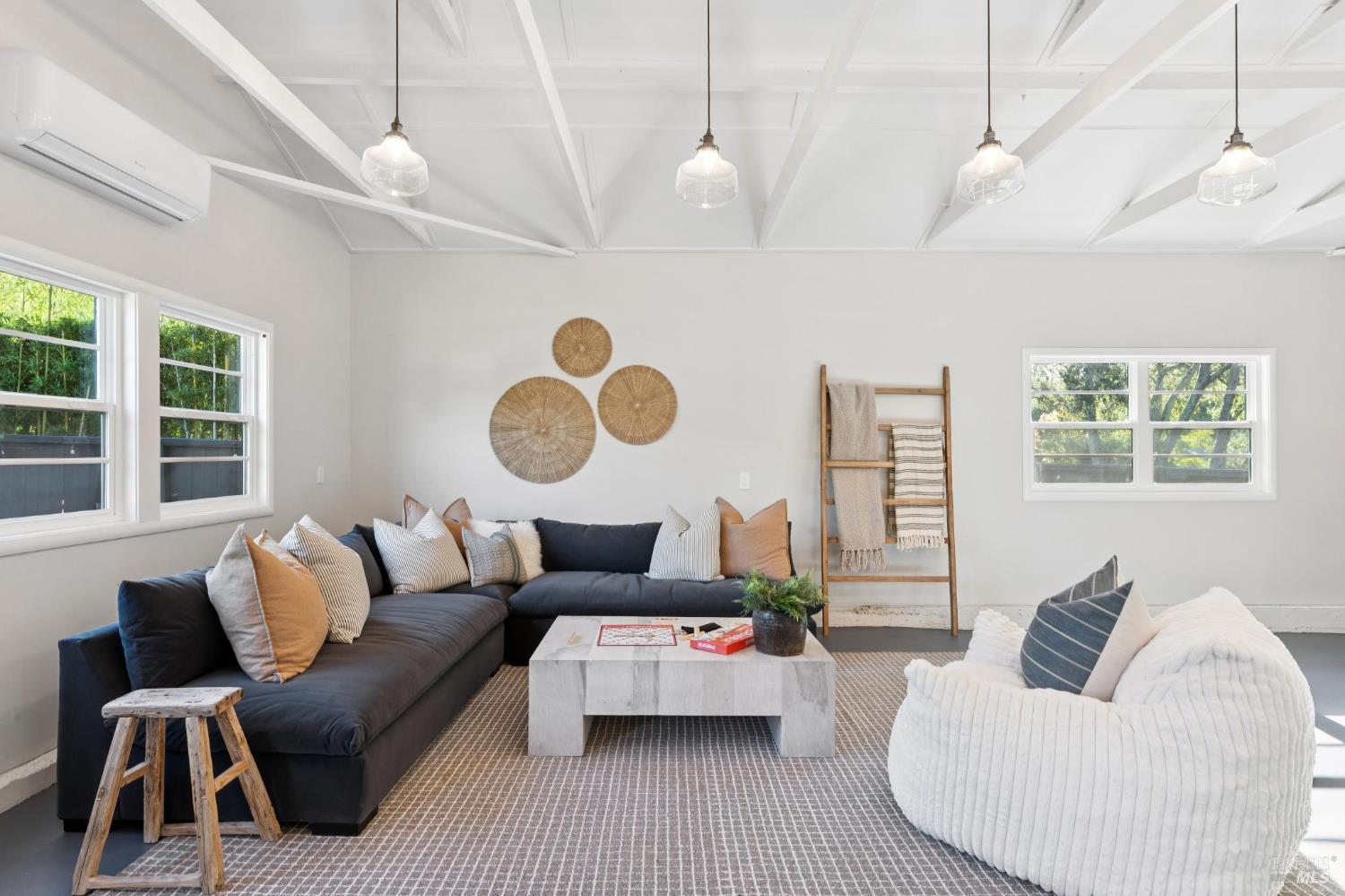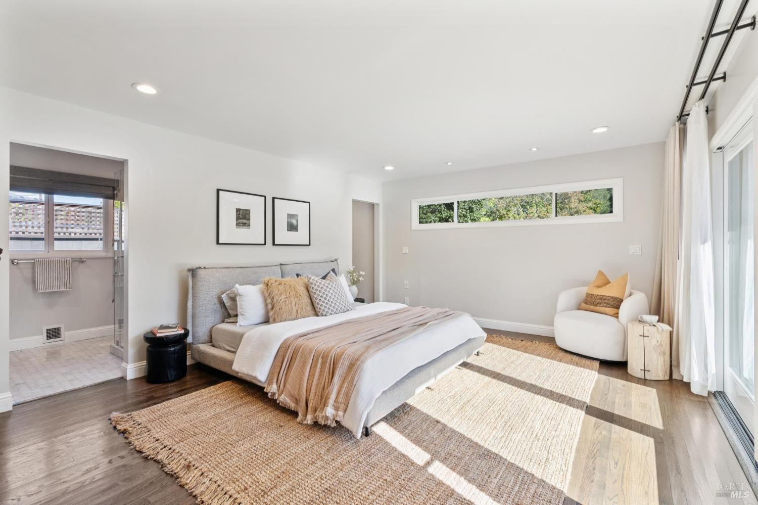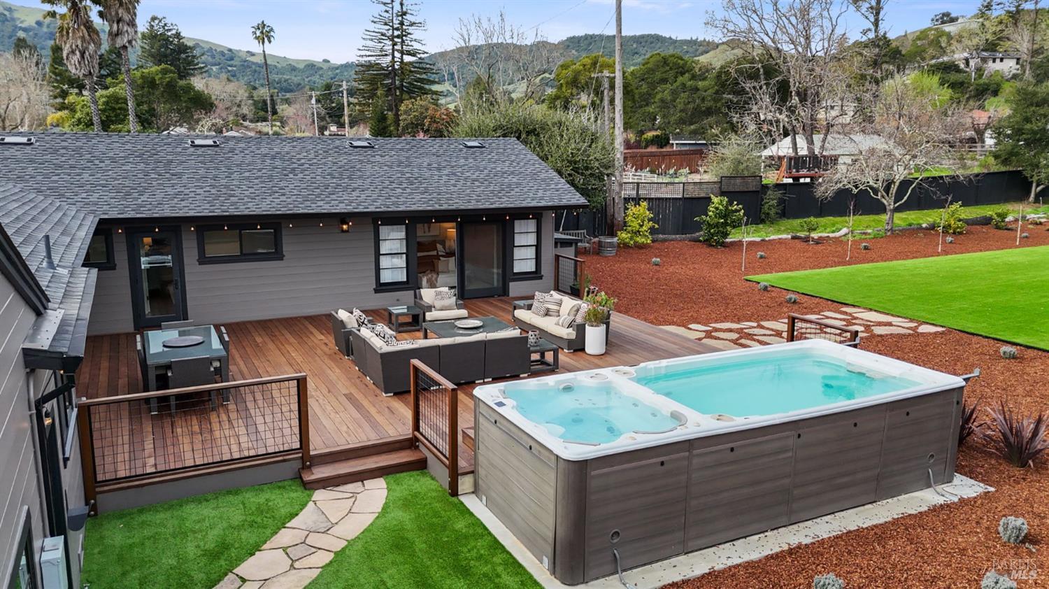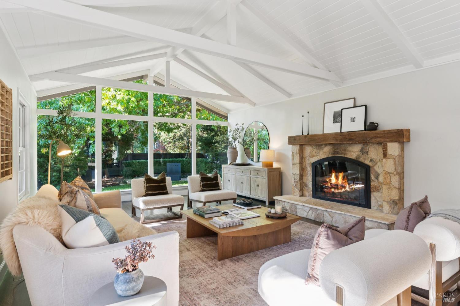 Set on over 3/4 acre of level, landscaped land, this magnificent single story home exemplifies Sleepy Hollow easy living! The home features 4 bedrooms and 3 full bathrooms, a gracious foyer, large Living Room with vaulted ceiling with exposed beams, a fireplace, and wall of windows, and Dining Room with French Doors to the deck, remodeled Kitchen, large office/pantry area and huge garage and family room. The primary suite also opens to the redwood deck and features an en-suite remodeled bathroom with double sinks, and a walk-in closet. There are an additional 3 bedrooms on this wing, and built-in cabinets along the central hallway for optimal storage. The family bathroom has also been recently remodeled. The home features a recently replaced roof, new copper plumbing and electrical wiring, new insulation under the home, and a whole house electrical upgrade to 400 amps (in progress). The home opens to the central 600 sq ft +/- redwood deck with yard beyond, featuring fruit trees, turf lawn and many areas for further improvement. Near the back of the property is an old horse barn. There is a top of the line above ground swimming pool and spa, and plenty of space on the land for a larger in-ground pool. Down the street from Sleepy Hollow Swim & Tennis Club, renowned schools.