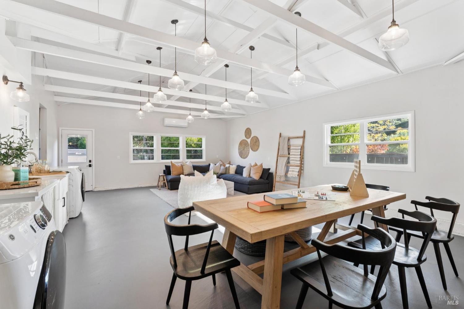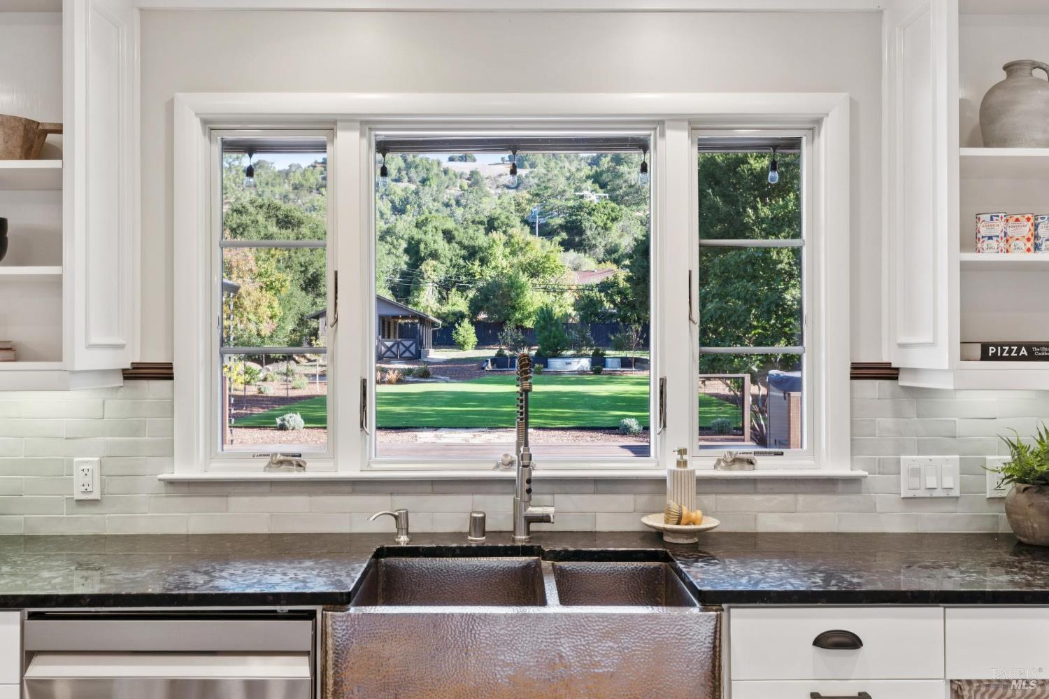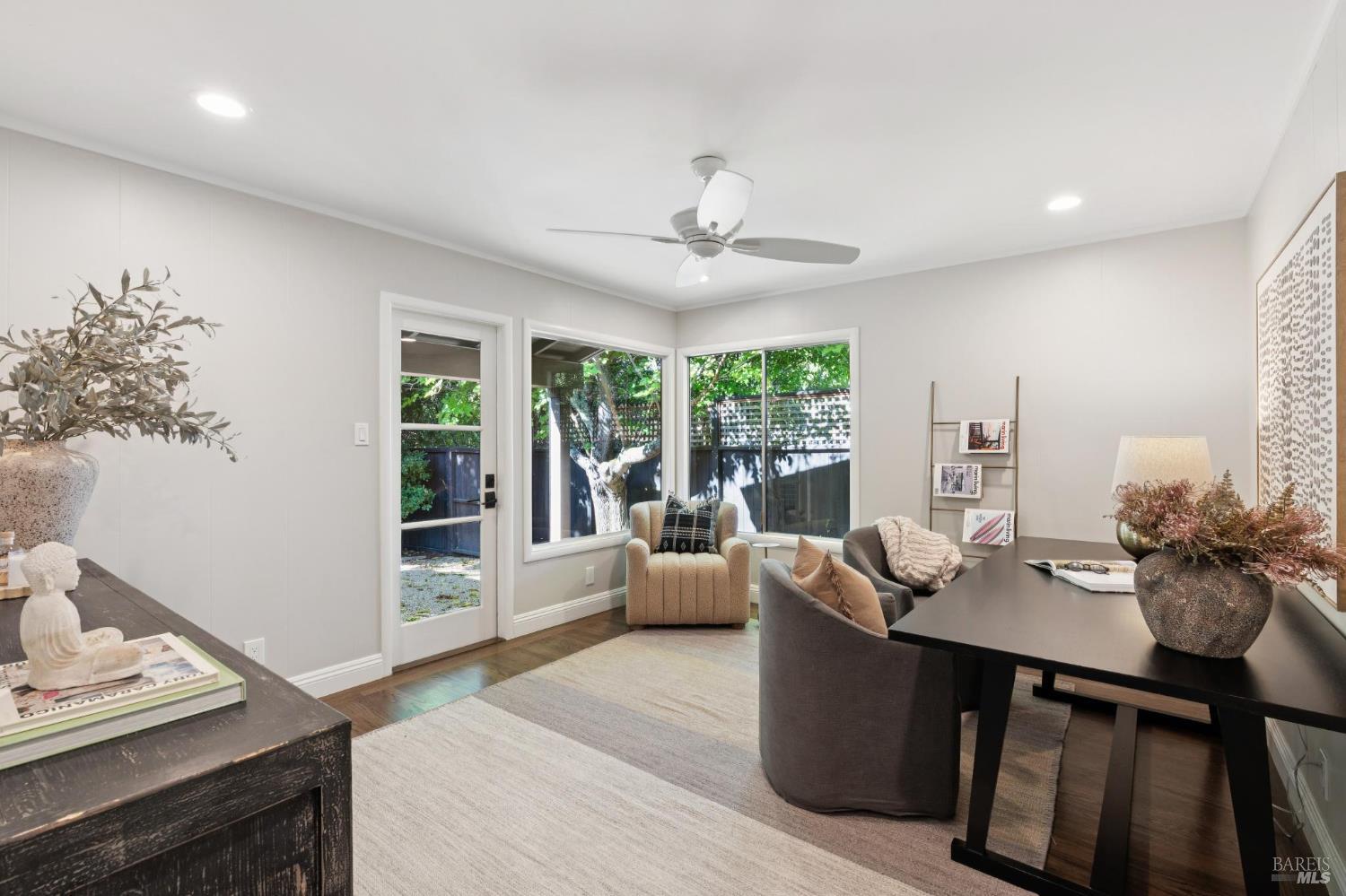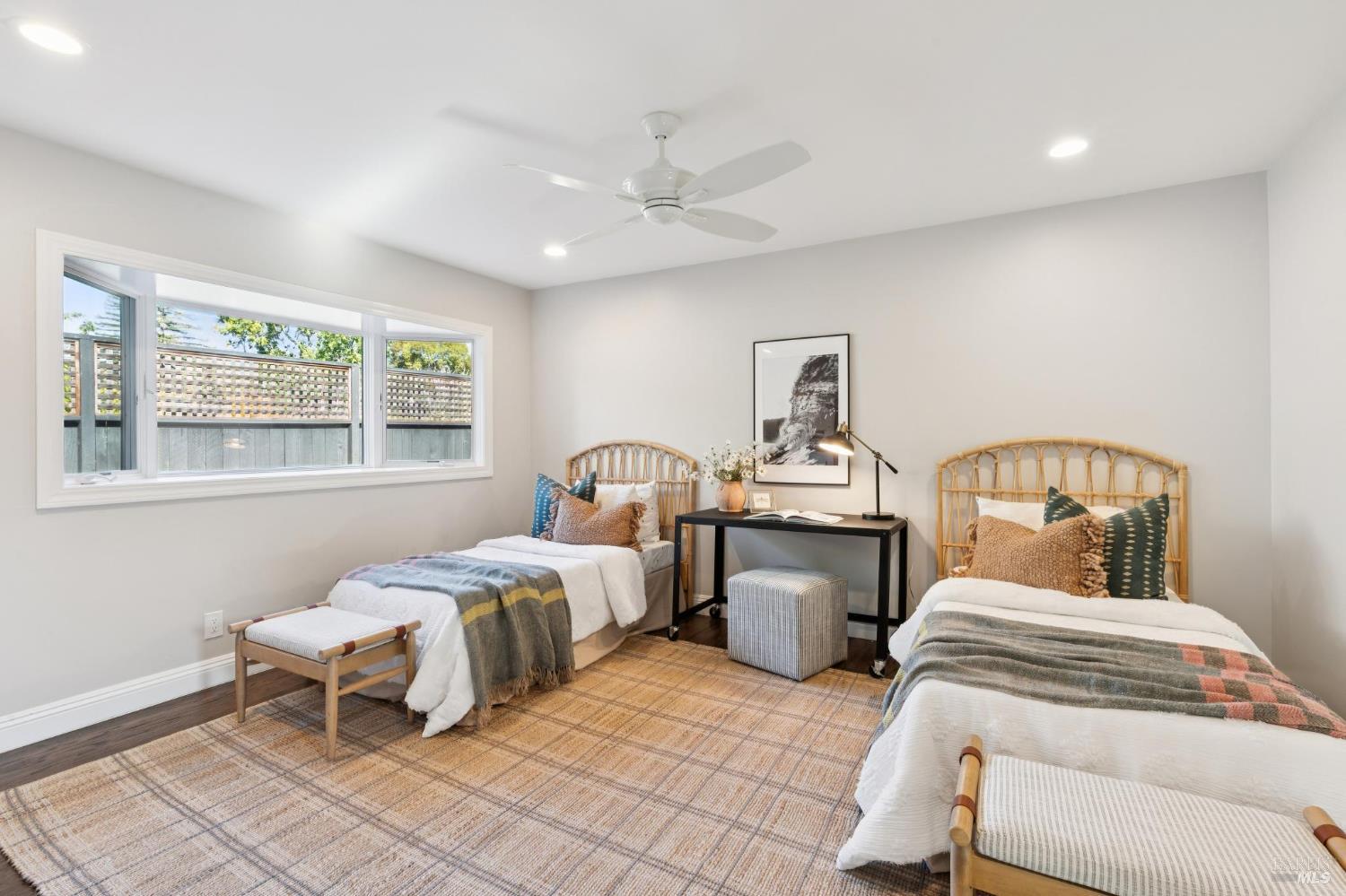 Set on over 3/4 acre of level, landscaped land, this magnificent single story home exemplifies Sleepy Hollow easy living! The home features 4 bedrooms and 3 full bathrooms, a gracious foyer, large Living Room with vaulted ceiling with exposed beams, a fireplace, and wall of windows, and Dining Room with French Doors to the deck, remodeled Kitchen, large office/pantry area and huge garage and family room. The primary suite also opens to the redwood deck and features an en-suite remodeled bathroom with double sinks, and a walk-in closet. There are an additional 3 bedrooms on this wing, and built-in cabinets along the central hallway for optimal storage. The family bathroom has also been recently remodeled. The home features a recently replaced roof, new copper plumbing and electrical wiring, new insulation under the home, and a whole house electrical upgrade to 400 amps (in progress). The home opens to the central 600 sq ft +/- redwood deck with yard beyond, featuring fruit trees, turf lawn and many areas for further improvement. Near the back of the property is an old horse barn. There is a top of the line above ground swimming pool and spa, and plenty of space on the land for a larger in-ground pool. Down the street from Sleepy Hollow Swim & Tennis Club, renowned schools.