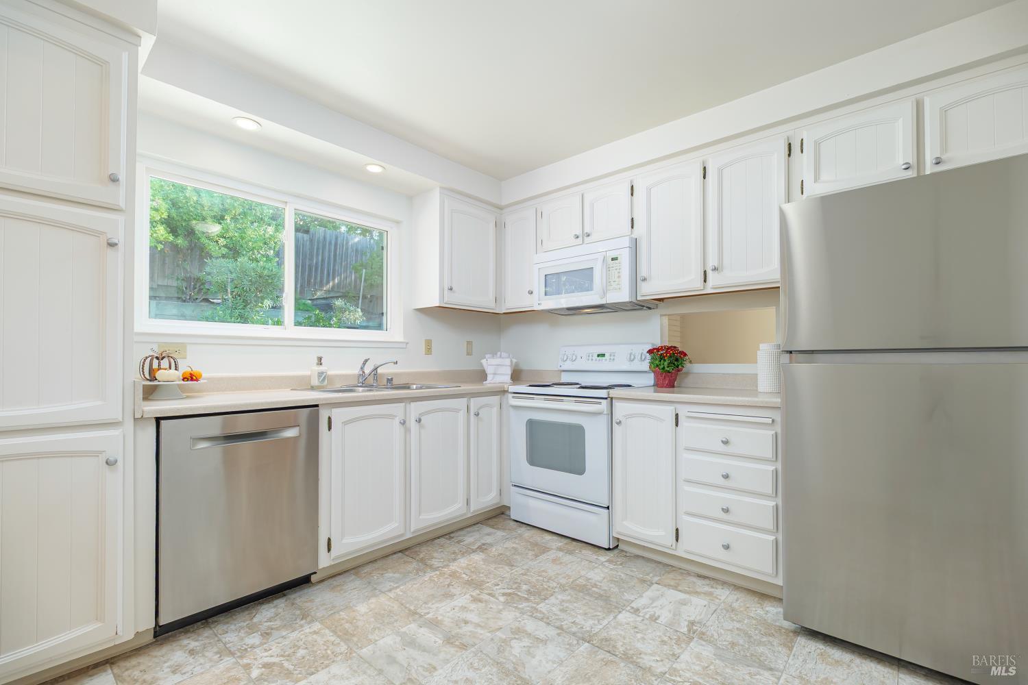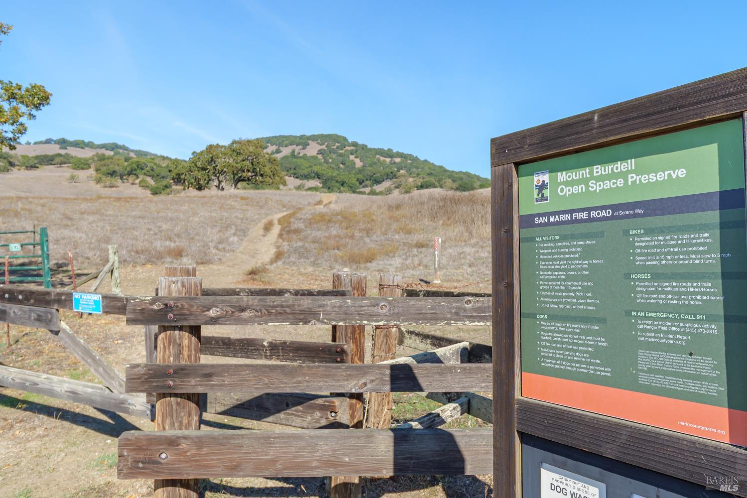 This inviting, contemporary home boasts soaring ceilings and is filled with natural light. Featuring beautiful hickory wood floors and dual pane windows. Enjoy the open living/dining room concept and separate family room with access to the private patio where you'll enjoy serene views of Mt Burdell. The eat-in kitchen boasts a newer stainless steel appliances and plenty of counter space. The primary suite has two closets including a spacious walk-in closet. Offering an inside laundry room with the washer and dryer included, a newer heater, A/C and attached 2 car garage. Nearby trail access to the beloved Mt Burdell Open Space Preserve! Minutes to Hwy 101, public transportation, shopping, excellent schools.