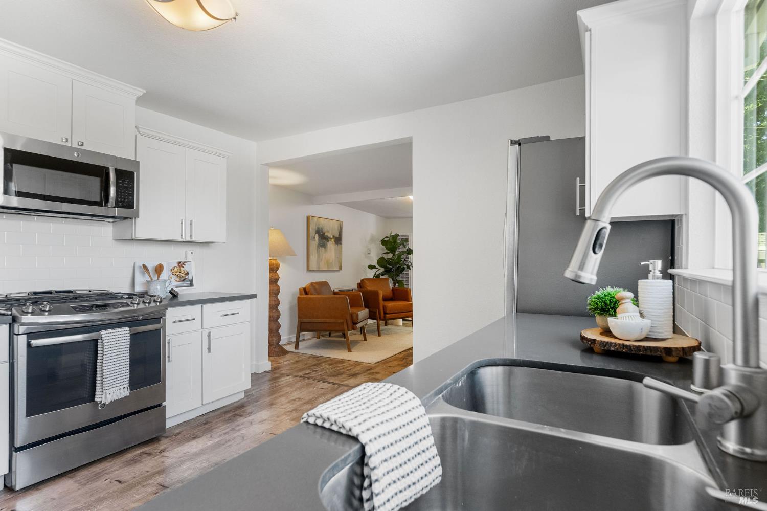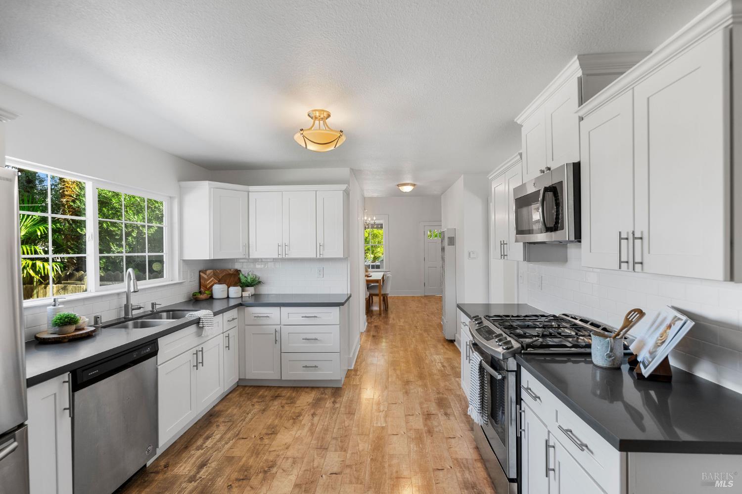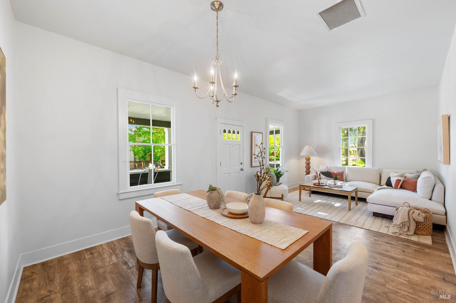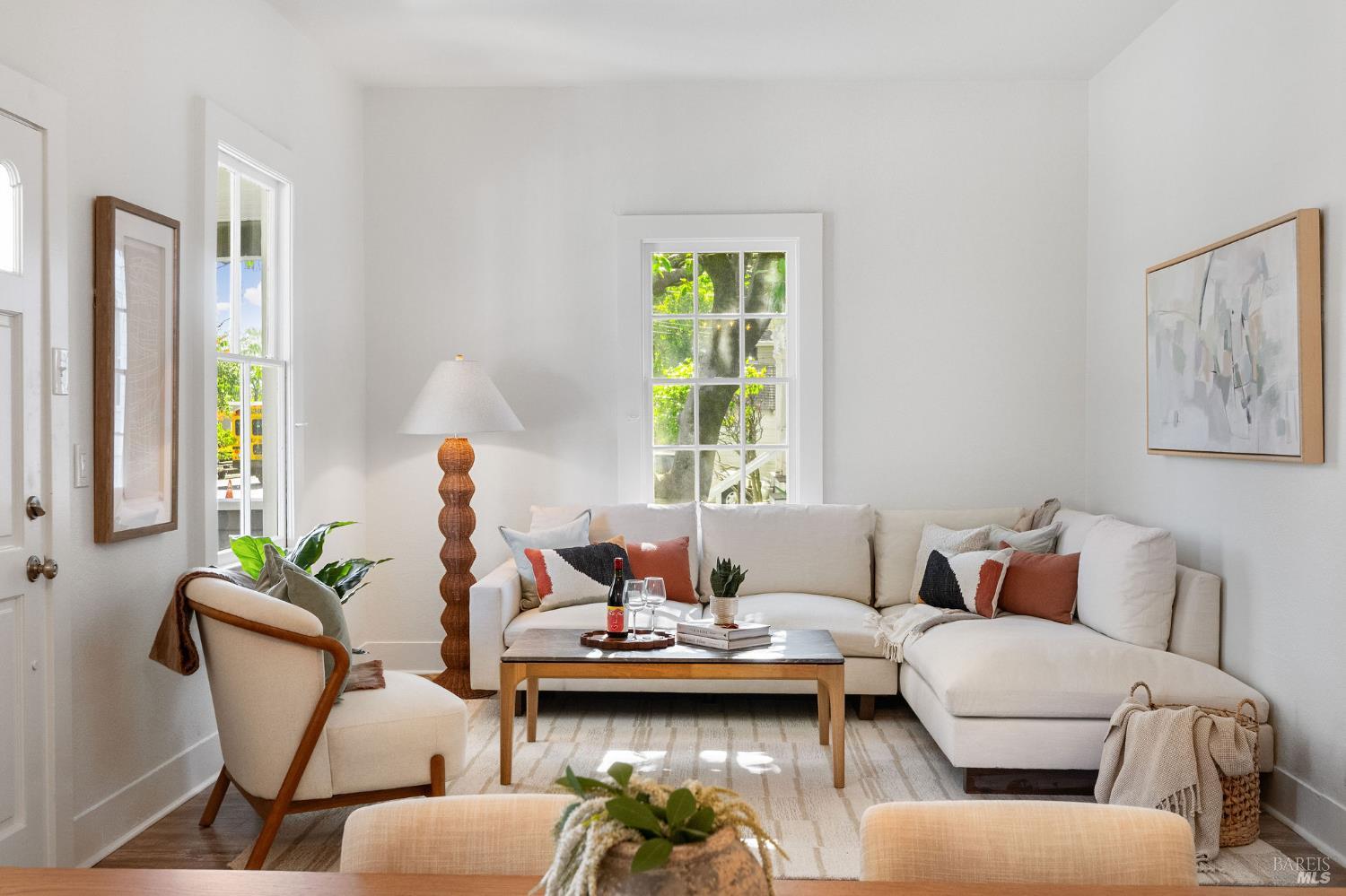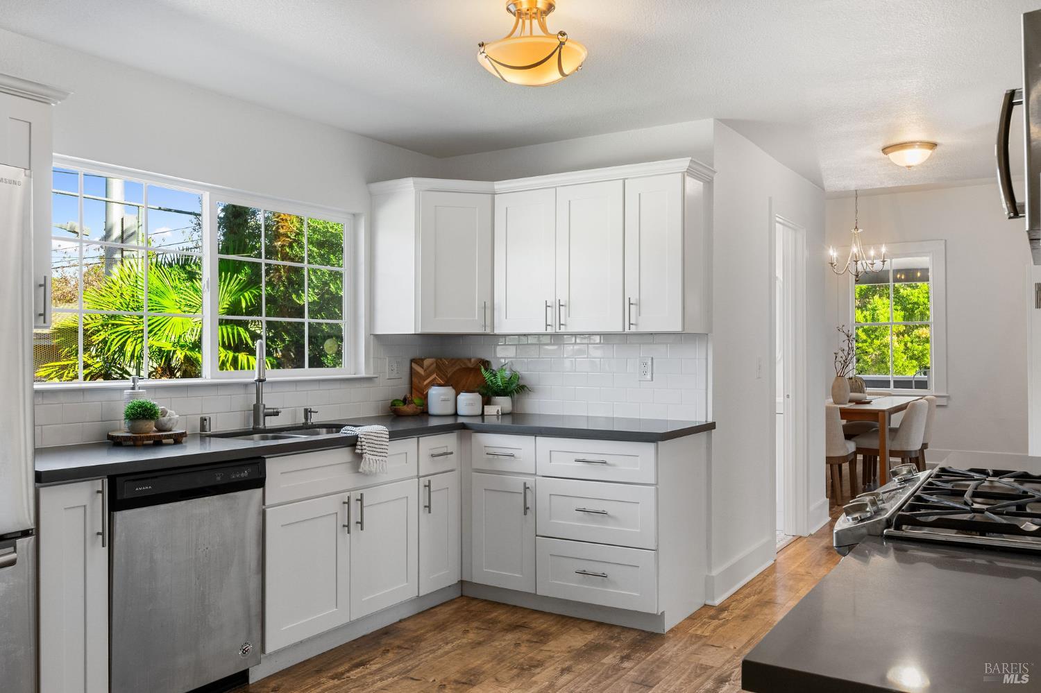 Built in 1910, this stunning Craftsman seamlessly blends vintage charm with modern sophistication, all just blocks from the heart of downtown Napa. With 3 bedrooms and 2 baths, this home has been refreshed with new paint and carpet while preserving its timeless soul. The spacious primary suite feels like a private retreat, featuring an airy bedroom, generous closets, and spa-like ensuite with quartz countertops and large walk-in tiled shower. Two additional bedrooms and a stylishly updated second bath offer comfort and flexibility for family or guests. The thoughtfully renovated kitchen shines with concrete counters, stainless steel appliances, abundant cabinetry, opening to the dining and living areas for effortless entertaining. Classic touches and an inviting front porch create warmth and authenticity throughout. Step outside to a private backyard oasis designed for Wine Country living. Multiple patio areas invite everything from morning coffee to sunset dinners, creating a relaxed sense of privacy. Set next to Kiwanis Park, it offers a natural extension of green space right at your doorstep. With its unbeatable location, quick walk to downtown, timeless architecture, and enchanting outdoor spaces, this home is ideal as a full-time residence or a perfect Napa getaway.