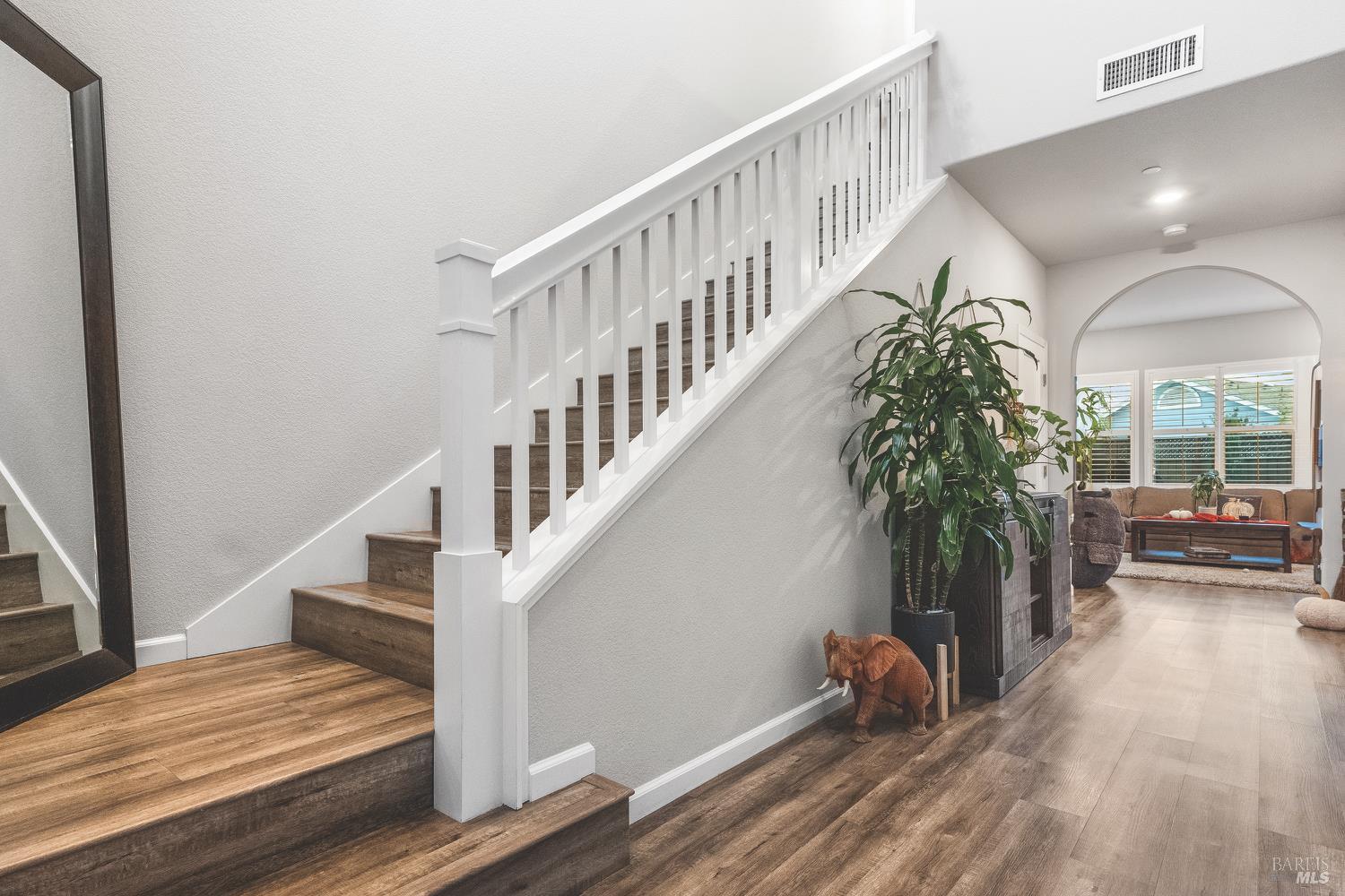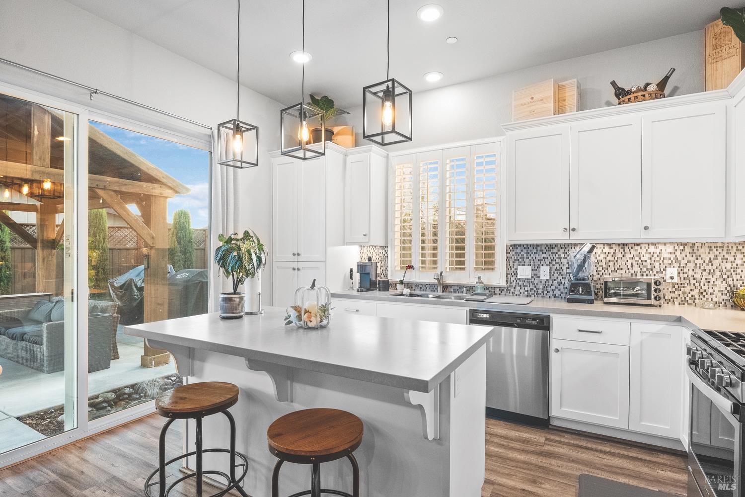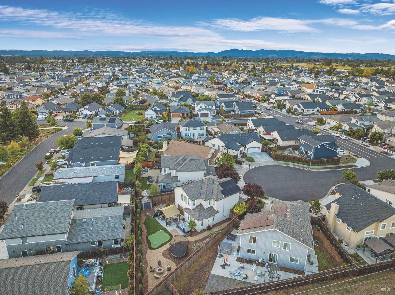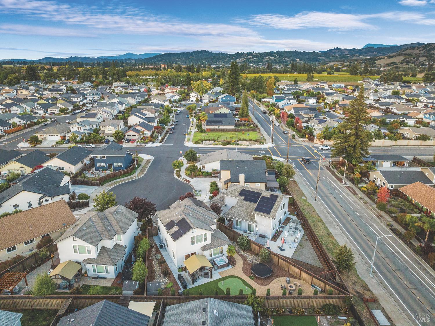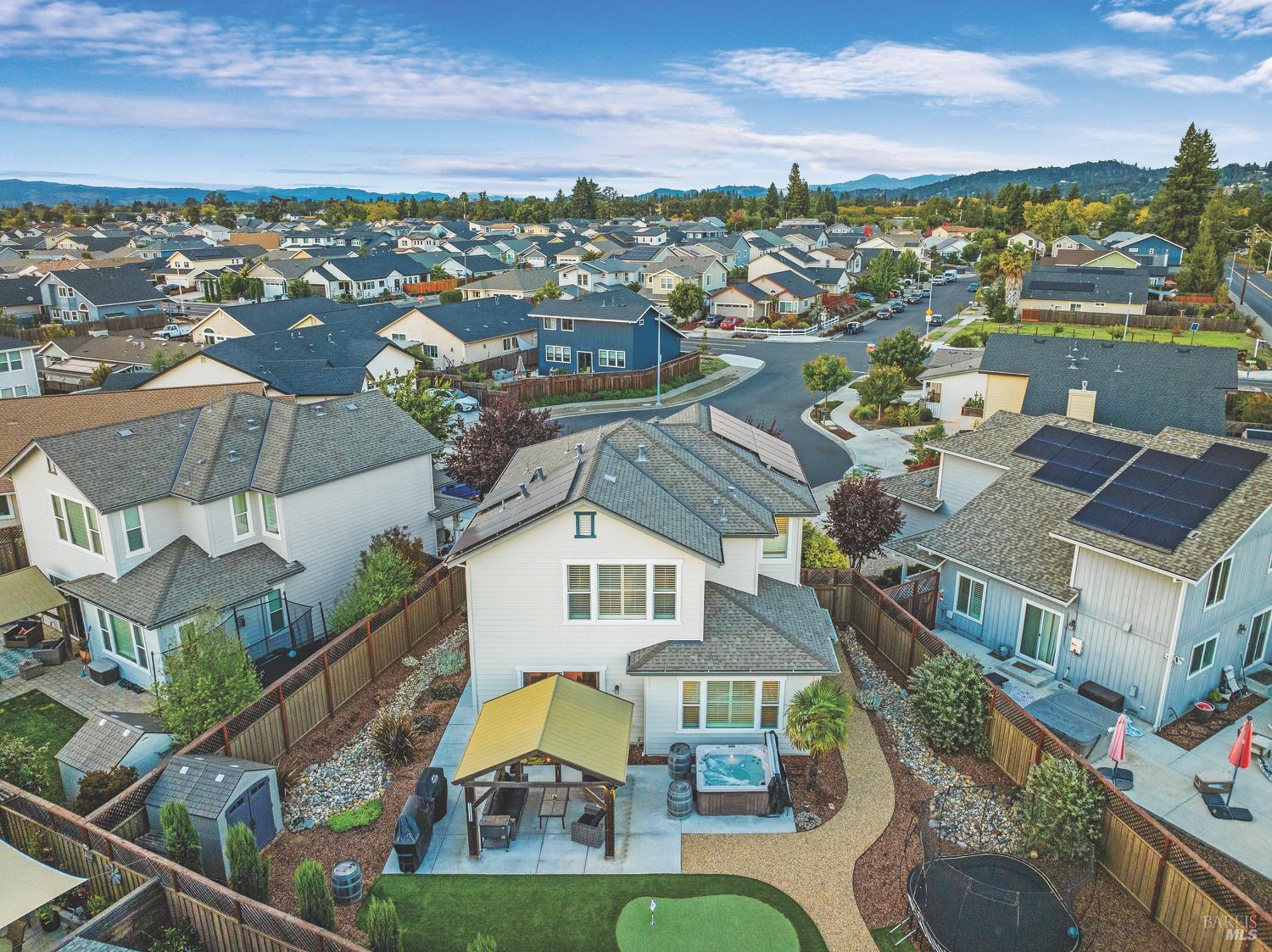 Your Coffey Park Oasis Awaits! Cheerful and homey vibes greet you upon entering 3686 Hillary Court. Filled with an abundance of natural light the great room showcases a comfortable fireplace setting and cozy living area. The adjoining dining room connects to the stylish kitchen. With quartz countertops, stainless steel appliances, a generous island, and seamless indoor-outdoor flow this is the perfect setting for gatherings, big and small. The main level features a versatile den or 4th bedroom with an adjacent full bath offering flexibility for guests, office, or multigenerational living. Upstairs, are three bedrooms including the spacious primary suite which feels like a true retreat with a spa-inspired bath featuring a dual vanity, radiant heat, soaking tub, a walk-in shower and closet. A thoughtfully designed yard blends relaxation and recreation. Entertain under the pergola, gather around the fire pit, practice your short game on the putting green, or unwind in the hot tub in complete privacy. Solar, an EV charger, garage storage, and an interior temp controlled wine cellar add to the home's efficiency and convenience. Ideally located near Coffey Park, shopping, Smart Rail, and major commute routes this is where style meets substance, and every day feels like paradise!