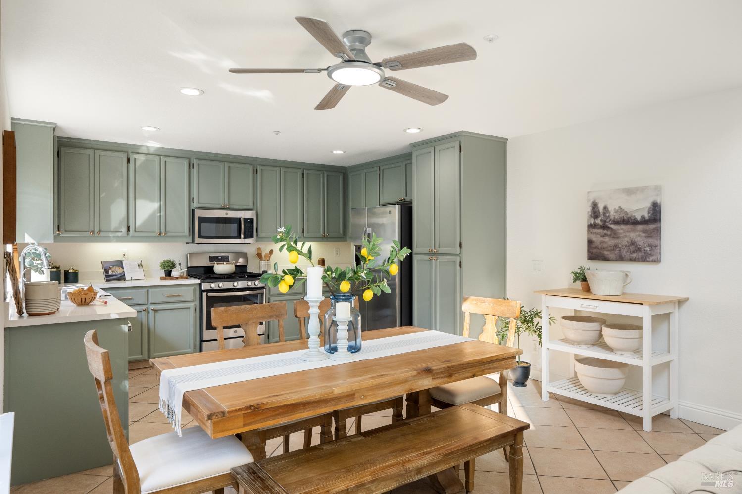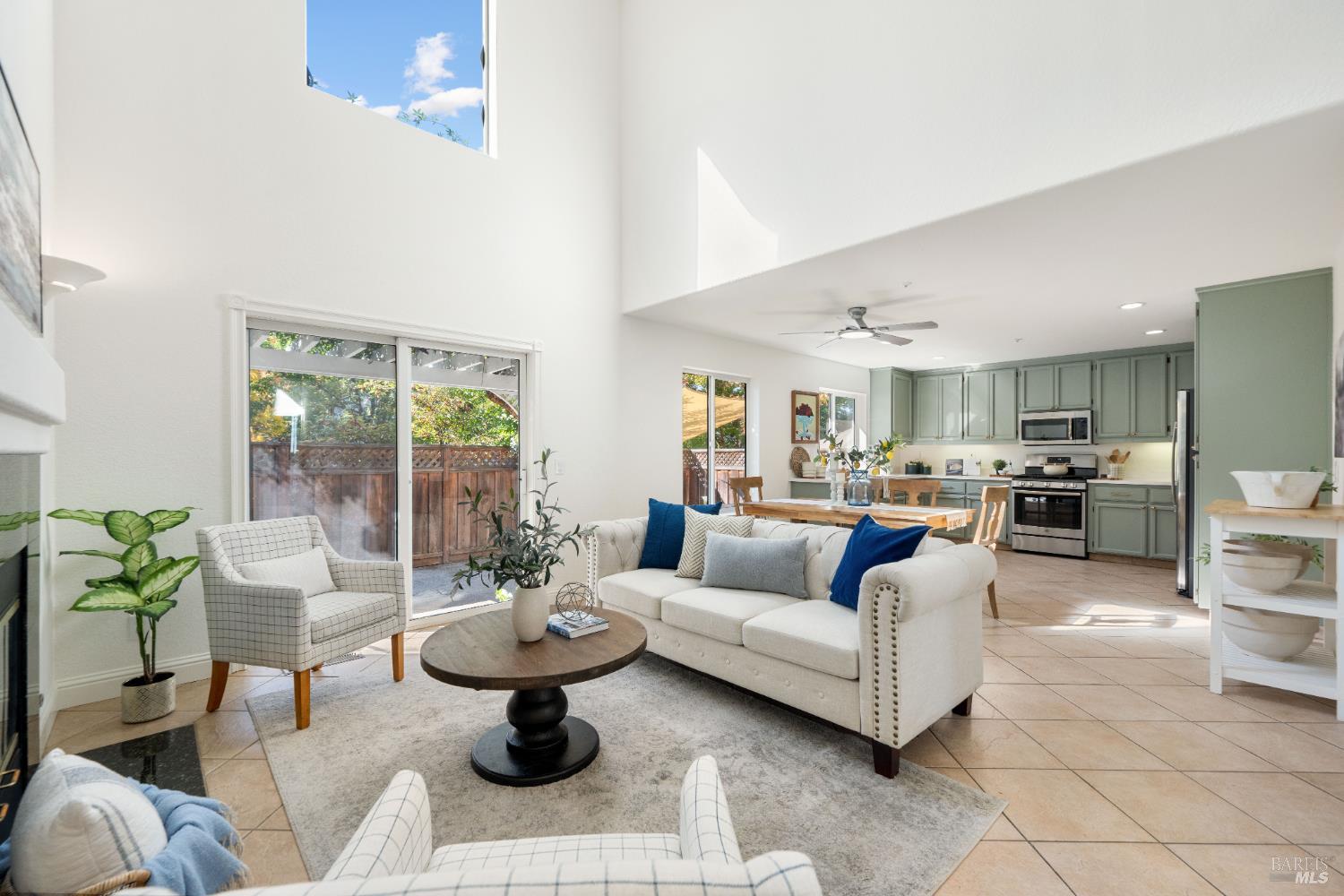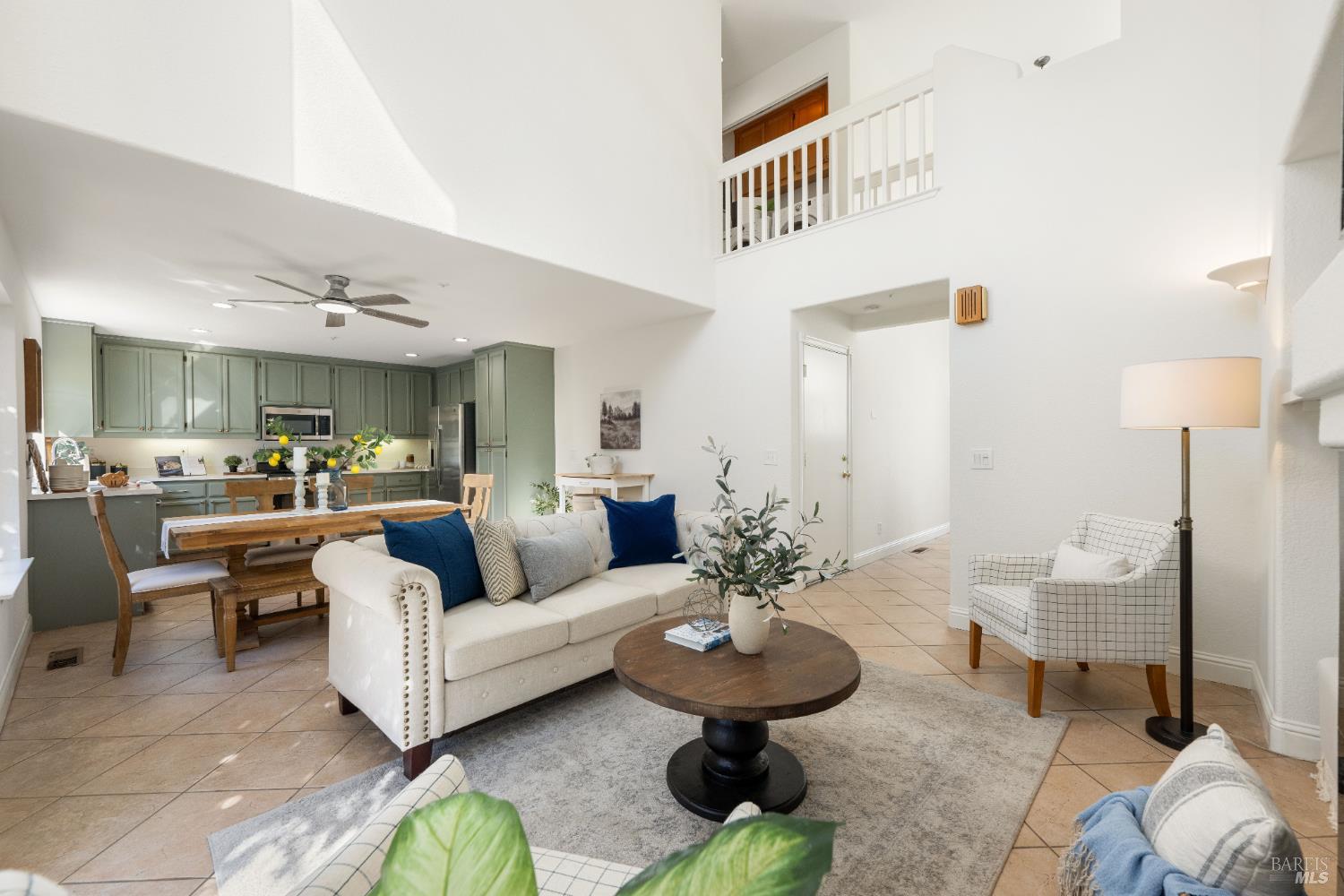 Nestled in the heart of North Napa, this stunning neo-eclectic home showcases timeless style with its beautiful Mediterranean tile roof and thoughtful updates throughout. Step inside to a bright living room with soaring ceilings centered around a cozy gas log fireplace. The open, updated kitchen features new Venata quartz countertops, sage green cabinetry with elegant brass hardware, a stainless steel sink, and premium stainless steel appliancesincluding a gas burner oven. Hardwood floors lead you upstairs, where a dramatic catwalk overlooks a large picture window framing serene neighborhood views. The spacious primary suite boasts vaulted ceilings, a generous walk-in closet, and an ensuite bath. Additional bedrooms are comfortably sized, each with fresh new carpeting. Enjoy the unbeatable North Napa lifestylejust steps from Osprey Fish Market, Il Posto Italian Restaurant, pickleball and tennis courts, and the Napa Vine Trail for biking, jogging, or a leisurely stroll. You're also minutes from Upvalley wineries and just about an hour to San Franciscoall with no HOA. Now is the perfect time to make this beautiful home yoursjust in time to host your Thanksgiving feast and to gather around the Christmas tree for a cozy holiday morning in your new North Napa home.