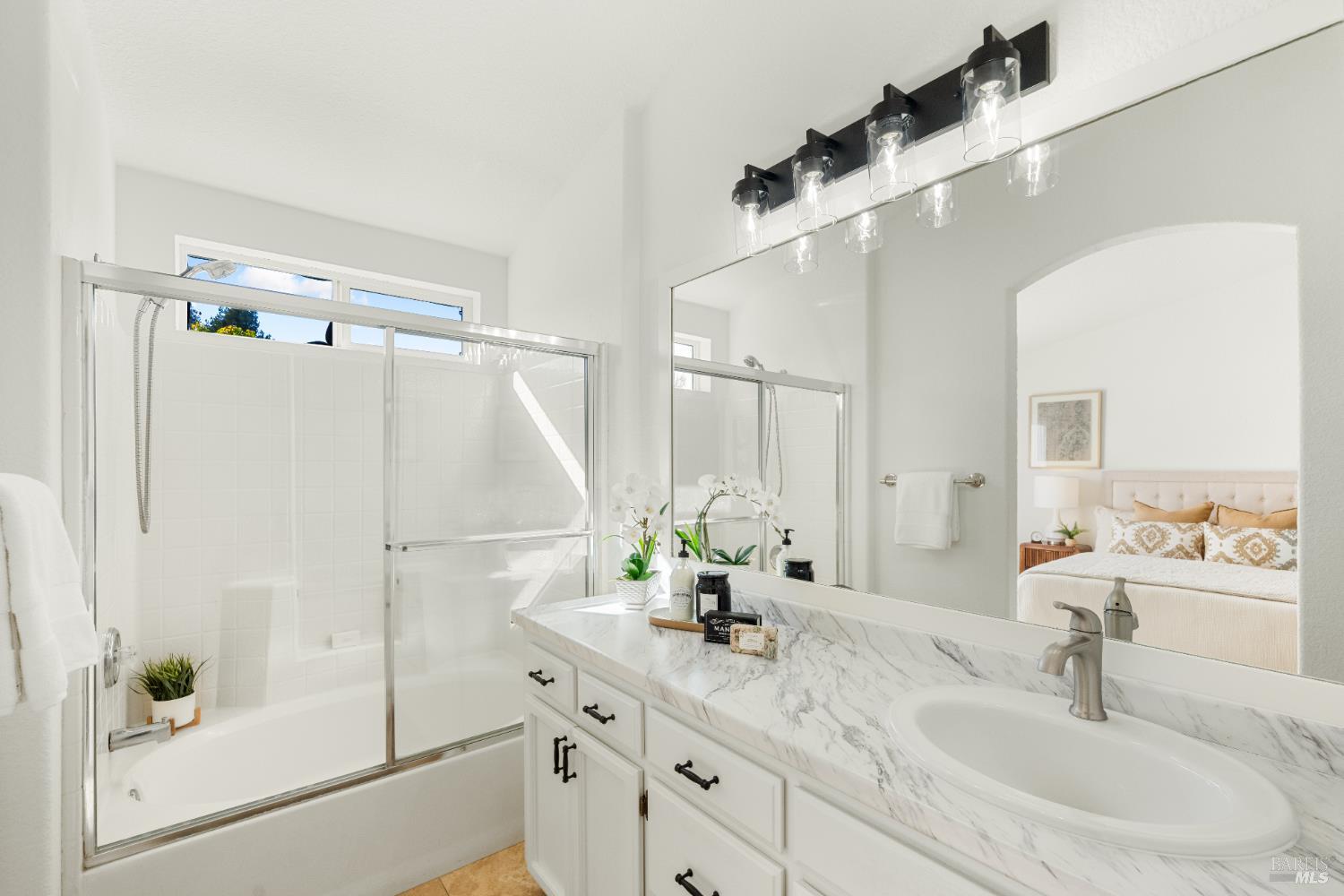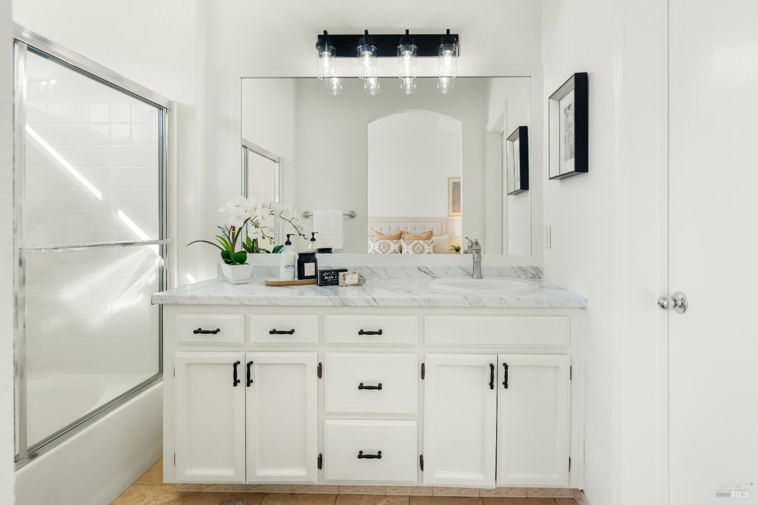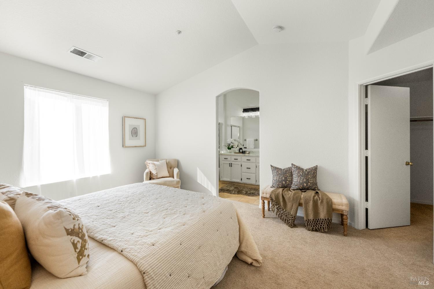 Nestled in the heart of North Napa, this stunning neo-eclectic home showcases timeless style with its beautiful Mediterranean tile roof and thoughtful updates throughout. Step inside to a bright living room with soaring ceilings centered around a cozy gas log fireplace. The open, updated kitchen features new Venata quartz countertops, sage green cabinetry with elegant brass hardware, a stainless steel sink, and premium stainless steel appliancesincluding a gas burner oven. Hardwood floors lead you upstairs, where a dramatic catwalk overlooks a large picture window framing serene neighborhood views. The spacious primary suite boasts vaulted ceilings, a generous walk-in closet, and an ensuite bath. Additional bedrooms are comfortably sized, each with fresh new carpeting. Enjoy the unbeatable North Napa lifestylejust steps from Osprey Fish Market, Il Posto Italian Restaurant, pickleball and tennis courts, and the Napa Vine Trail for biking, jogging, or a leisurely stroll. You're also minutes from Upvalley wineries and just about an hour to San Franciscoall with no HOA. Now is the perfect time to make this beautiful home yoursjust in time to host your Thanksgiving feast and to gather around the Christmas tree for a cozy holiday morning in your new North Napa home.