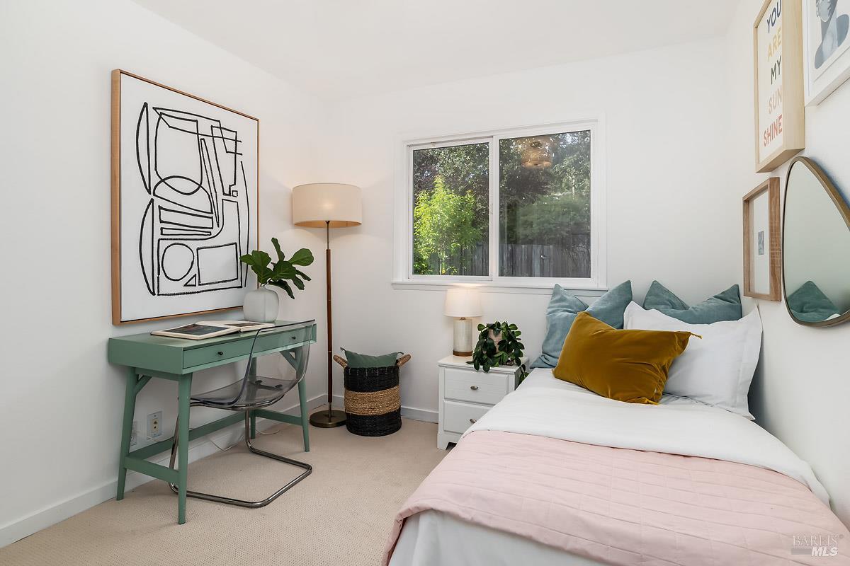 Tucked away in the welcoming San Rafael Meadows neighborhood, this charming single-level home perfectly blends comfort, character, and convenience. Featuring 3 bedrooms and 1 bathroom across 1,073 square feet, it offers a bright and open layout designed for easy living. The spacious living and dining combo is filled with natural light, highlighted by warm wood floors and a cozy gas fireplace that creates an inviting atmosphere. The kitchen offers sleek quartz countertops, ample cabinet storage, and a sunny breakfast area, an ideal spot to enjoy your morning coffee. Each bedroom is a comfortable size with plush new carpet and plenty of closet space, while the bathroom features a clean shower-over-tub combo. Outside, enjoy a freshly landscaped backyard with a lush new lawn, a beautiful flagstone patio, and multiple areas for entertaining, play, or simply relaxing. The inviting front porch and two-car garage add both charm and practicality. With easy access to transportation services, great restaurants, and the lively local farmers market, this home offers the perfect blend of warmth, comfort, and convenient San Rafael living.