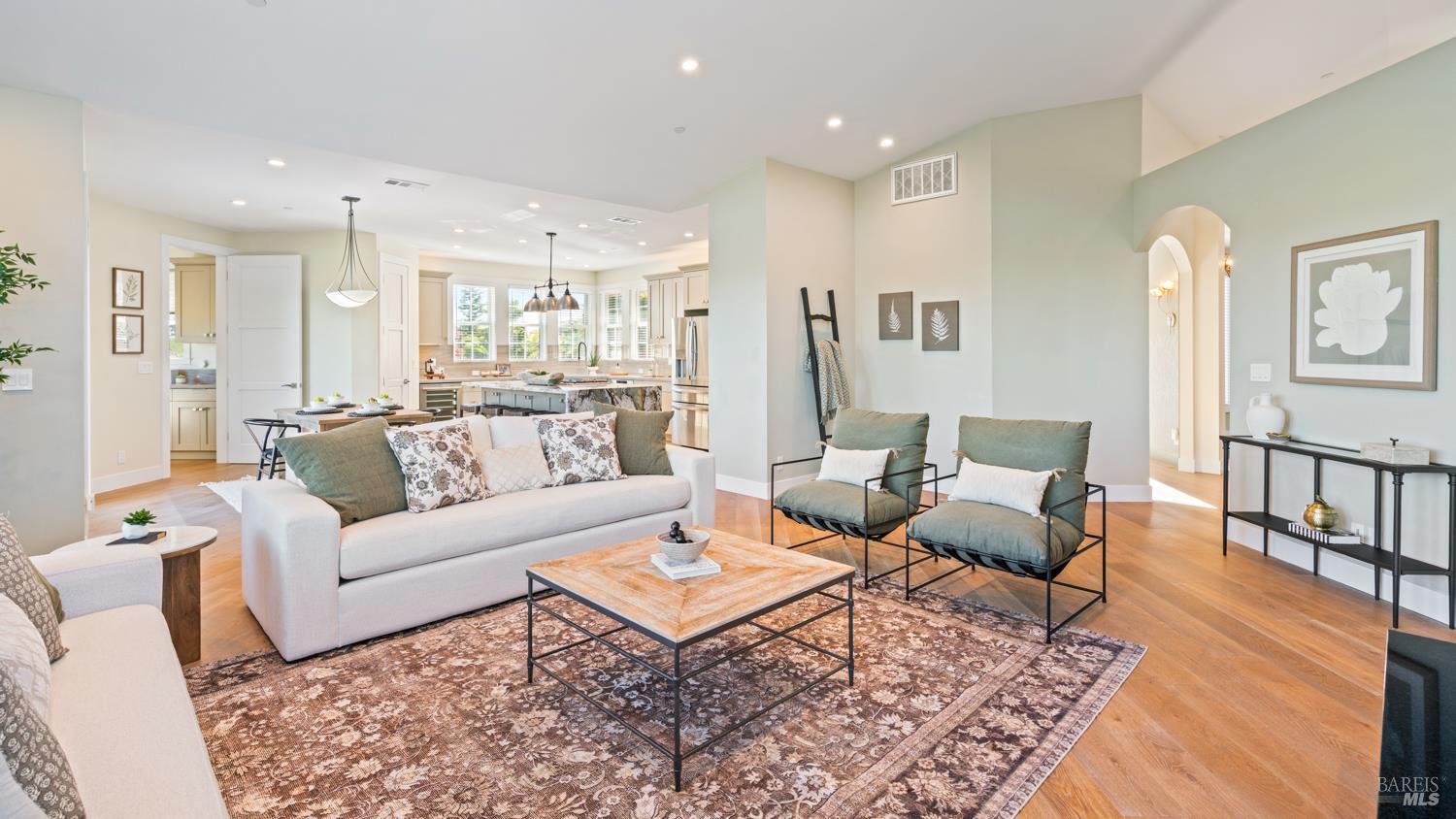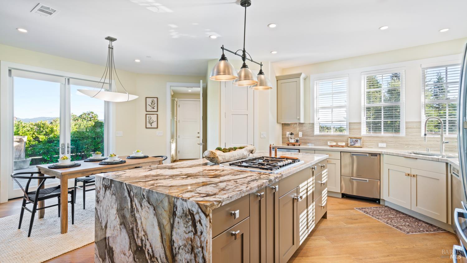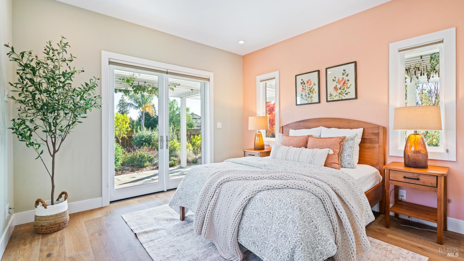 Welcome to this beautifully appointed single story residence in the highly sought-after Fountaingrove community. Set on a generous .50 acre lot, this 4 bedroom, 2.5 bathroom home combines luxury, functionality, and elegant design in a stunning Wine Country setting. A tranquil courtyard entry leads you into an airy, light-filled interior with high ceilings and hardwood flooring throughout. Many windows flood every room with natural light, creating a warm and inviting atmosphere. Ideal for both entertaining and everyday living, the home features formal living and dining rooms, as well as a spacious family room with a cozy fireplace. At the heart of the home is a chef's dream kitchen, complete with a striking granite waterfall island, and stainless steel appliances, perfect for entertaining in style. Retreat to the private primary suite where you'll find direct access to an outdoor hot tub and open-air shower - your personal spa oasis under the stars. This home also includes a 3-car garage, a beautiful mature landscaped yard with mountain views and multiple outdoor areas for relaxing or hosting guests. This Fountaingrove gem offers the perfect blend of comfort, sophistication, and Wine Country charm-all on a peaceful, half acre setting.