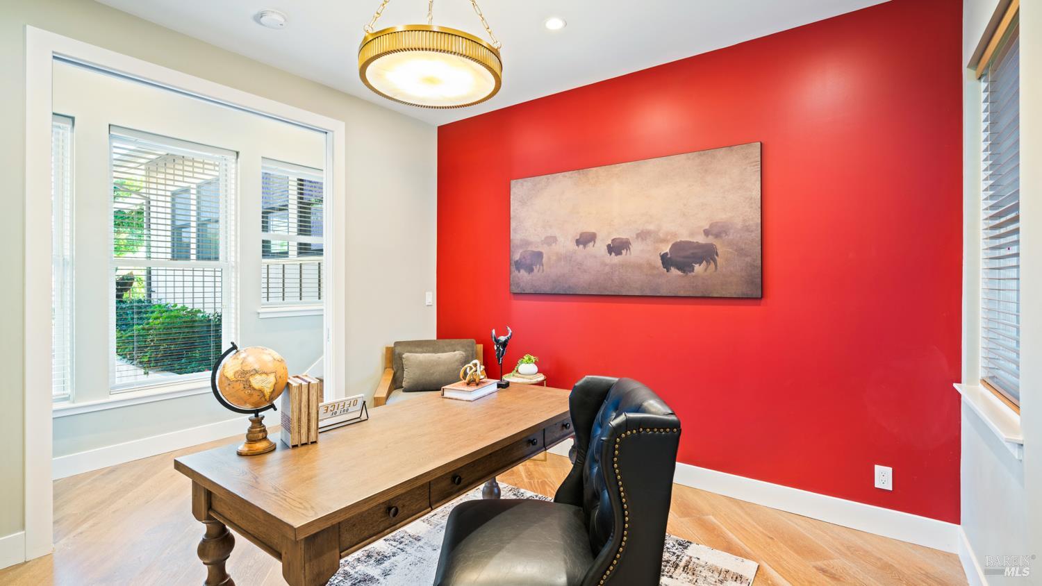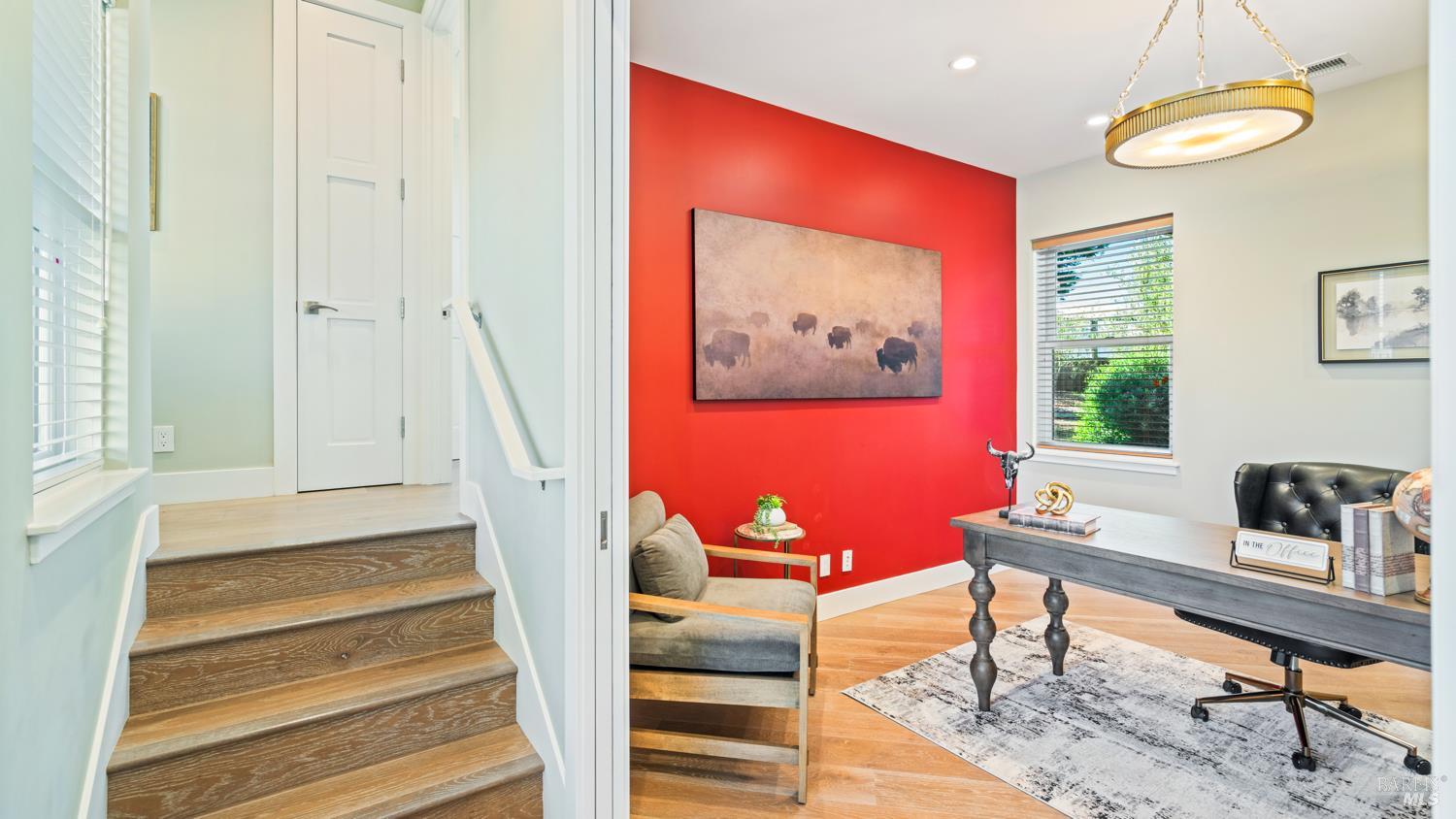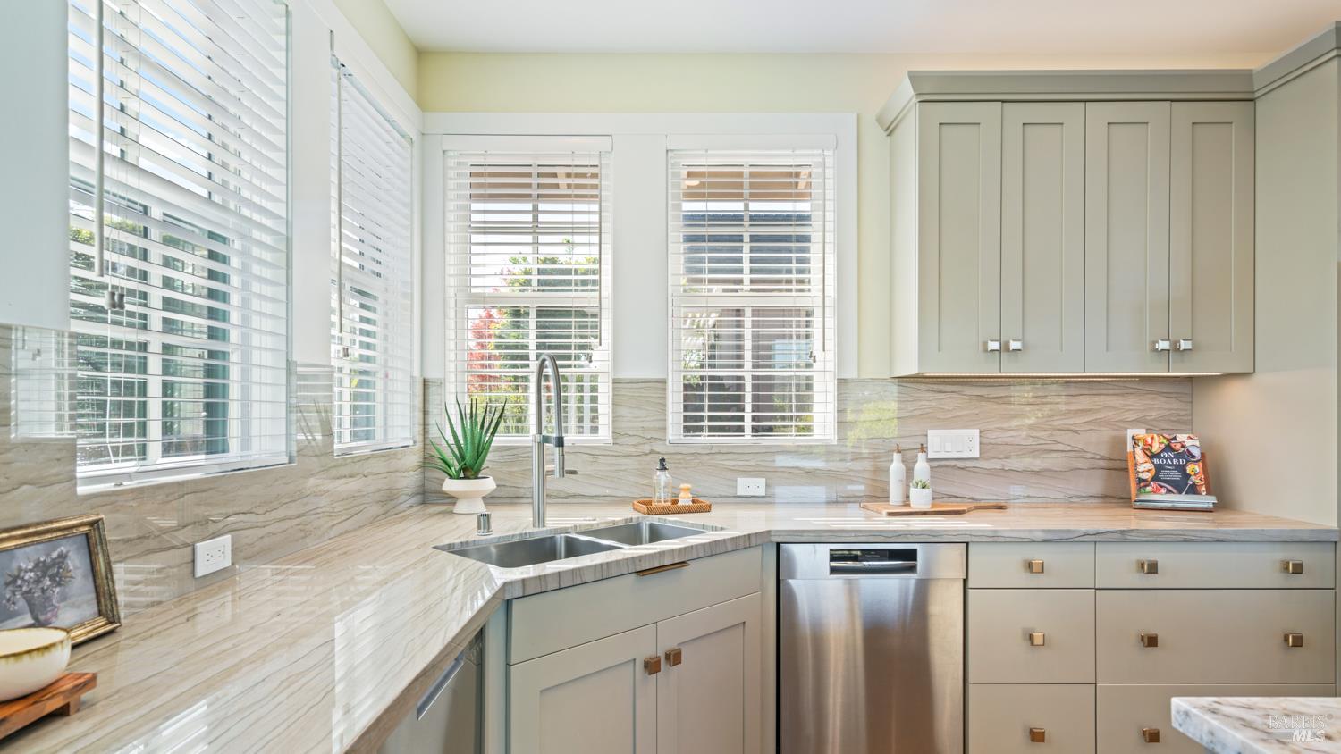 Welcome to this beautifully appointed single story residence in the highly sought-after Fountaingrove community. Set on a generous .50 acre lot, this 4 bedroom, 2.5 bathroom home combines luxury, functionality, and elegant design in a stunning Wine Country setting. A tranquil courtyard entry leads you into an airy, light-filled interior with high ceilings and hardwood flooring throughout. Many windows flood every room with natural light, creating a warm and inviting atmosphere. Ideal for both entertaining and everyday living, the home features formal living and dining rooms, as well as a spacious family room with a cozy fireplace. At the heart of the home is a chef's dream kitchen, complete with a striking granite waterfall island, and stainless steel appliances, perfect for entertaining in style. Retreat to the private primary suite where you'll find direct access to an outdoor hot tub and open-air shower - your personal spa oasis under the stars. This home also includes a 3-car garage, a beautiful mature landscaped yard with mountain views and multiple outdoor areas for relaxing or hosting guests. This Fountaingrove gem offers the perfect blend of comfort, sophistication, and Wine Country charm-all on a peaceful, half acre setting.