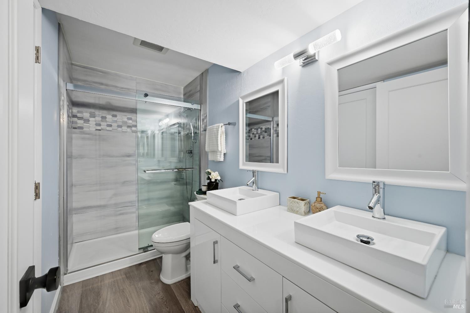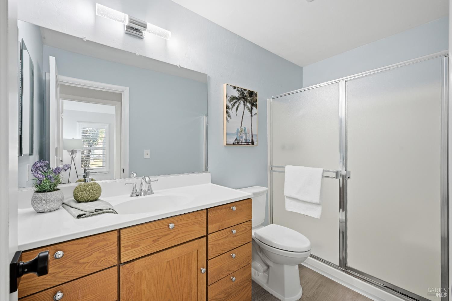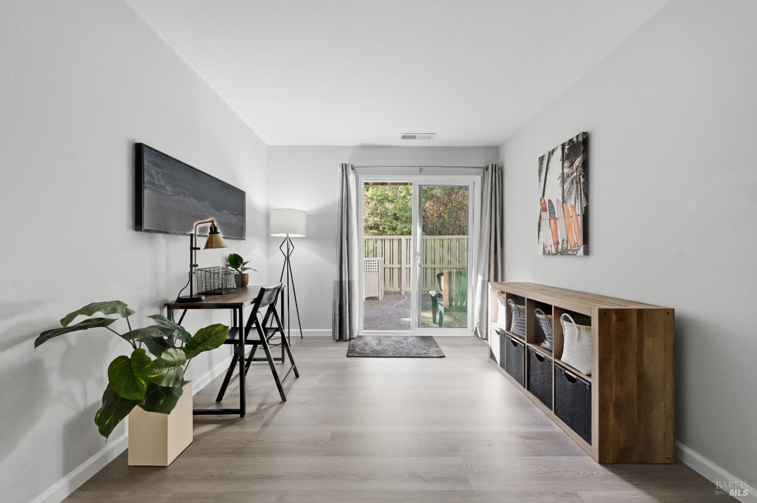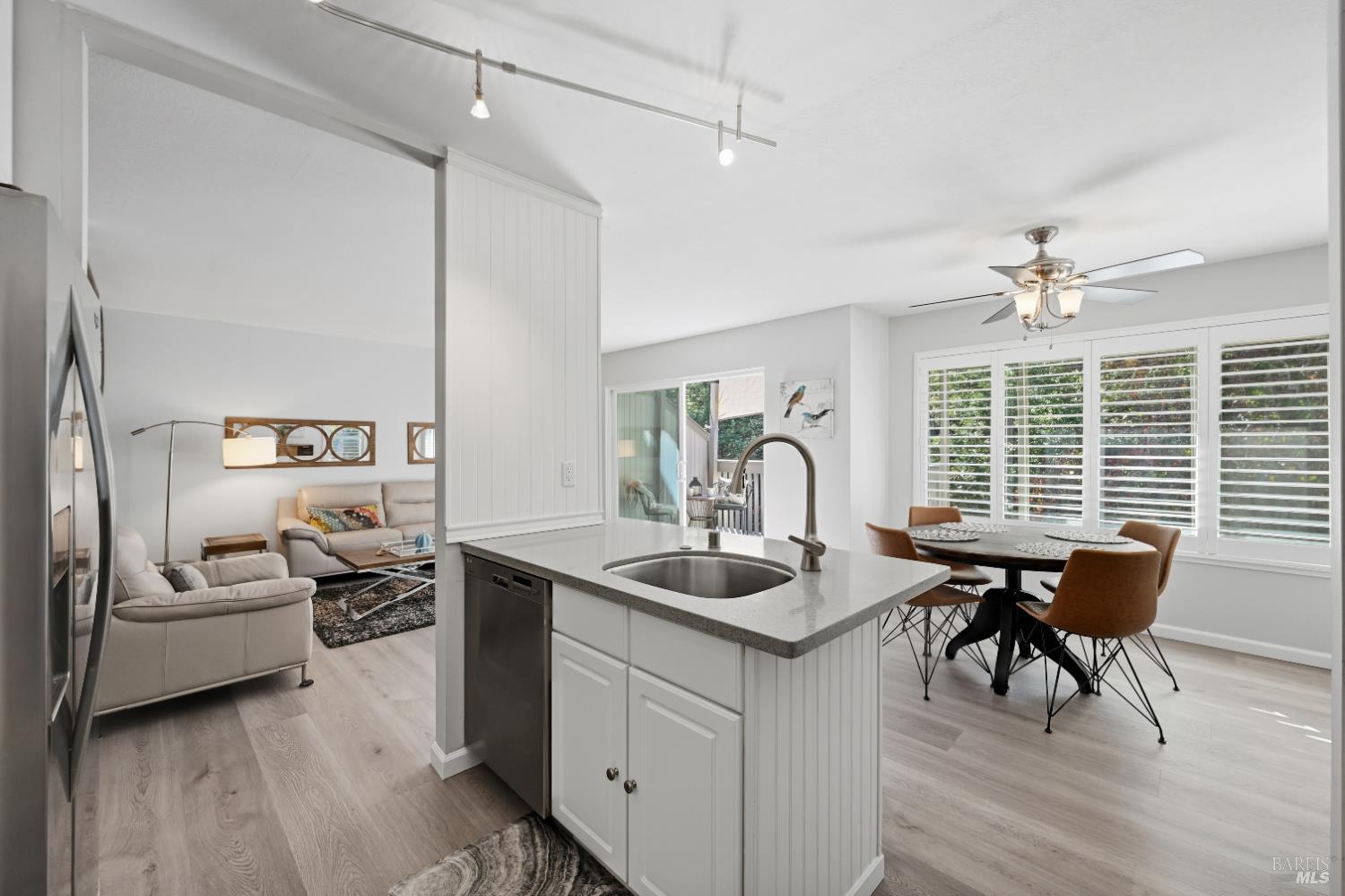 Stylish light-filled 3BD/2BA End unit PUD home in Santa Rosa's desirable Bennett Valley. A split-level home, well maintained and tastefully updated by its long-time owner; newer roof,flooring,fresh paint,double-hung windows,plantation shutters,bathroom & kitchen updates, to name just a few. The open floor plan features an inviting living area with access to a roomy balcony w/added pergola. Tree-top views overlooking the backyard and open space outside your back gate. The entry level includes a bedroom, full bathroom, inside laundry/utility room plus interior access to the attached one-car garage with extra storage closet and an additional dedicated parking space just steps from your front door. Downstairs, you'll find two more bedrooms and another full bathroom. Enjoy the fenced backyard providing an additional place to enjoy the outdoors. Take a relaxing dip in your own hot tub or enjoy the nearby community pool a short stroll from your front door. Conveniently located near desirable schools, parks, golf, recreation, and loads of amenities. Easy access to Highway 12 & 101. A quick trip east over the hill drops you down into Glen Ellen & the heart of Sonoma's Valley of the Moon, Low HOA dues, ideal location, and tasteful updates make this Bennett Valley Knolls home a great option