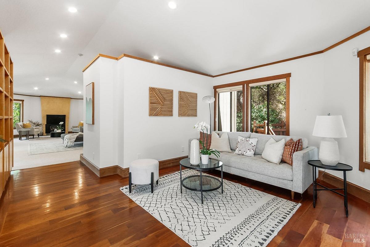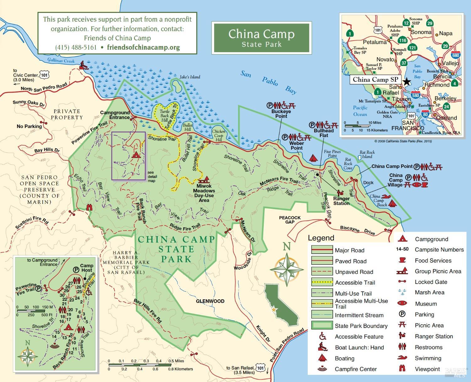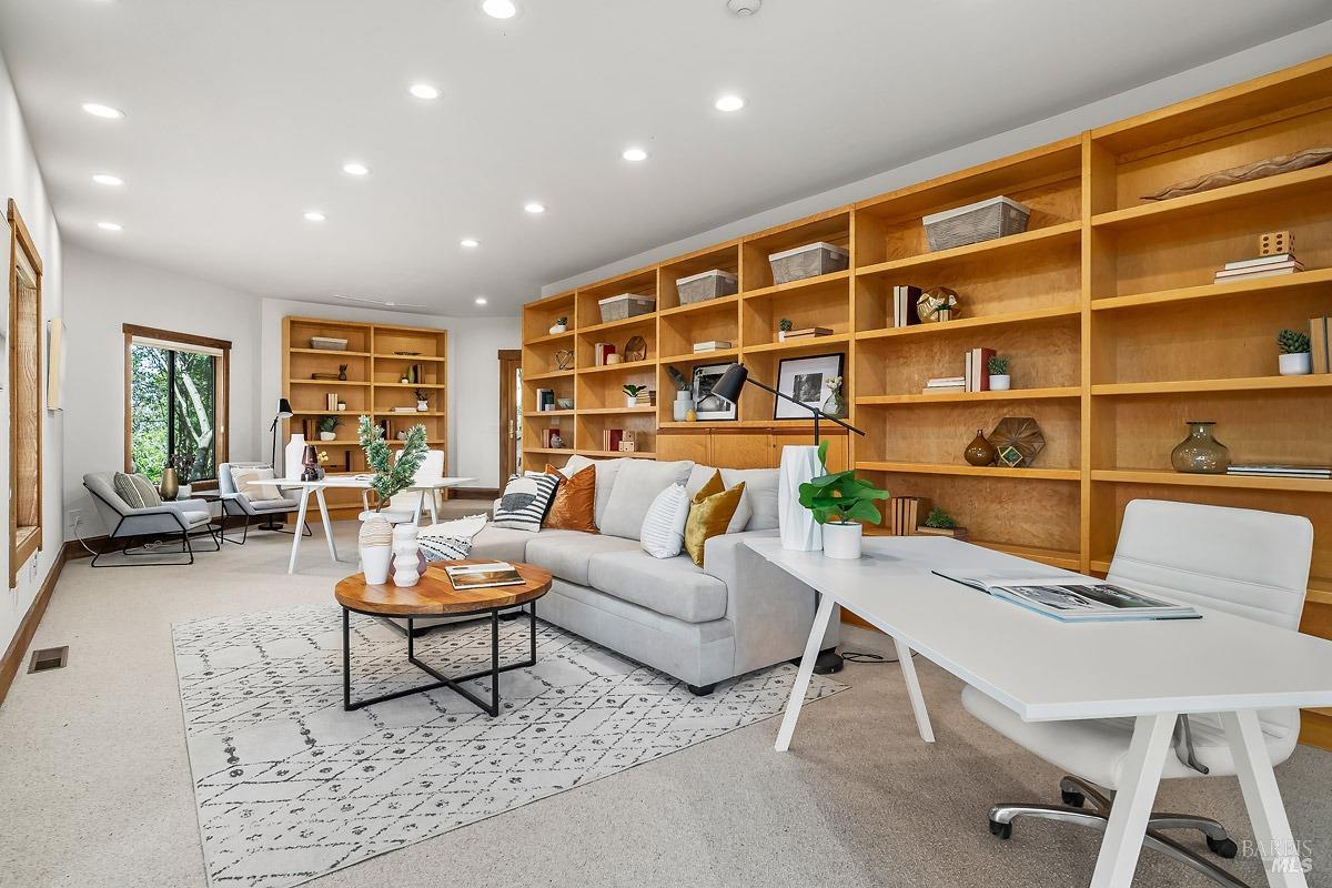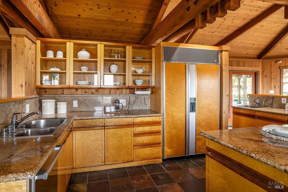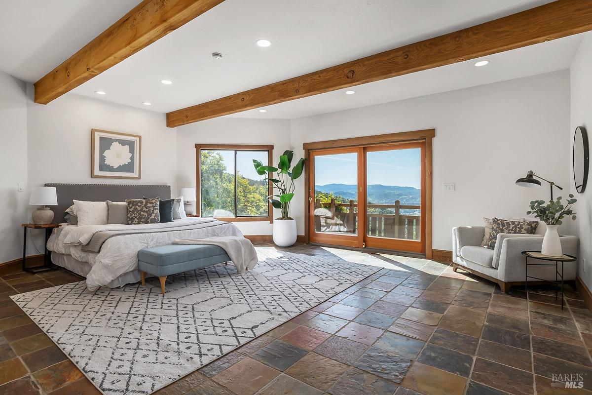 One-of-a-kind, custom master-built estate on 8.6 acres. A true tribute to the harmony of humankind and nature. This 5BR/6BA legacy home offers total privacy, incredible grounds, a breathtaking pool, a separate pool house, panoramic views and miles of hiking, biking and riding trails. With upwards of 7500 sq. ft. (6595 per tax record), this light-filled, window-rich home is solid, dramatic and welcoming, designed for every experience. Circular driveway, hand-carved walnut doors and a full copper roof set the tone. Approx. 1,000 sq. ft. main-floor primary suite with two fireplaces, sunny Ipe deck, walk-in closet with built-ins and a meditation/workout room. The primary bathroom offers a domed ceiling, natural light and spa-like ambiance. The lower level features a large playroom, three generous bedrooms, three full bathrooms, laundry, wine storage, art space, workshop, and a grand office with separate entrance. Finished in 1994 and once owned by Dr. Dean Edell, the home offers direct access to China Camp's expansive trail network. Bay views are just across the way, connected by a network of hidden paths that make this setting feel like a private sanctuary. This is a destination property for the discerning buyer who values privacy, top craftsmanship and a