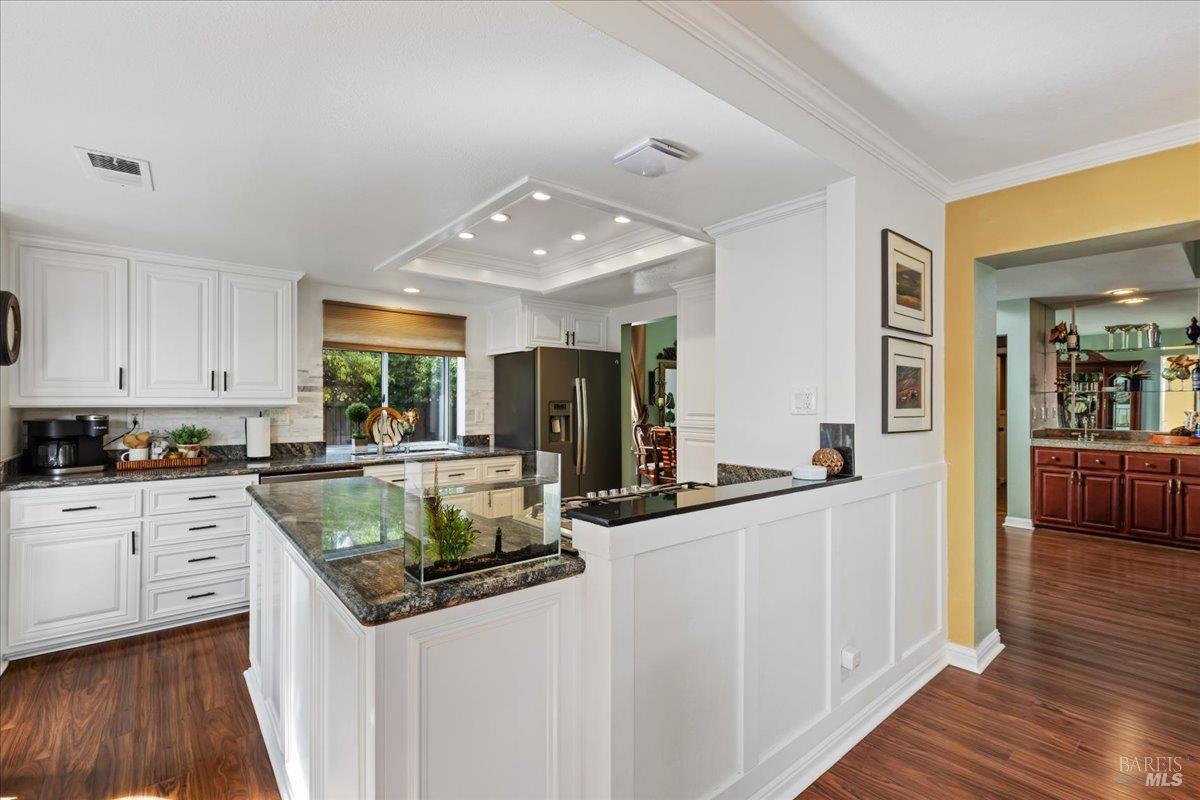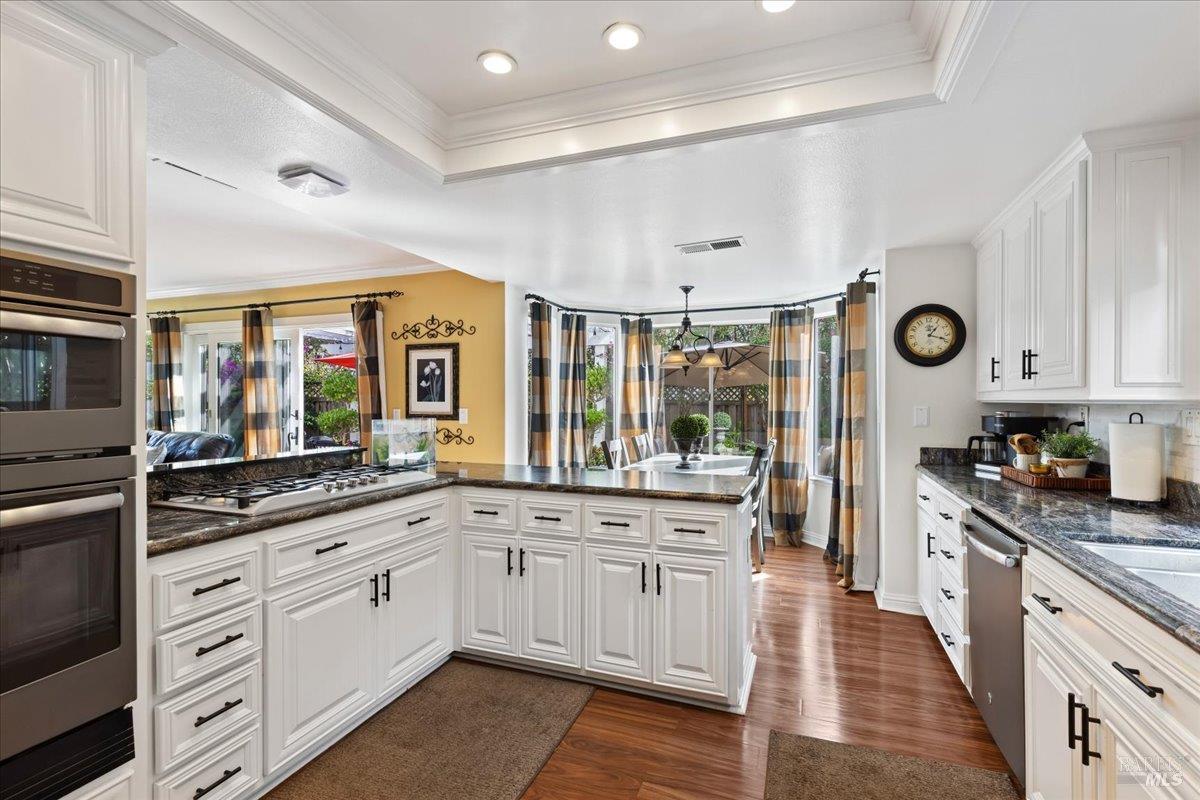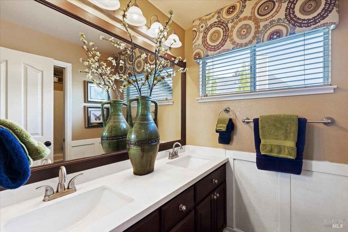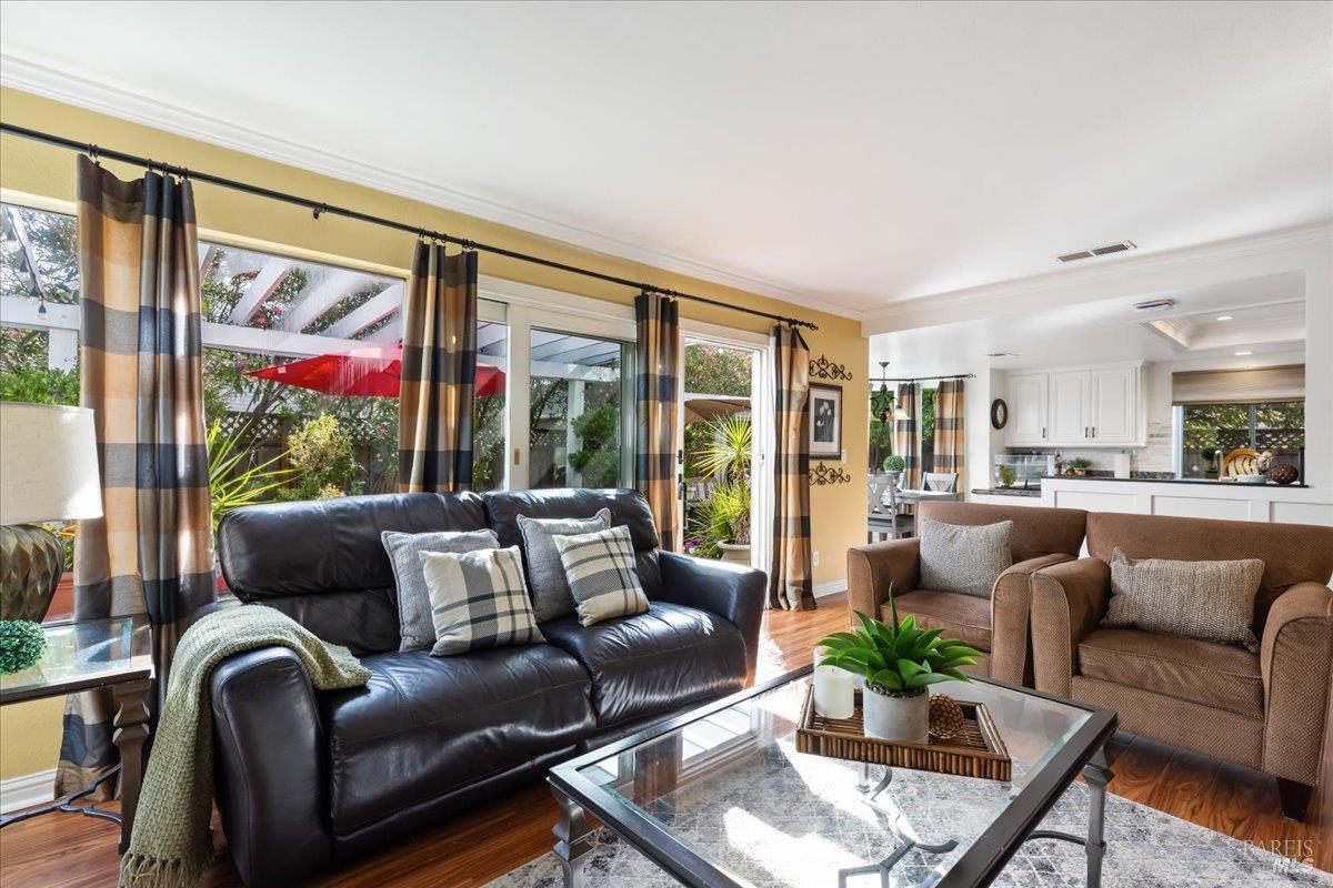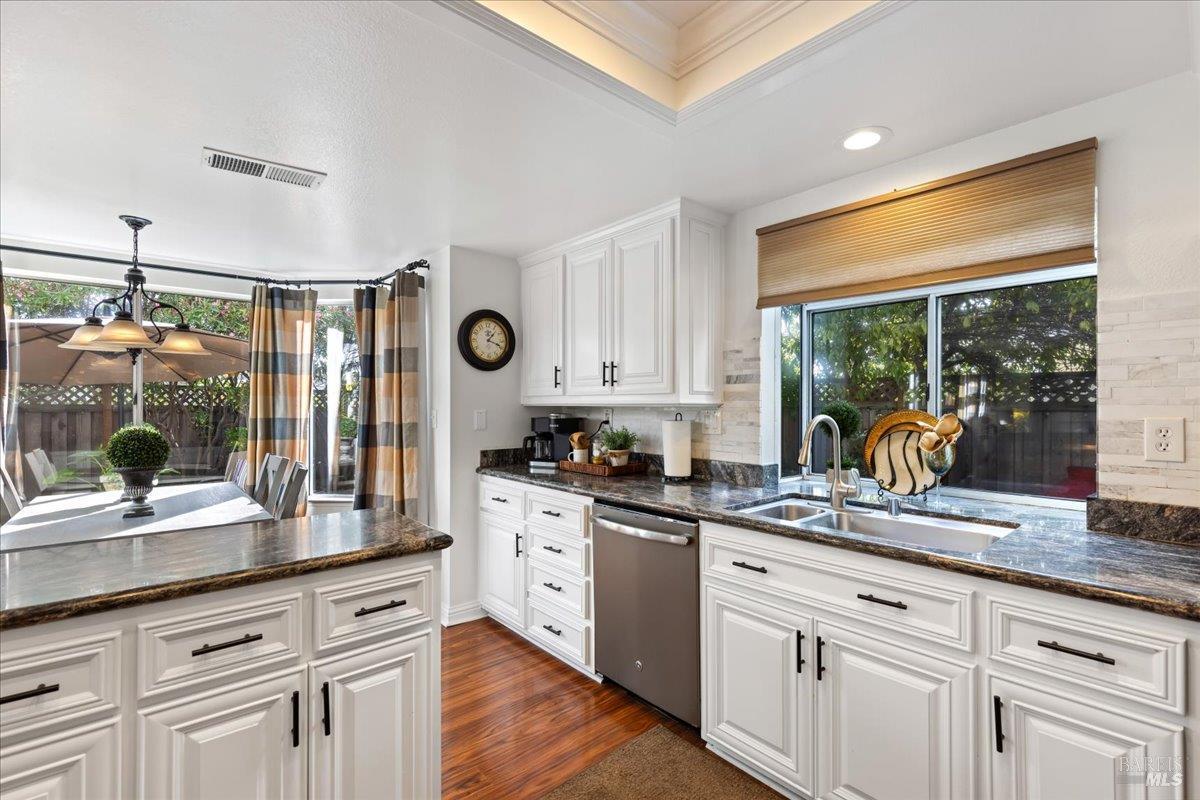 This stunning 5-bedroom, 3-bathroom home in Glen Cove By the Bay'' showcases years of pride in ownership. Tucked away on a quiet court, it's just a short walk from the water and hiking trails. The spacious dining area is ideal for entertaining, and the convenient layout includes a bedroom and full bath on the main level. The cozy atmosphere is enhanced by two fireplaces, while functional spaces include an inside laundry room and an attached 3-car garage. Recent upgrades feature fresh exterior paint and a new roof completed in 2021, along with updated bathrooms. The open kitchen-family room seamlessly connects to the backyard. Here, established gardens with flowering plants, fruit trees, and various seating areas create a perfect setting for outdoor entertainment or unwinding in the hot tub. With easy access to Highway 780 and connections to Hwy 80, trips to San Francisco and Sacramento are a breeze. Enjoy the Ferry Service to San Francisco or take the train to Sacramento!