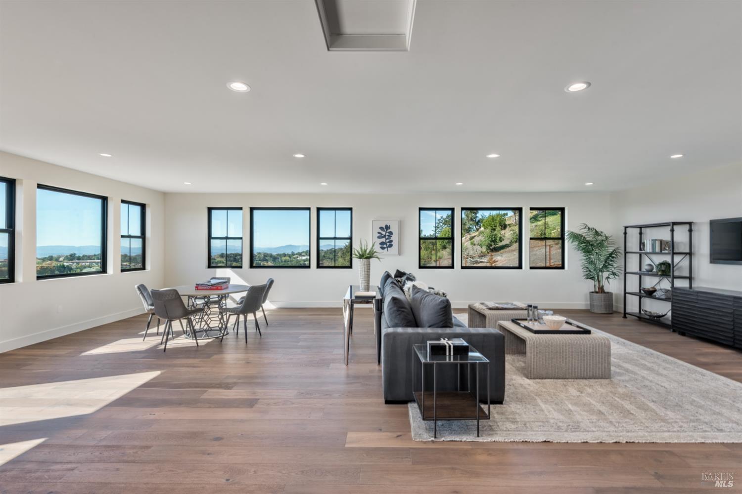 Modern luxury with panoramic views in the heart of Fountaingrove. This new construction 4BD, 5BA + Den residence offers over 4,300 SQFT of thoughtfully designed living space on more than half an acre, showcasing expansive westerly views of mountains, valleys, and shimmering city lights. A majestic oak tree welcomes you at the front, while adjacent open space enhances the home's sense of privacy and connection to nature. Inside, an expansive great room is filled with natural light and sweeping views. The open-concept layout seamlessly integrates the kitchen, dining, and family areas, perfect for relaxed gatherings or elegant entertaining. French sliding doors lead to a large, flat backyard, ideal for a pool, outdoor kitchen, garden retreat and more. The main-level primary suite offers direct outdoor access, creating a private sanctuary. Upstairs, a versatile loft and private en-suite bedroom provide flexible space for guests or multi-generational living. Set in the hills of Fountaingrove, this home offers more than exceptional design, it delivers an elevated lifestyle. With nearby access to the Fountaingrove Golf & Athletic Club, hiking trails, top-rated schools, and everyday amenities, this residence embodies a rare blend of sophistication, serenity, and convenience.