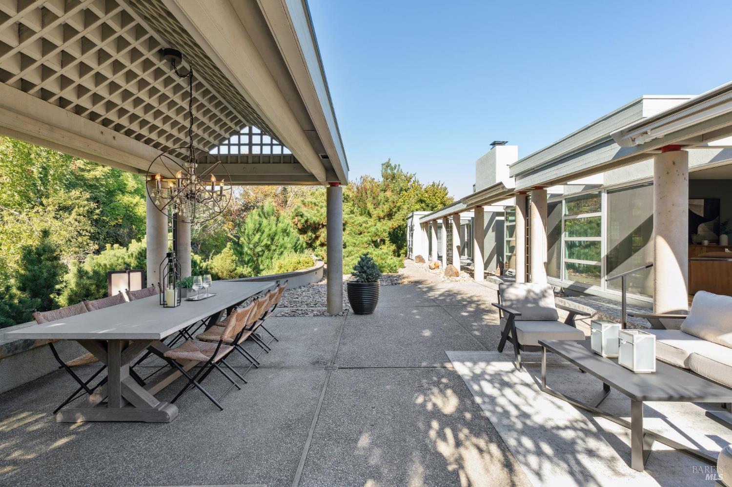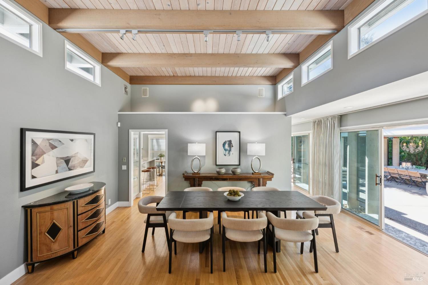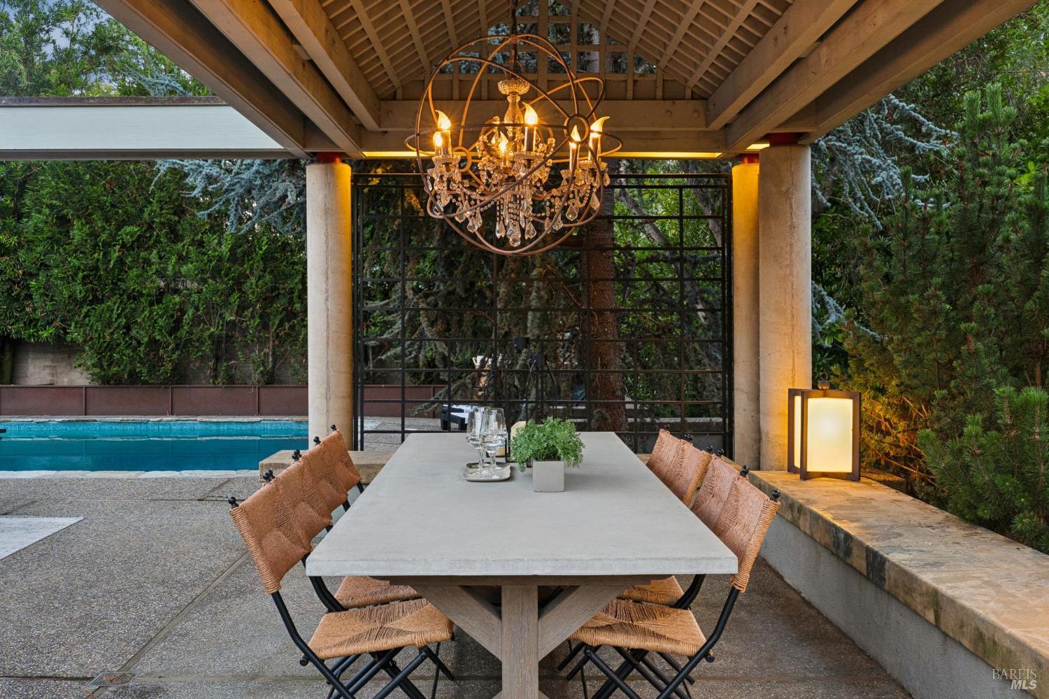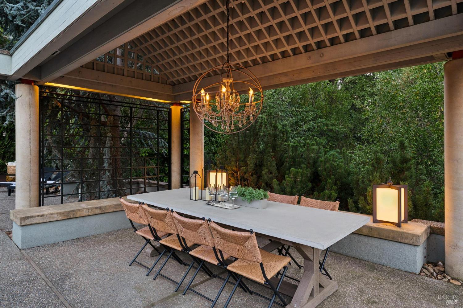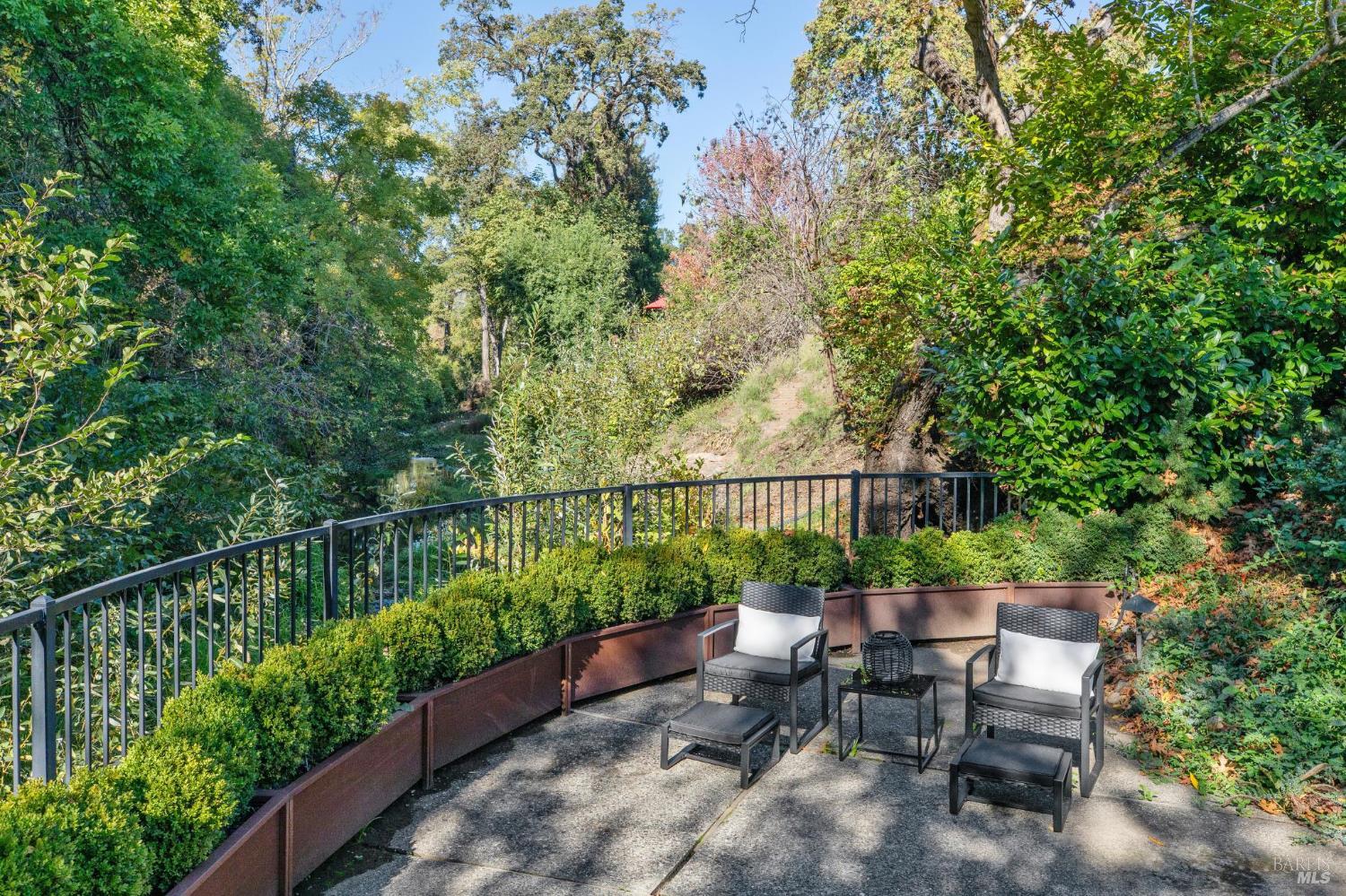 Single level mid-century modern 4 BR 3.5 BA 2831 sq ft home designed by highly acclaimed architect, Hank Bruce located in a beautiful & private creekside setting on .45 +/- acre with all city services minutes to downtown Napa & Yountville. Well designed with indoor/outdoor living in mind featuring series of glass doors that open to outdoor entertaining area with heated pool, lighted dining pavilion, creekside patio & multiple seating areas. Open floorplan encompasses 2 great rooms: one with formal living & dining featuring dramatic elevated exposed wood beam ceiling with transom windows, gas fireplace & built-in bar. The other great room features family room opening to delightful kitchen with counter seating, informal dining & stainless appliances. All 4 BRs; one of which is currently used as an office with custom built-ins, offer glass doors that open to private seating areas. Spacious main ensuite features large walk-in closet with skylight, 2 full baths & a bonus room currently used as yoga & exercise retreat. Hardwood floors throughout all main living areas & BRs, elevated ceilings, transom windows, skylights, retractable awnings, newer tankless water heater & HVAC. Enjoy Silverado Resort & Spa with golf, tennis, restaurants, & cafe with Starbucks! No HOA dues!