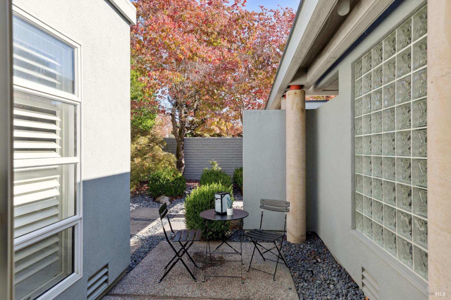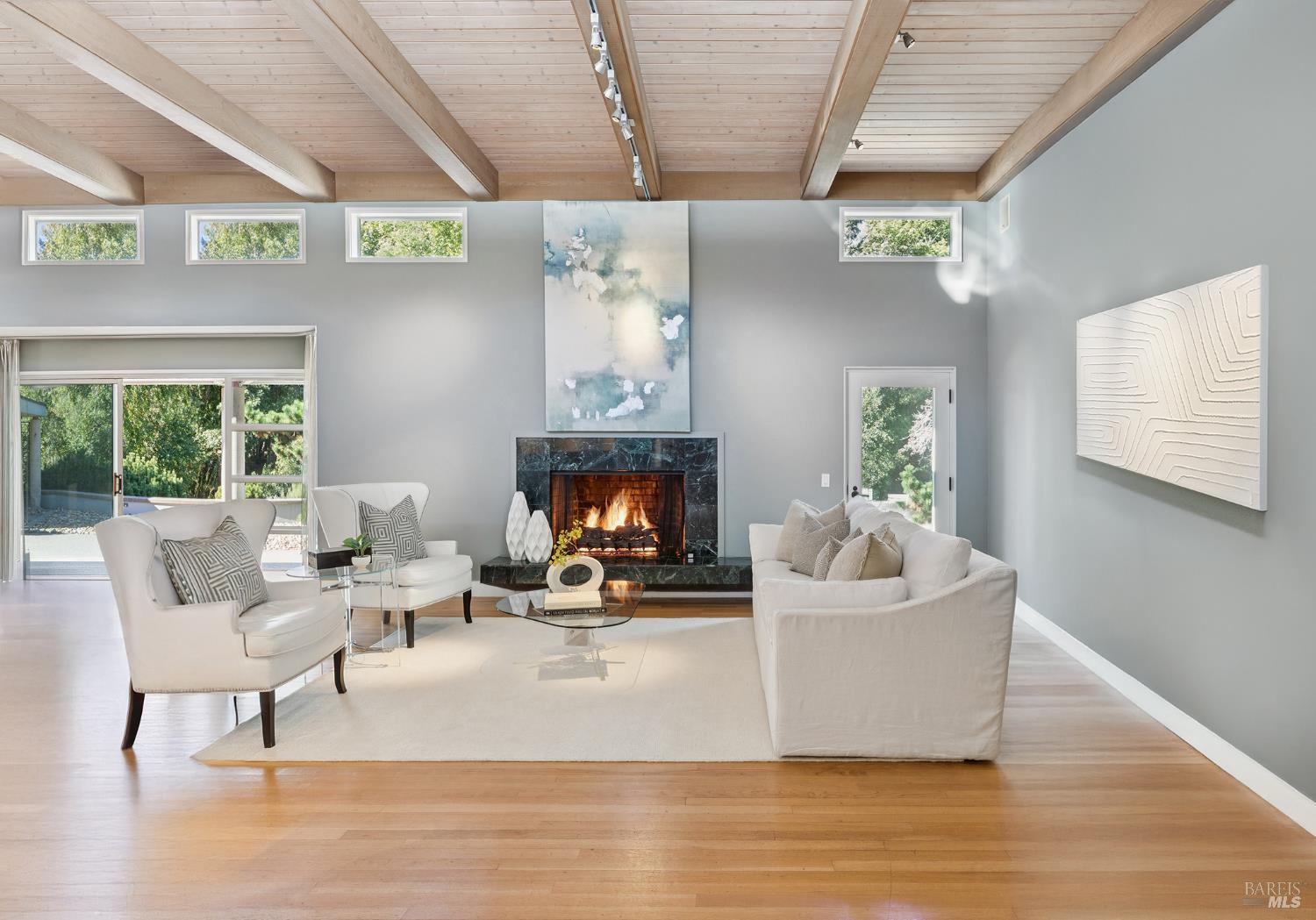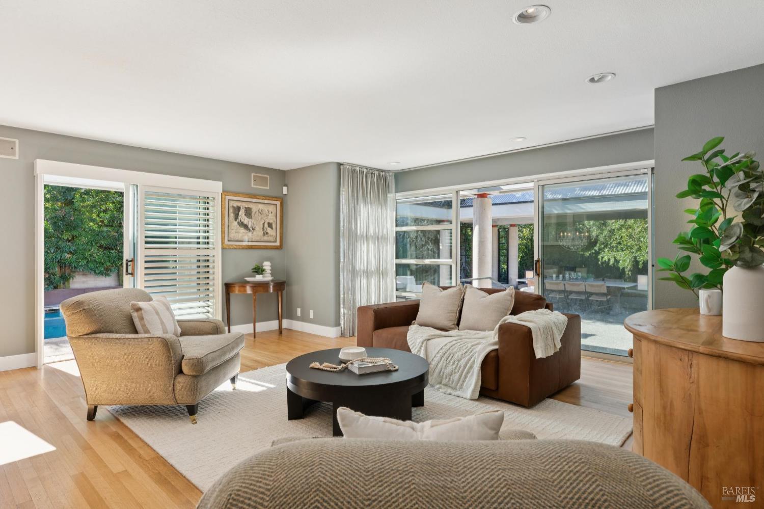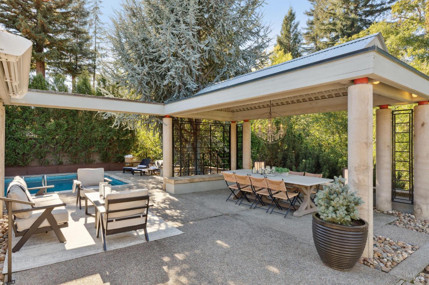 Single level mid-century modern 4 BR 3.5 BA 2831 sq ft home designed by highly acclaimed architect, Hank Bruce located in a beautiful & private creekside setting on .45 +/- acre with all city services minutes to downtown Napa & Yountville. Well designed with indoor/outdoor living in mind featuring series of glass doors that open to outdoor entertaining area with heated pool, lighted dining pavilion, creekside patio & multiple seating areas. Open floorplan encompasses 2 great rooms: one with formal living & dining featuring dramatic elevated exposed wood beam ceiling with transom windows, gas fireplace & built-in bar. The other great room features family room opening to delightful kitchen with counter seating, informal dining & stainless appliances. All 4 BRs; one of which is currently used as an office with custom built-ins, offer glass doors that open to private seating areas. Spacious main ensuite features large walk-in closet with skylight, 2 full baths & a bonus room currently used as yoga & exercise retreat. Hardwood floors throughout all main living areas & BRs, elevated ceilings, transom windows, skylights, retractable awnings, newer tankless water heater & HVAC. Enjoy Silverado Resort & Spa with golf, tennis, restaurants, & cafe with Starbucks! No HOA dues!