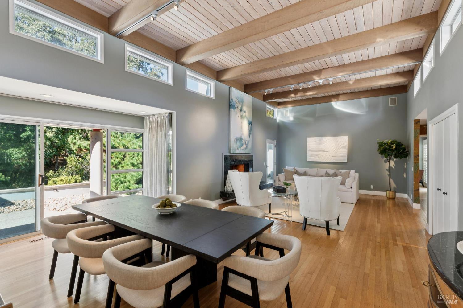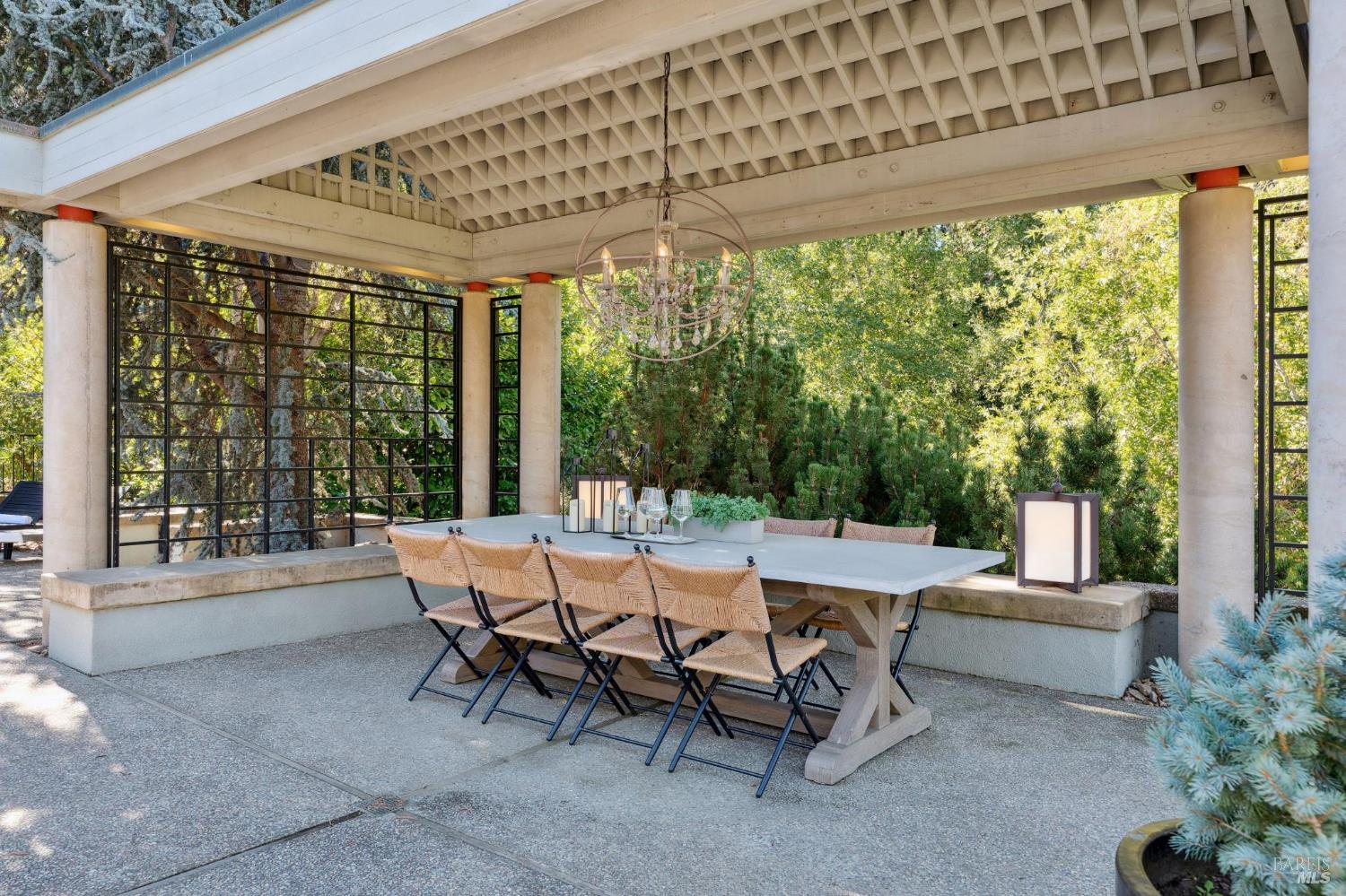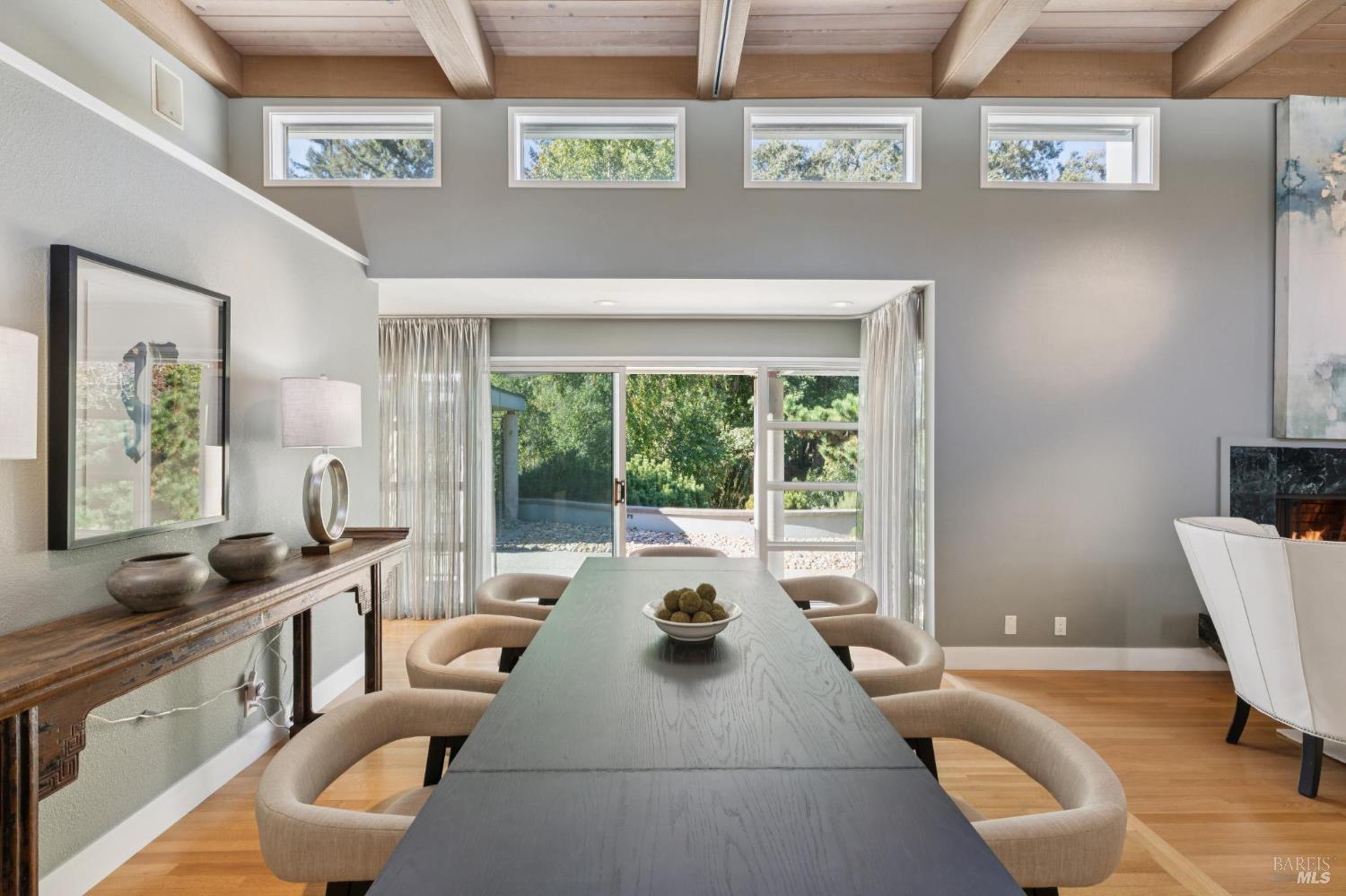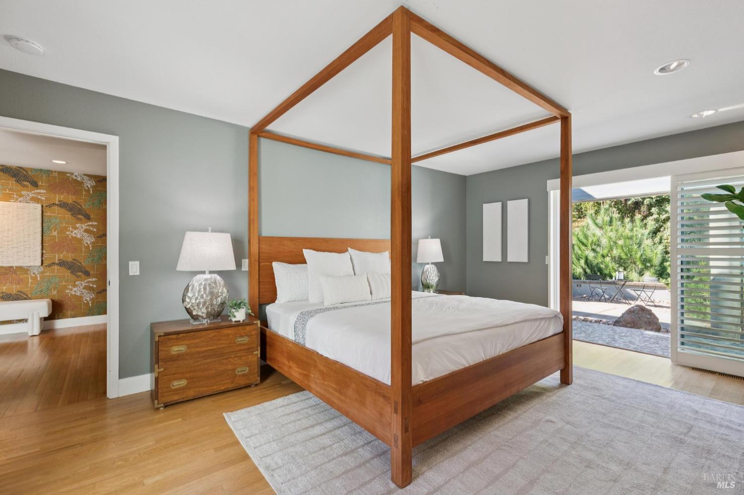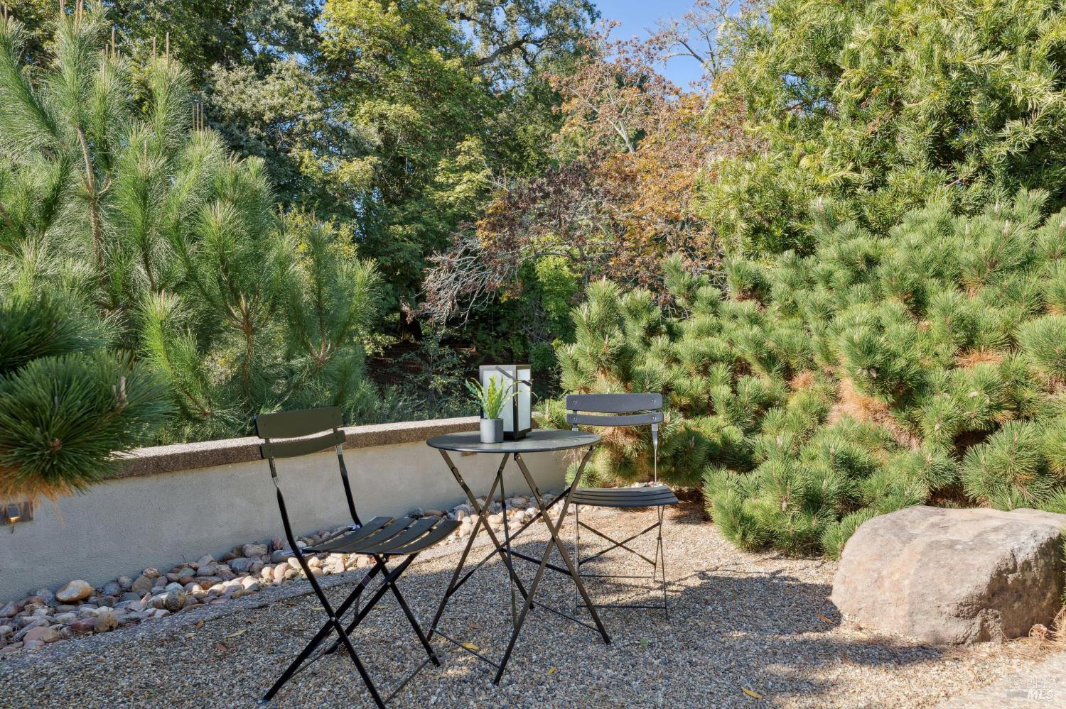 Single level mid-century modern 4 BR 3.5 BA 2831 sq ft home designed by highly acclaimed architect, Hank Bruce located in a beautiful & private creekside setting on .45 +/- acre with all city services minutes to downtown Napa & Yountville. Well designed with indoor/outdoor living in mind featuring series of glass doors that open to outdoor entertaining area with heated pool, lighted dining pavilion, creekside patio & multiple seating areas. Open floorplan encompasses 2 great rooms: one with formal living & dining featuring dramatic elevated exposed wood beam ceiling with transom windows, gas fireplace & built-in bar. The other great room features family room opening to delightful kitchen with counter seating, informal dining & stainless appliances. All 4 BRs; one of which is currently used as an office with custom built-ins, offer glass doors that open to private seating areas. Spacious main ensuite features large walk-in closet with skylight, 2 full baths & a bonus room currently used as yoga & exercise retreat. Hardwood floors throughout all main living areas & BRs, elevated ceilings, transom windows, skylights, retractable awnings, newer tankless water heater & HVAC. Enjoy Silverado Resort & Spa with golf, tennis, restaurants, & cafe with Starbucks! No HOA dues!