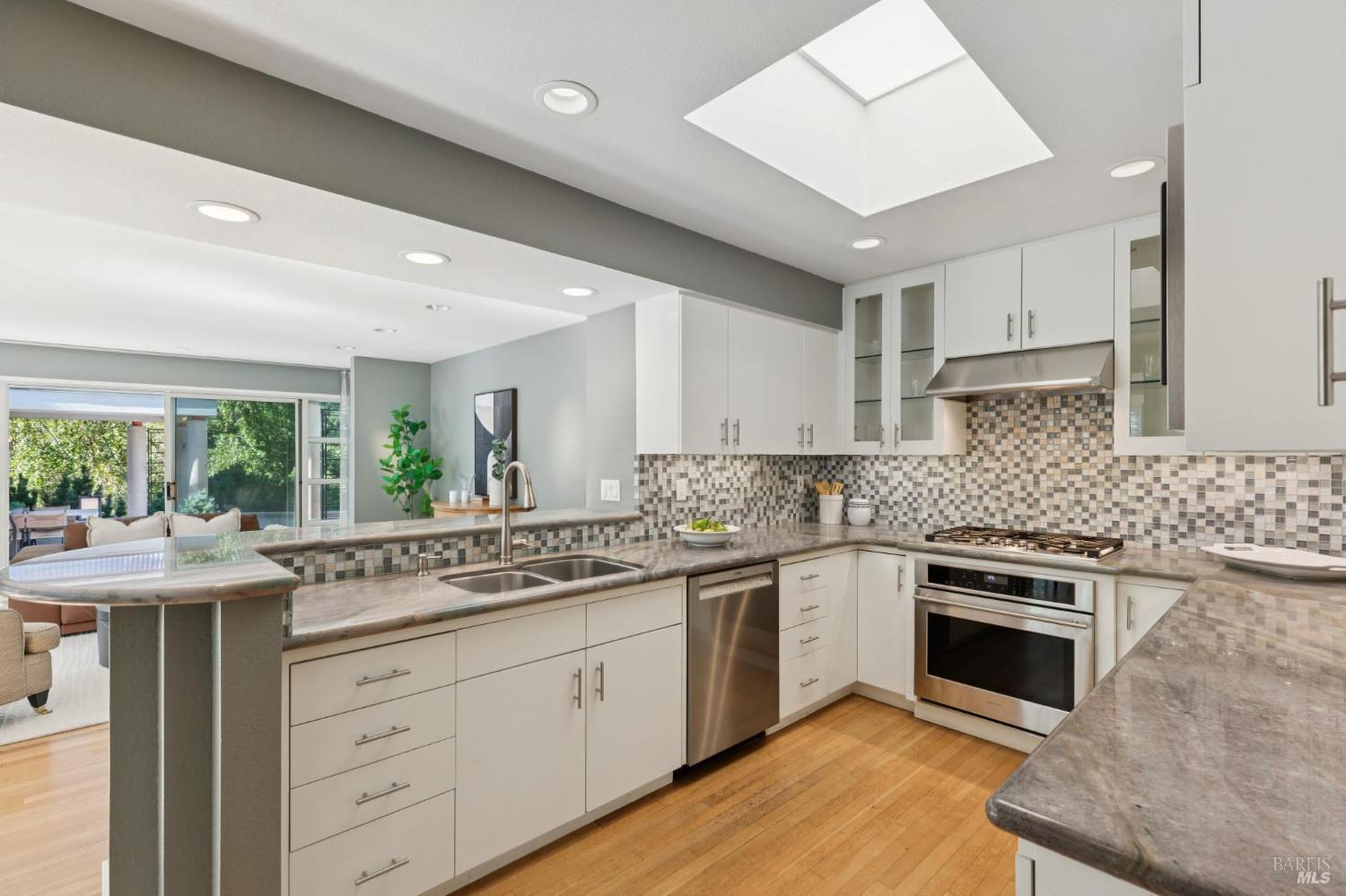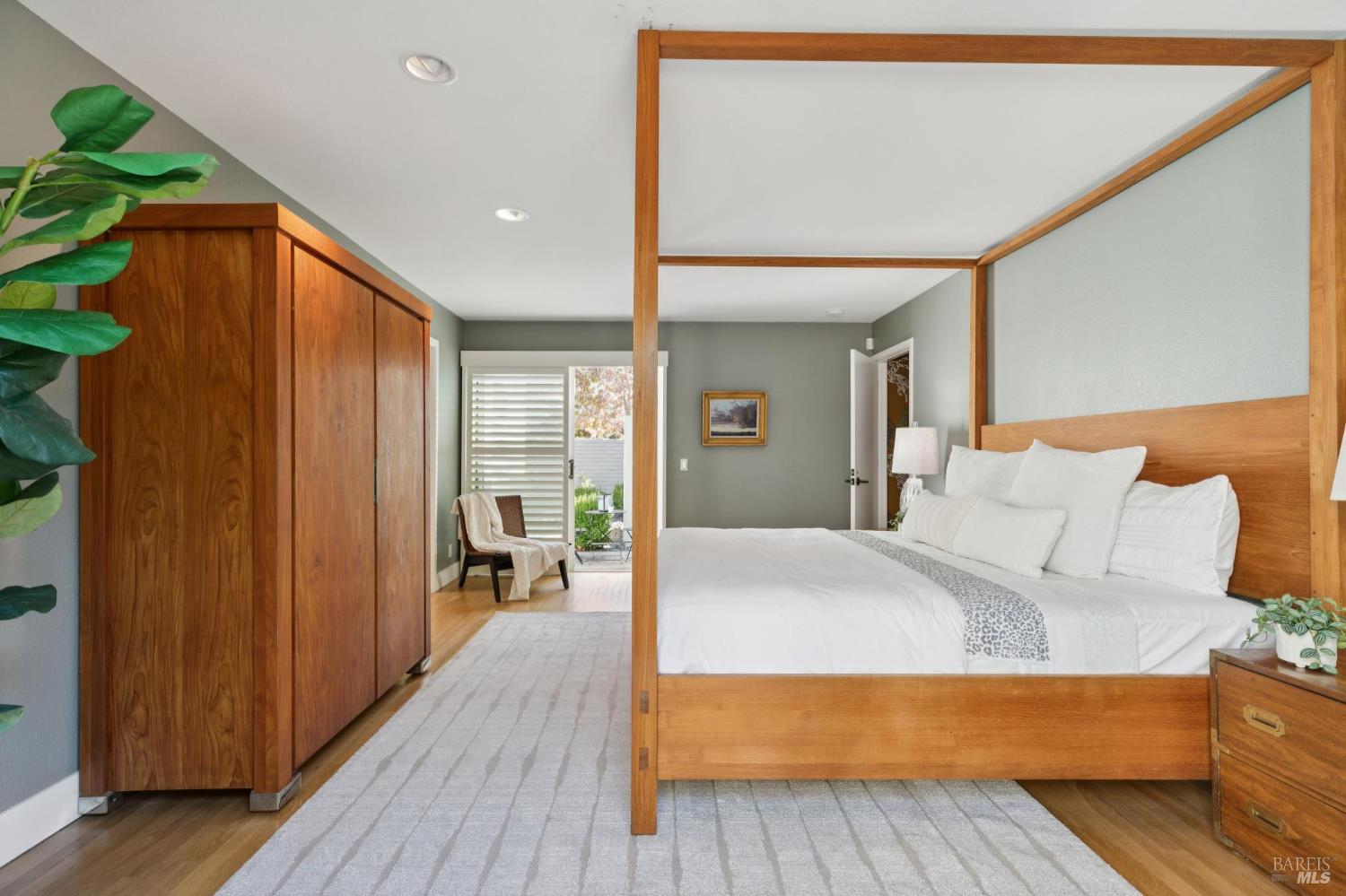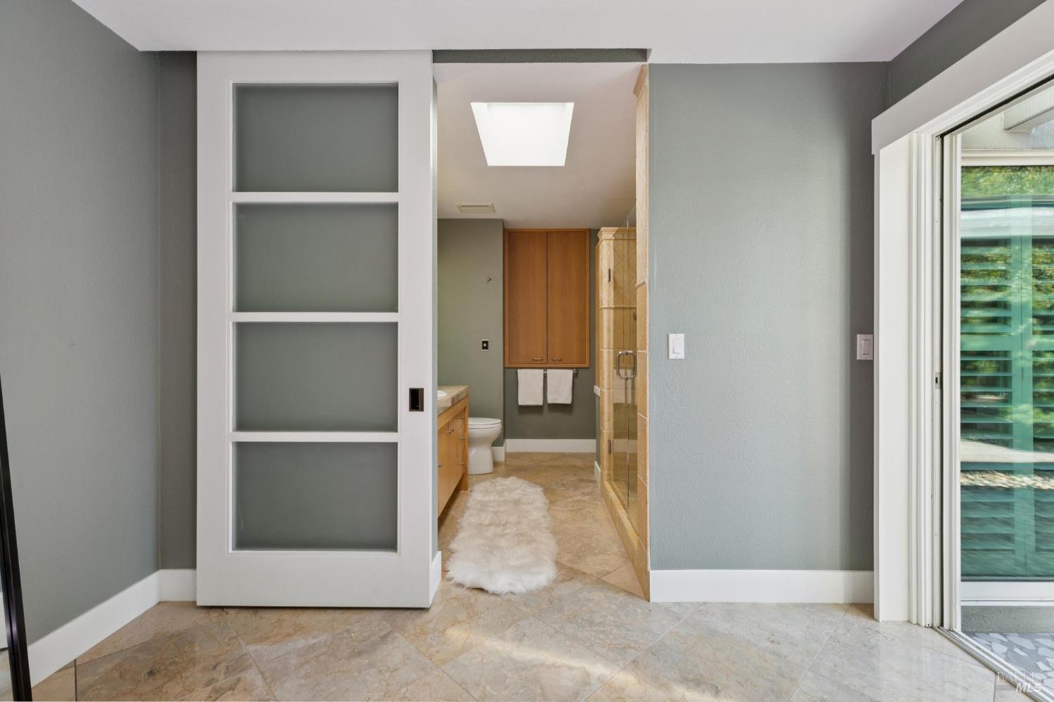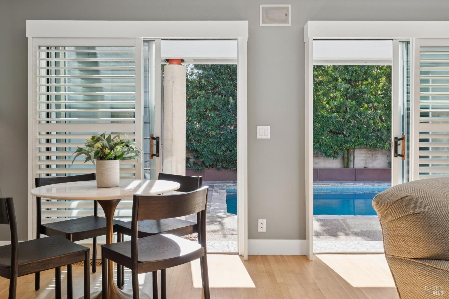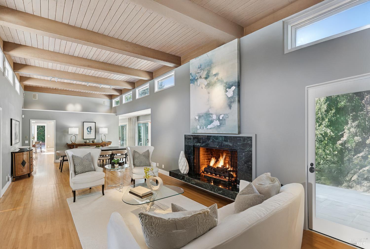 Single level mid-century modern 4 BR 3.5 BA 2831 sq ft home designed by highly acclaimed architect, Hank Bruce located in a beautiful & private creekside setting on .45 +/- acre with all city services minutes to downtown Napa & Yountville. Well designed with indoor/outdoor living in mind featuring series of glass doors that open to outdoor entertaining area with heated pool, lighted dining pavilion, creekside patio & multiple seating areas. Open floorplan encompasses 2 great rooms: one with formal living & dining featuring dramatic elevated exposed wood beam ceiling with transom windows, gas fireplace & built-in bar. The other great room features family room opening to delightful kitchen with counter seating, informal dining & stainless appliances. All 4 BRs; one of which is currently used as an office with custom built-ins, offer glass doors that open to private seating areas. Spacious main ensuite features large walk-in closet with skylight, 2 full baths & a bonus room currently used as yoga & exercise retreat. Hardwood floors throughout all main living areas & BRs, elevated ceilings, transom windows, skylights, retractable awnings, newer tankless water heater & HVAC. Enjoy Silverado Resort & Spa with golf, tennis, restaurants, & cafe with Starbucks! No HOA dues!
