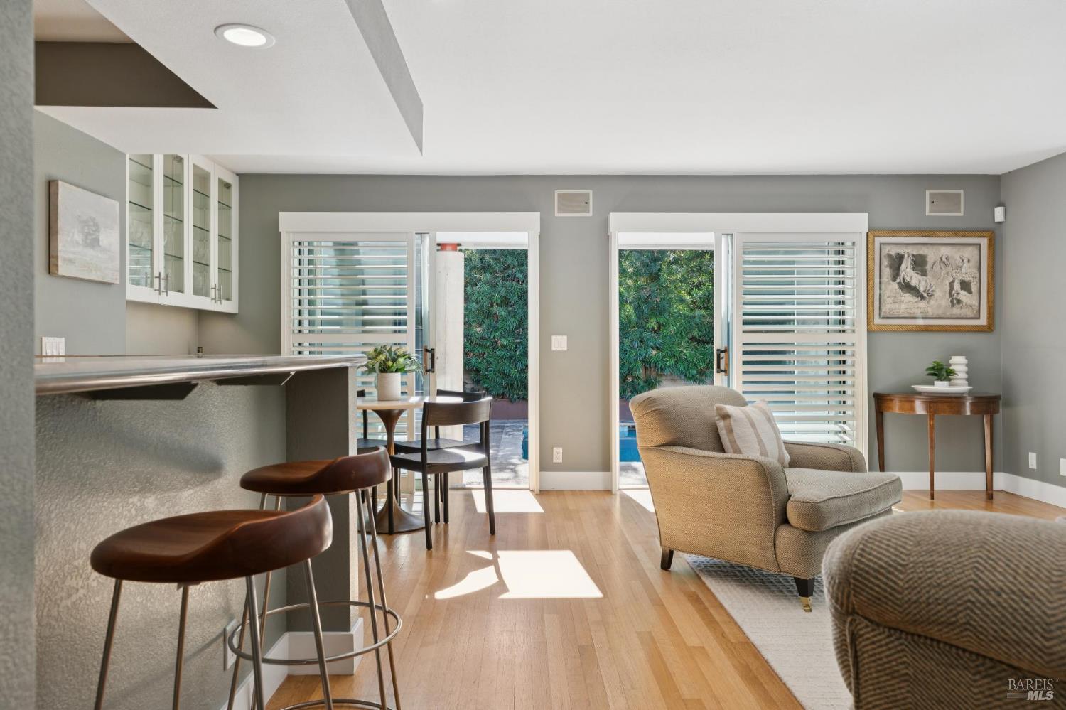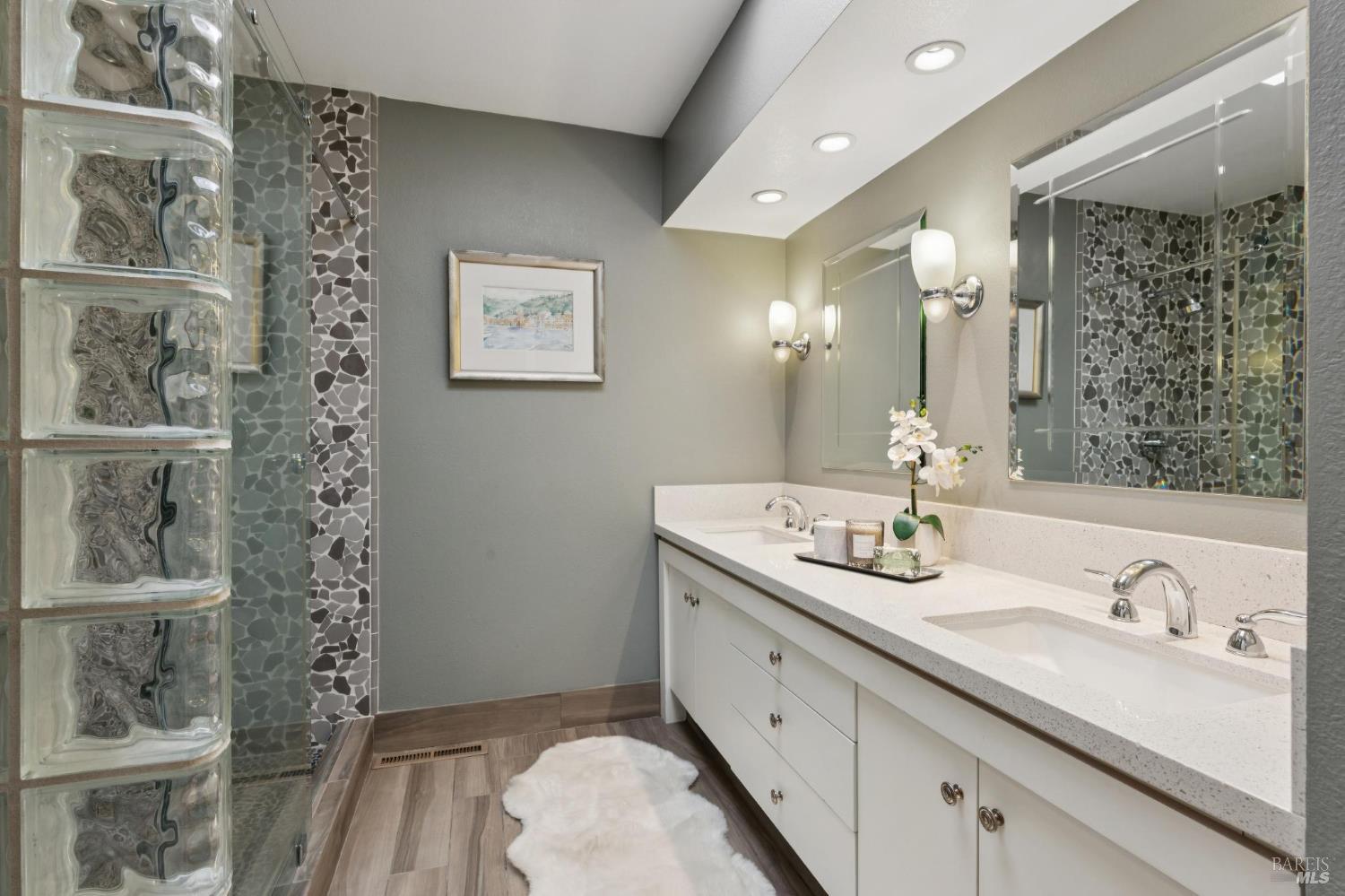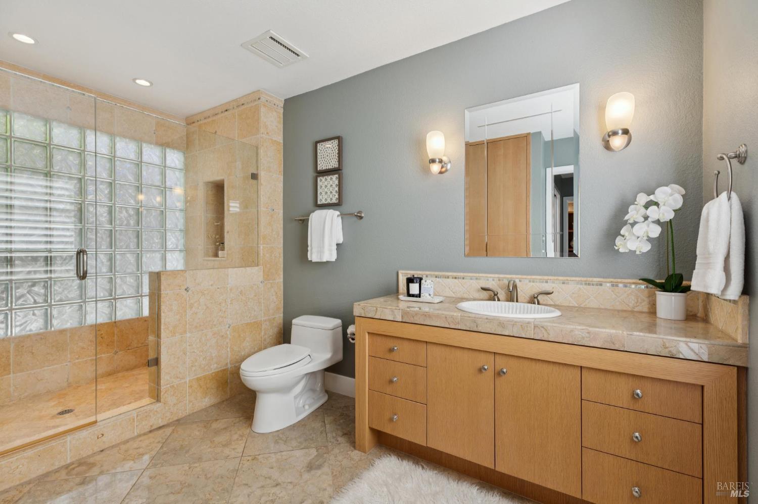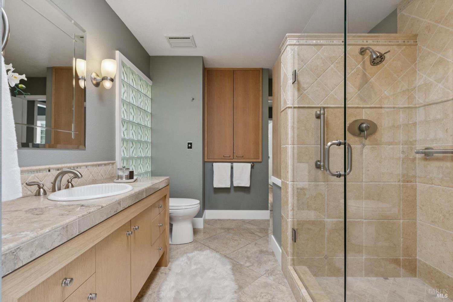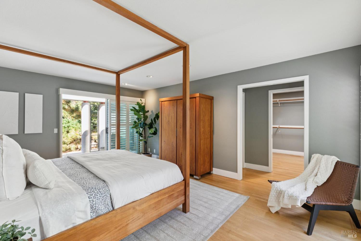 Single level mid-century modern 4 BR 3.5 BA 2831 sq ft home designed by highly acclaimed architect, Hank Bruce located in a beautiful & private creekside setting on .45 +/- acre with all city services minutes to downtown Napa & Yountville. Well designed with indoor/outdoor living in mind featuring series of glass doors that open to outdoor entertaining area with heated pool, lighted dining pavilion, creekside patio & multiple seating areas. Open floorplan encompasses 2 great rooms: one with formal living & dining featuring dramatic elevated exposed wood beam ceiling with transom windows, gas fireplace & built-in bar. The other great room features family room opening to delightful kitchen with counter seating, informal dining & stainless appliances. All 4 BRs; one of which is currently used as an office with custom built-ins, offer glass doors that open to private seating areas. Spacious main ensuite features large walk-in closet with skylight, 2 full baths & a bonus room currently used as yoga & exercise retreat. Hardwood floors throughout all main living areas & BRs, elevated ceilings, transom windows, skylights, retractable awnings, newer tankless water heater & HVAC. Enjoy Silverado Resort & Spa with golf, tennis, restaurants, & cafe with Starbucks! No HOA dues!