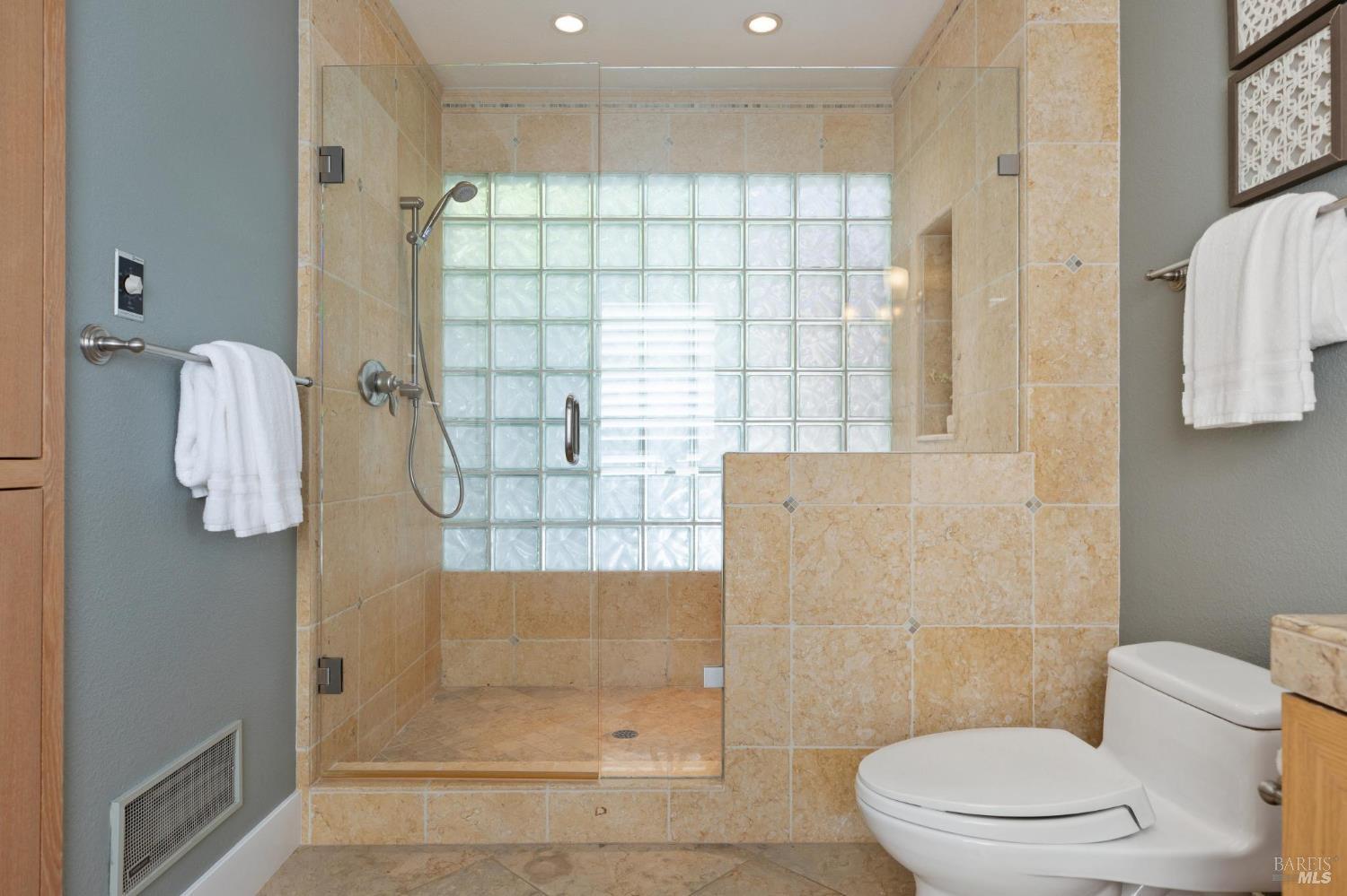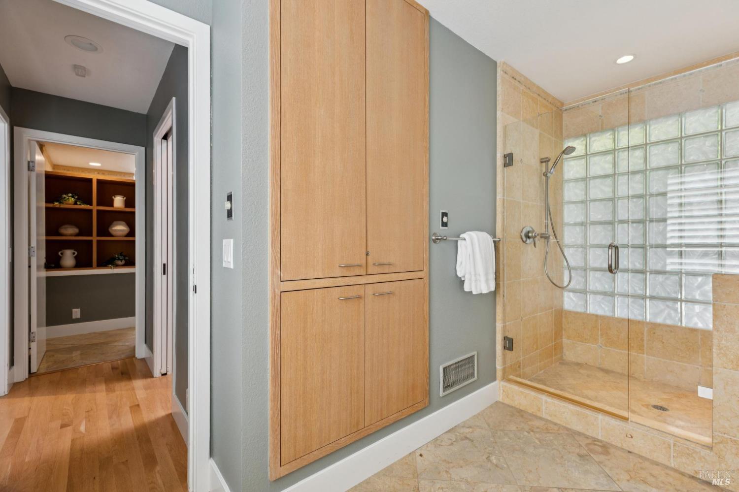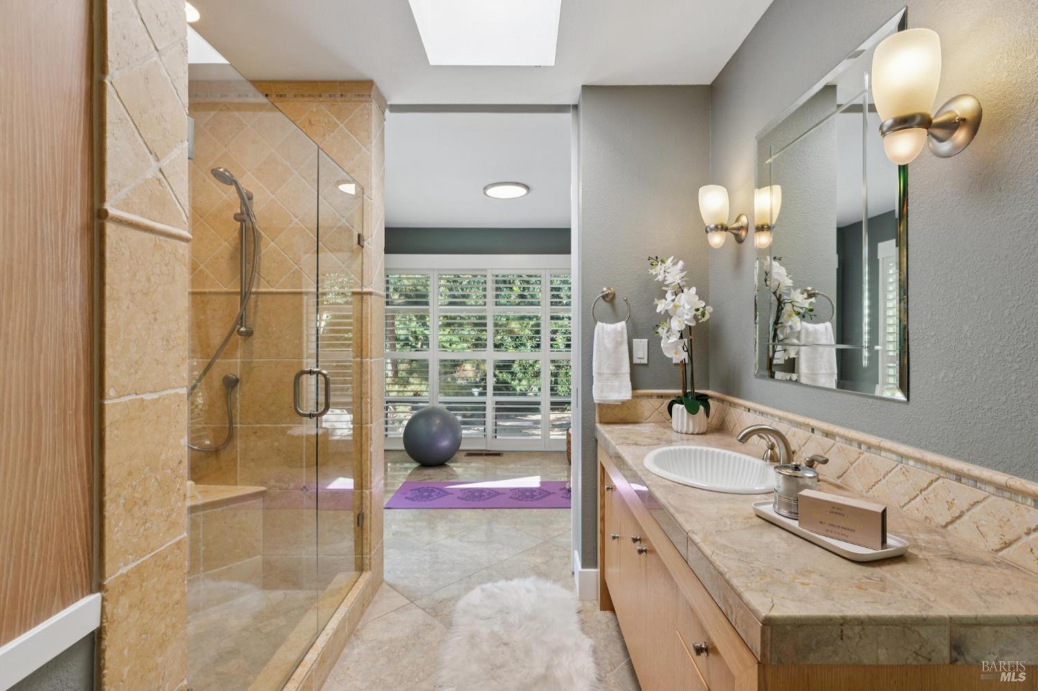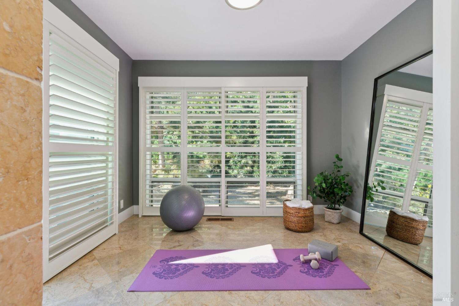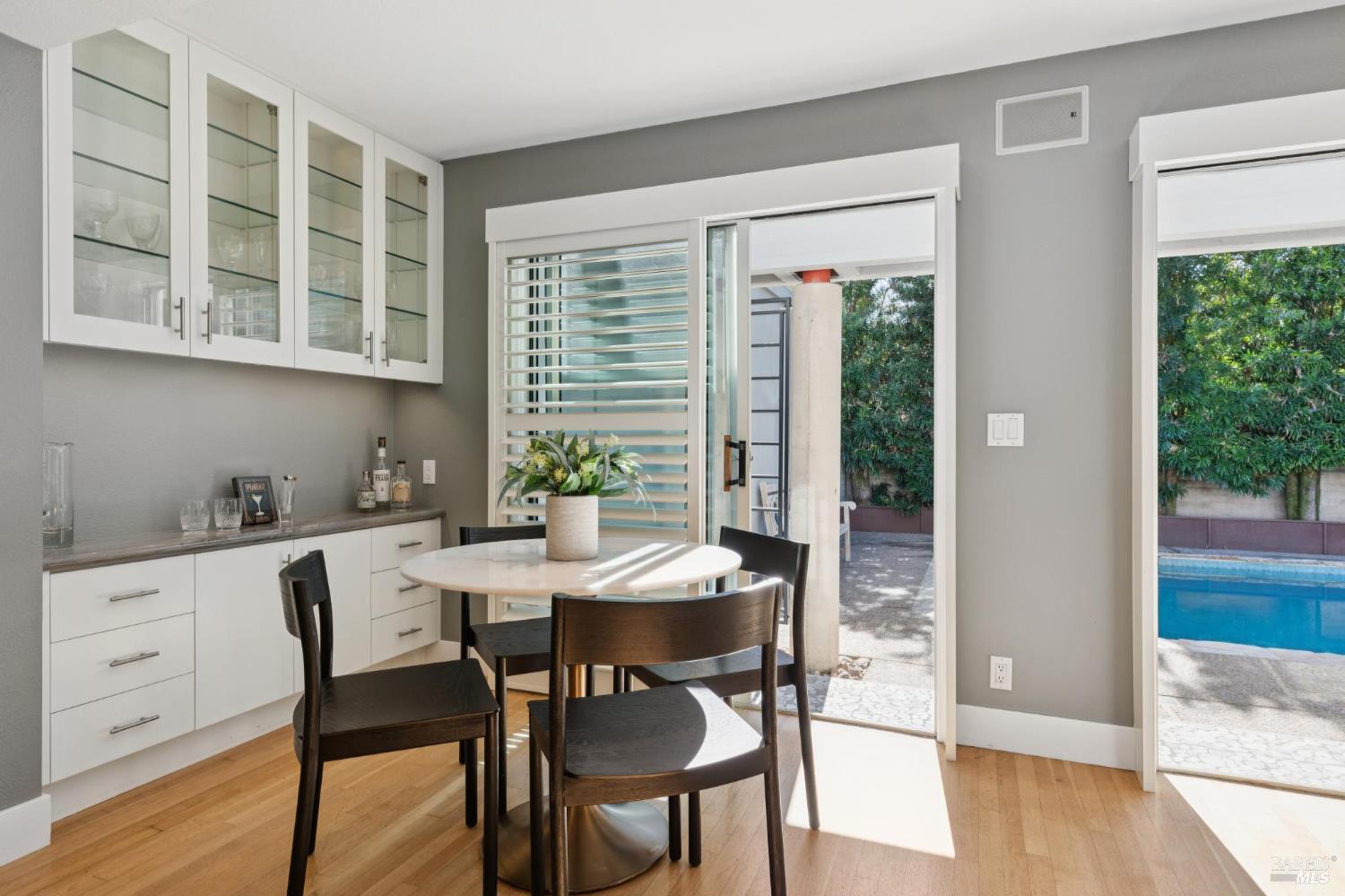 Single level mid-century modern 4 BR 3.5 BA 2831 sq ft home designed by highly acclaimed architect, Hank Bruce located in a beautiful & private creekside setting on .45 +/- acre with all city services minutes to downtown Napa & Yountville. Well designed with indoor/outdoor living in mind featuring series of glass doors that open to outdoor entertaining area with heated pool, lighted dining pavilion, creekside patio & multiple seating areas. Open floorplan encompasses 2 great rooms: one with formal living & dining featuring dramatic elevated exposed wood beam ceiling with transom windows, gas fireplace & built-in bar. The other great room features family room opening to delightful kitchen with counter seating, informal dining & stainless appliances. All 4 BRs; one of which is currently used as an office with custom built-ins, offer glass doors that open to private seating areas. Spacious main ensuite features large walk-in closet with skylight, 2 full baths & a bonus room currently used as yoga & exercise retreat. Hardwood floors throughout all main living areas & BRs, elevated ceilings, transom windows, skylights, retractable awnings, newer tankless water heater & HVAC. Enjoy Silverado Resort & Spa with golf, tennis, restaurants, & cafe with Starbucks! No HOA dues!