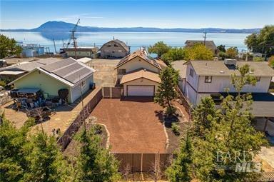 ATTN: Fisherman! This is the perfect property for getting away to Clear Lake. This 2 bedroom 2 bath home in Nice includes a lake front lot across the street that includes a wonderful patio, rose garden, pier, swim platform, and boat whips to tie up your boat. Home has 2 garages: 1-car garage in front and a 2-car garage in back. Plenty of room to park you boat, trailers, and RV's in the large fenced backyard. New roof just installed, new appliances in kitchen, new HVAC, new carpet, new interior paint. Upstairs room has bathroom, wood burning stove and patio with a view of the lake. What a great place to sit read and book, have your morning coffee and enjoy the view of Clear Lake. Sunroom off the kitchen for added room. Home has leased solar to help with the electric bills. Close to stores, restaurants, parks and boat launch.