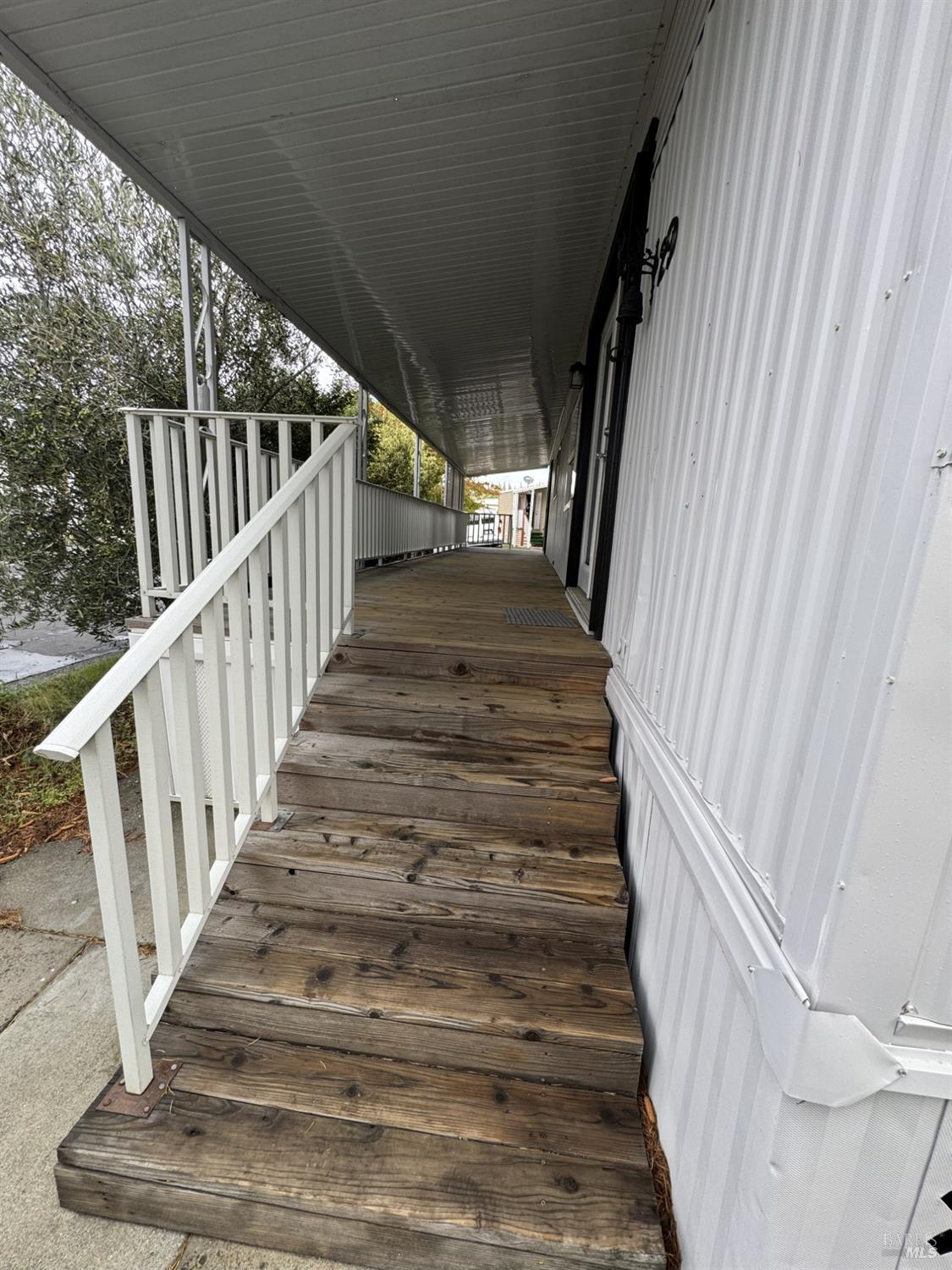 Refreshed and move-in ready! This updated home in a desirable senior park features a new roof, open living and dining areas with built-in cabinetry, and a kitchen with refrigerator and dishwasher. The spacious primary bedroom offers a private deck and ensuite bath. Additional highlights include laminate wood-look flooring, French doors, updated windows, indoor laundry with washer and dryer, covered parking, and a private yard. Relax on the large covered deck and enjoy community amenities including a pool, dog park, and clubhouse.