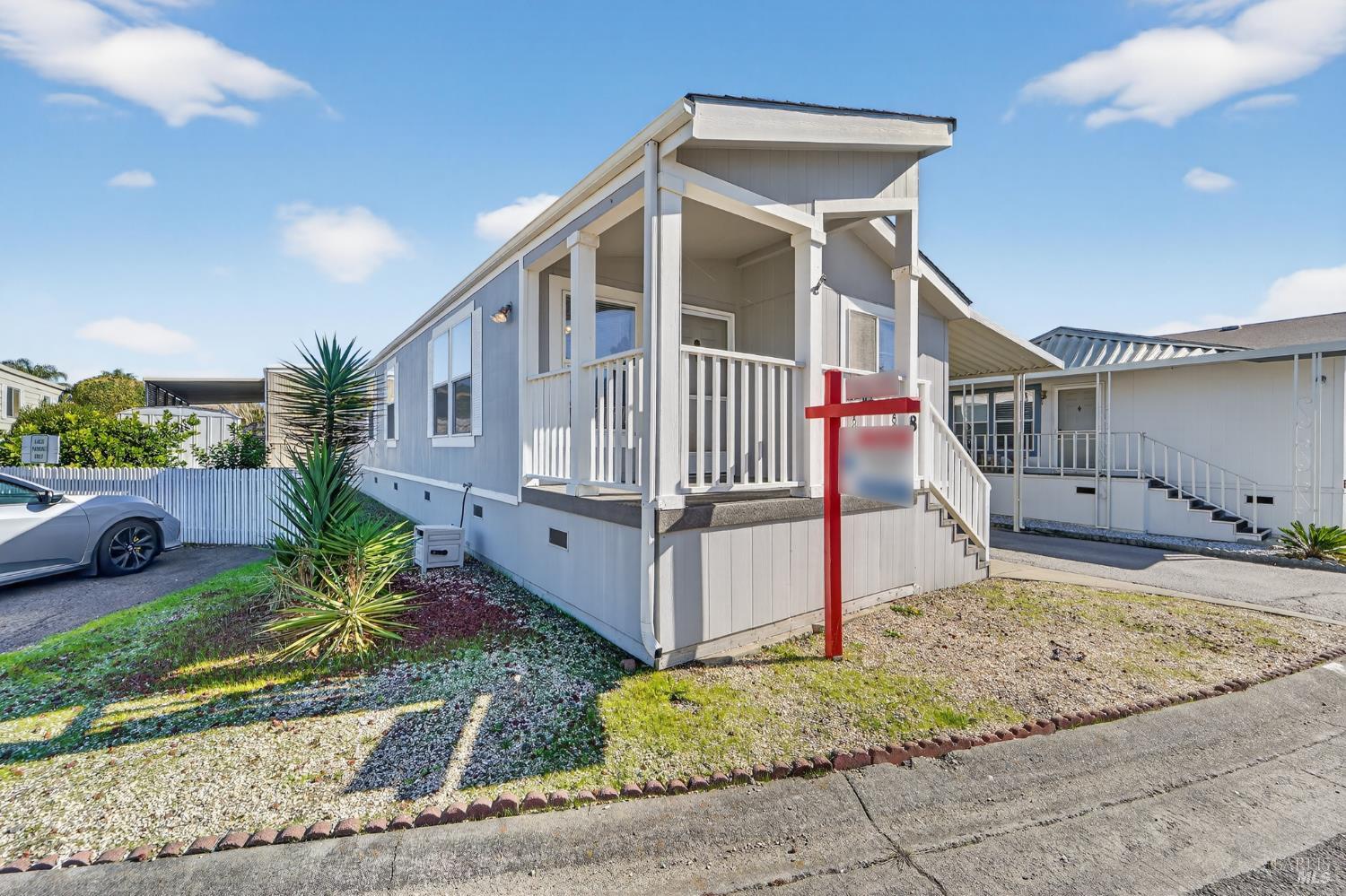 Welcome home to this charming and move-in ready recently built manufactured home (built in 2004), offering 969 sq. ft. of comfortable living space. This bright and inviting residence features an updated kitchen, 3 bedrooms, 1 hall bathroom, 1 primary bathroom with ADA access features, a spacious living room, dining area, and a convenient laundry room. Enjoy brand-new carpet and fresh interior paint throughout, giving the home a fresh, modern feel. Located in the well-maintained, 55+ Las Casitas community, amenities include a swimming pool, clubhouse, & social activities. Step outside and enjoy fresh air and beautiful sunsets from your front porch. A storage shed and outdoor lift are also included for added convenience and accessibility. This home provides both comfort & convenience. Perfectly situated in the heart of American Canyon, you'll be close to shopping, dining, and parks everything you need is just minutes away! Don't miss this affordable and welcoming home in one of American Canyon's most sought-after senior communities.